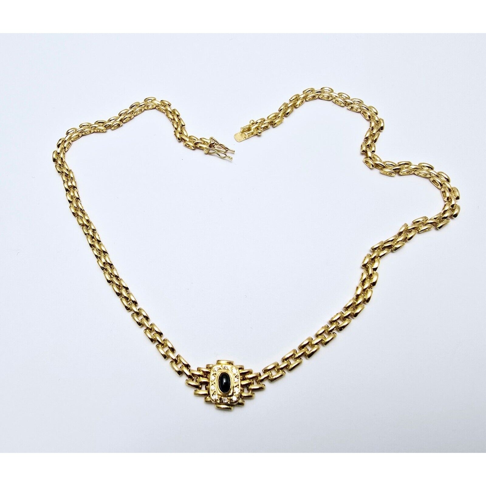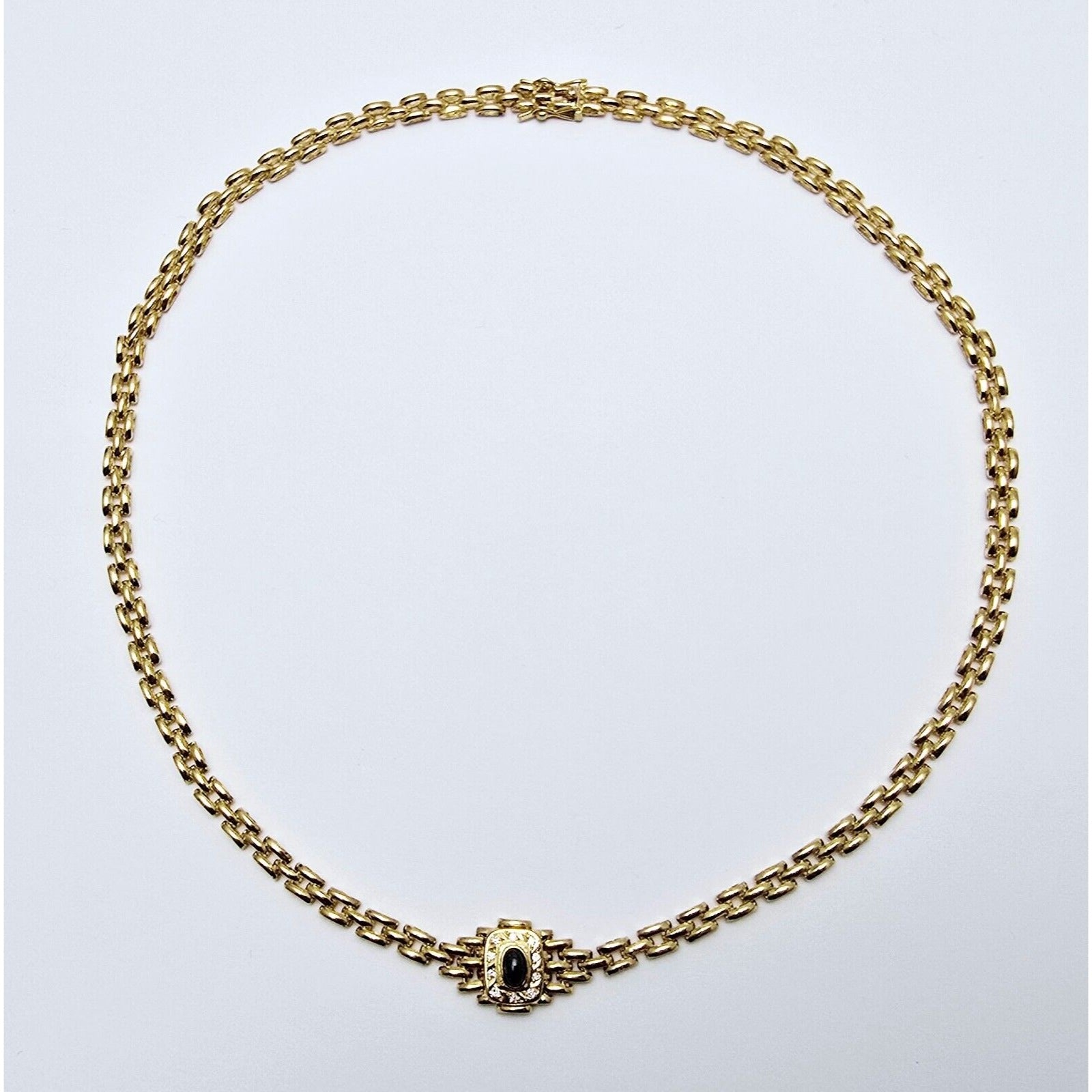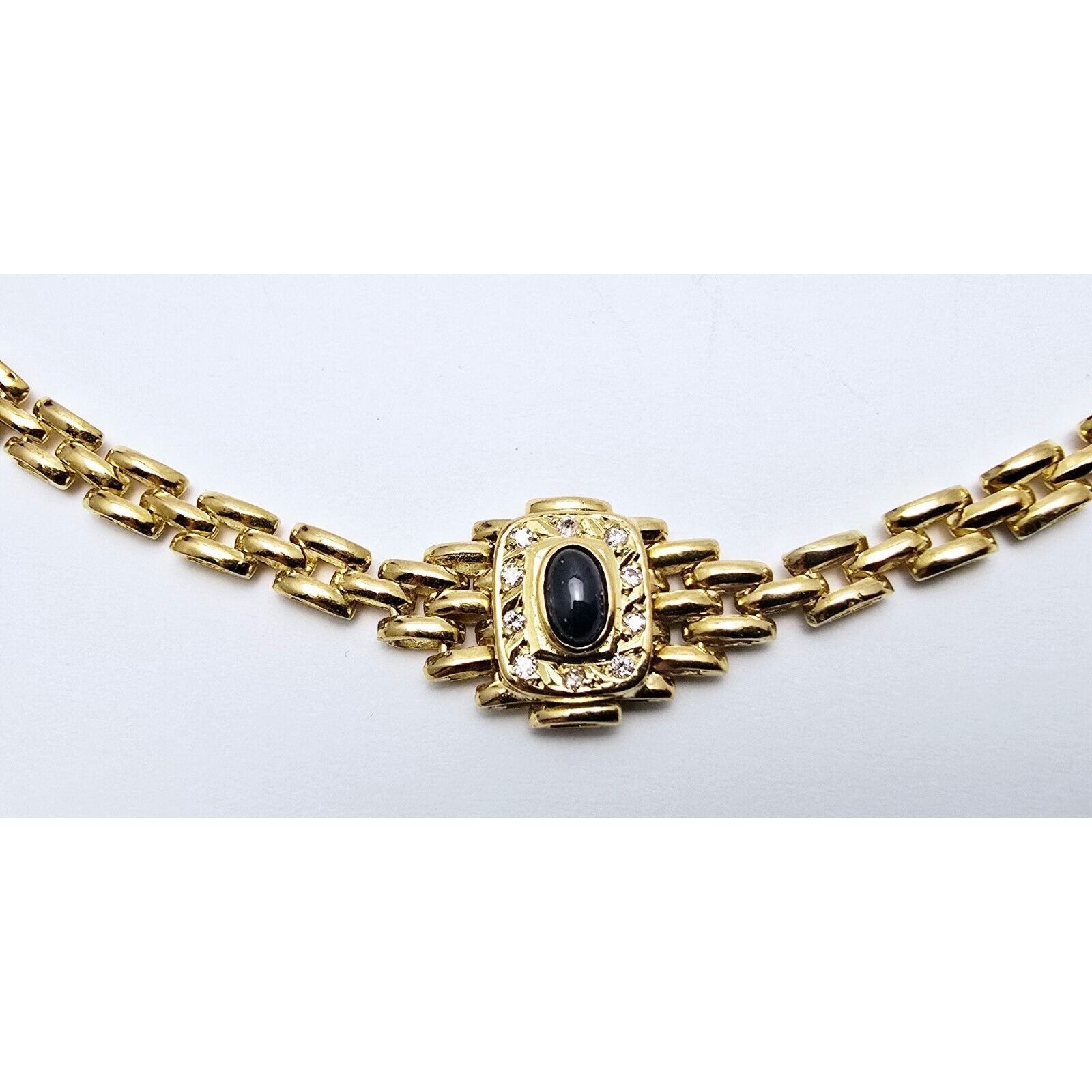 18K Yellow Gold Cabochon Sapphire & Diamond Link Chain Necklace
