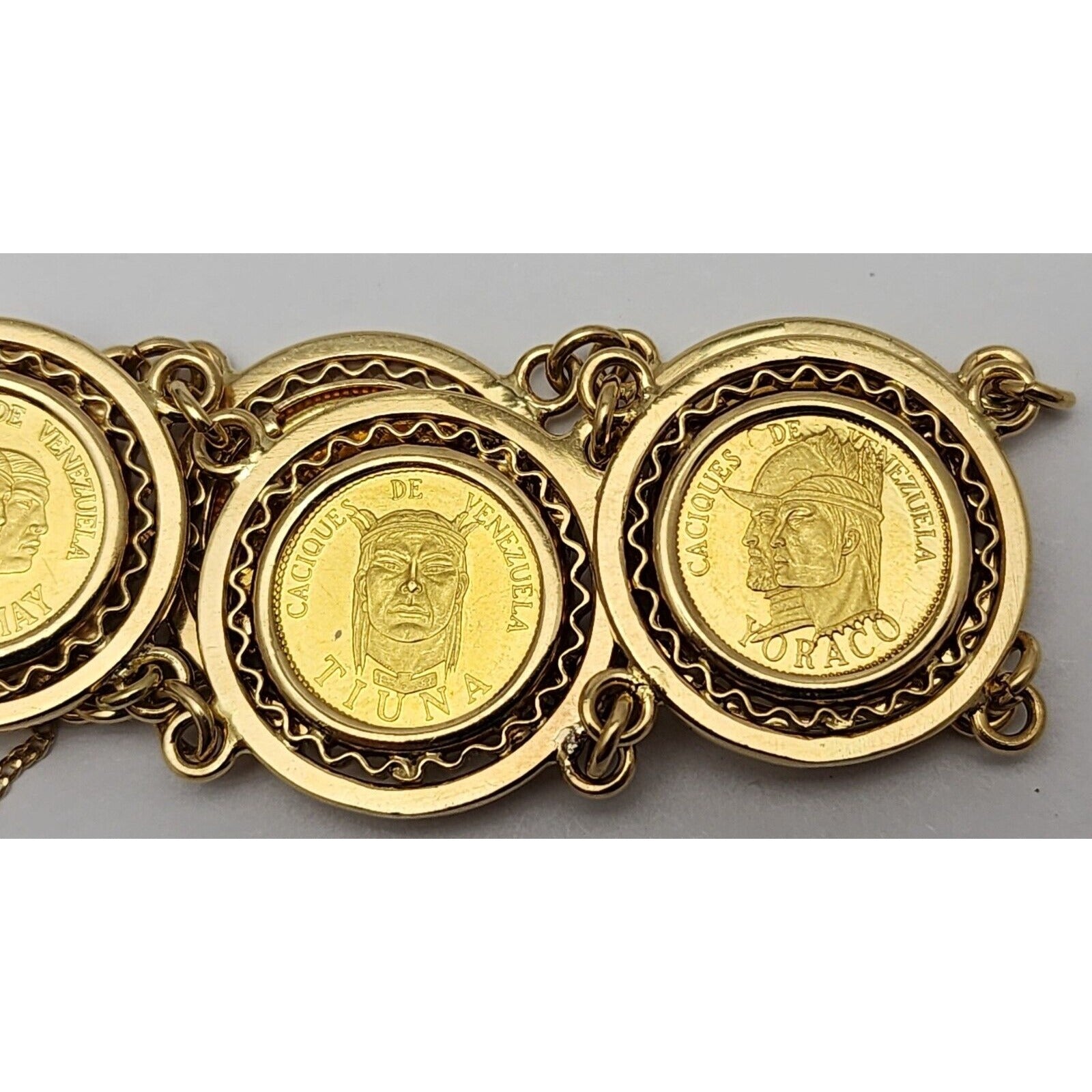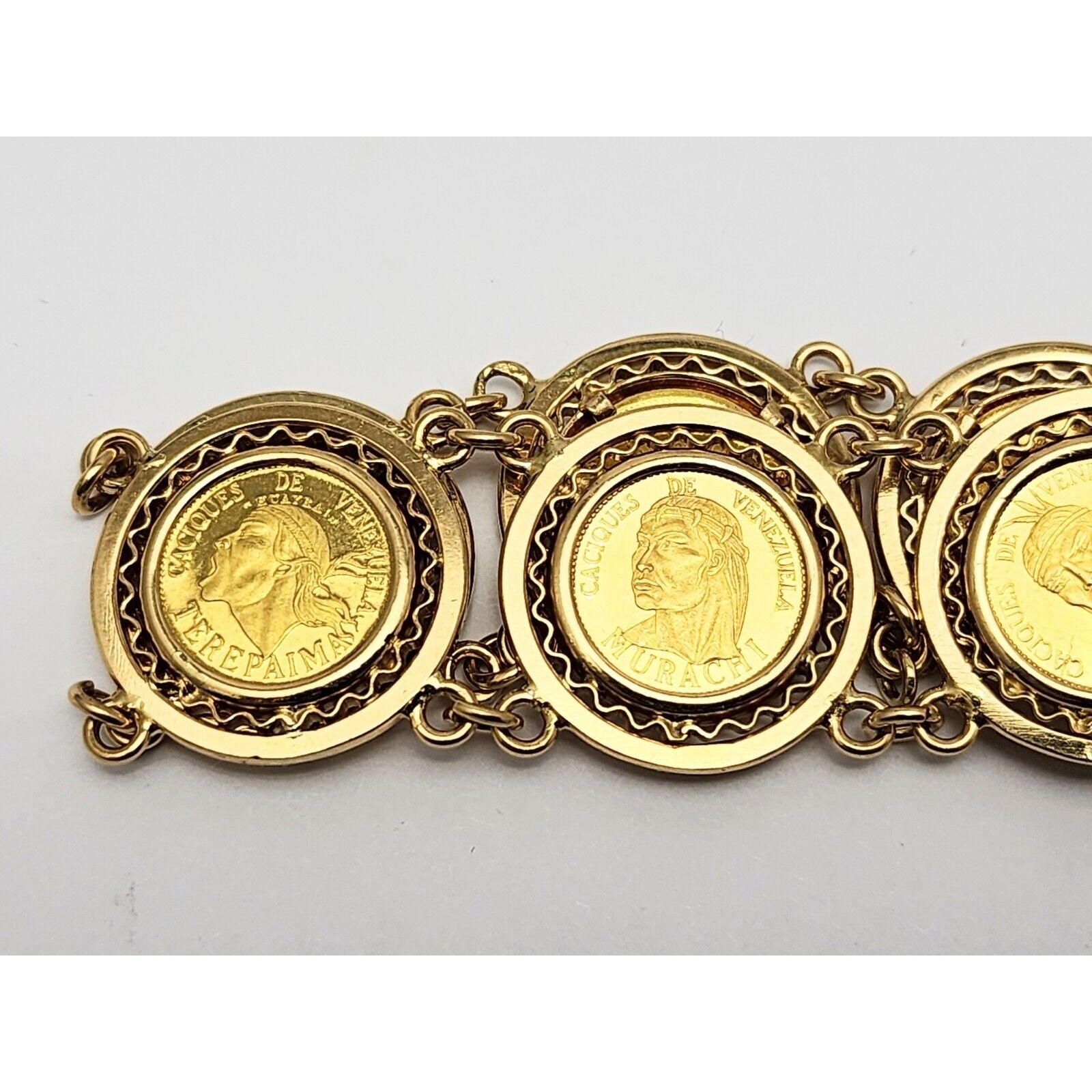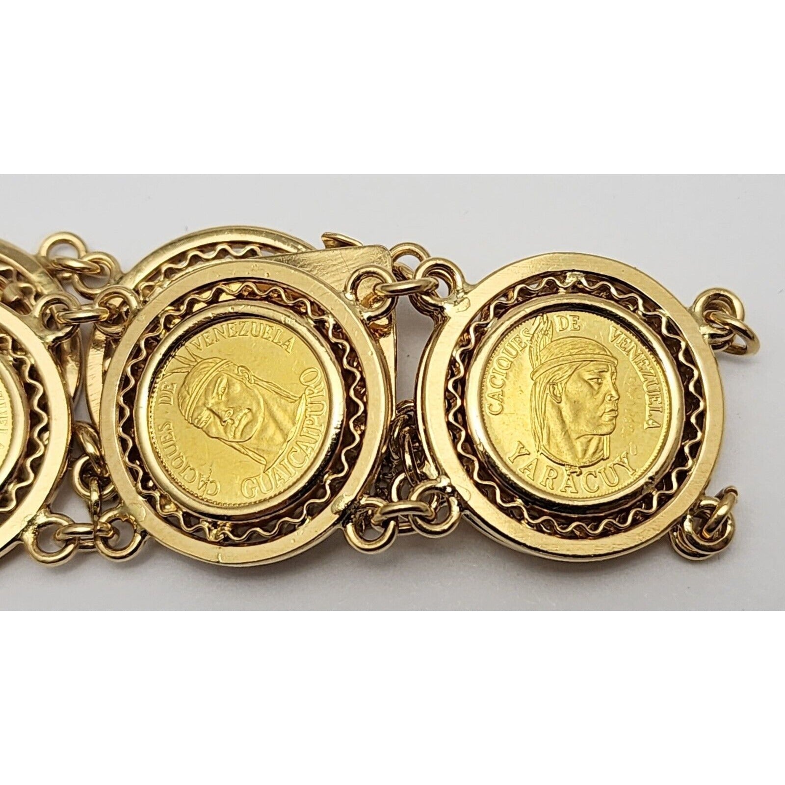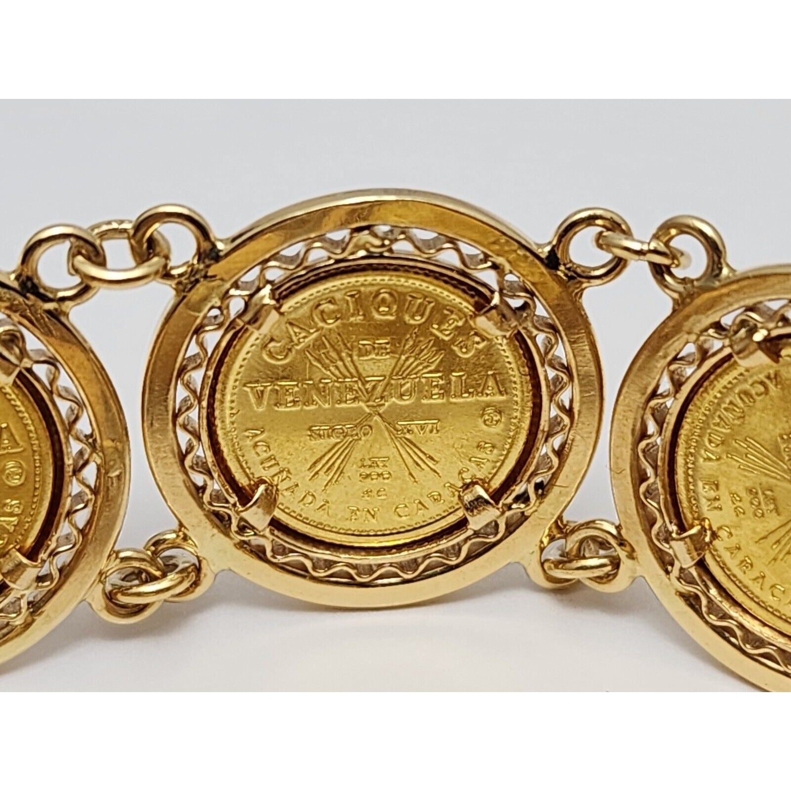 18K Yellow Gold Caciques De Venezuela 21K Gold Coin Link Bracelet