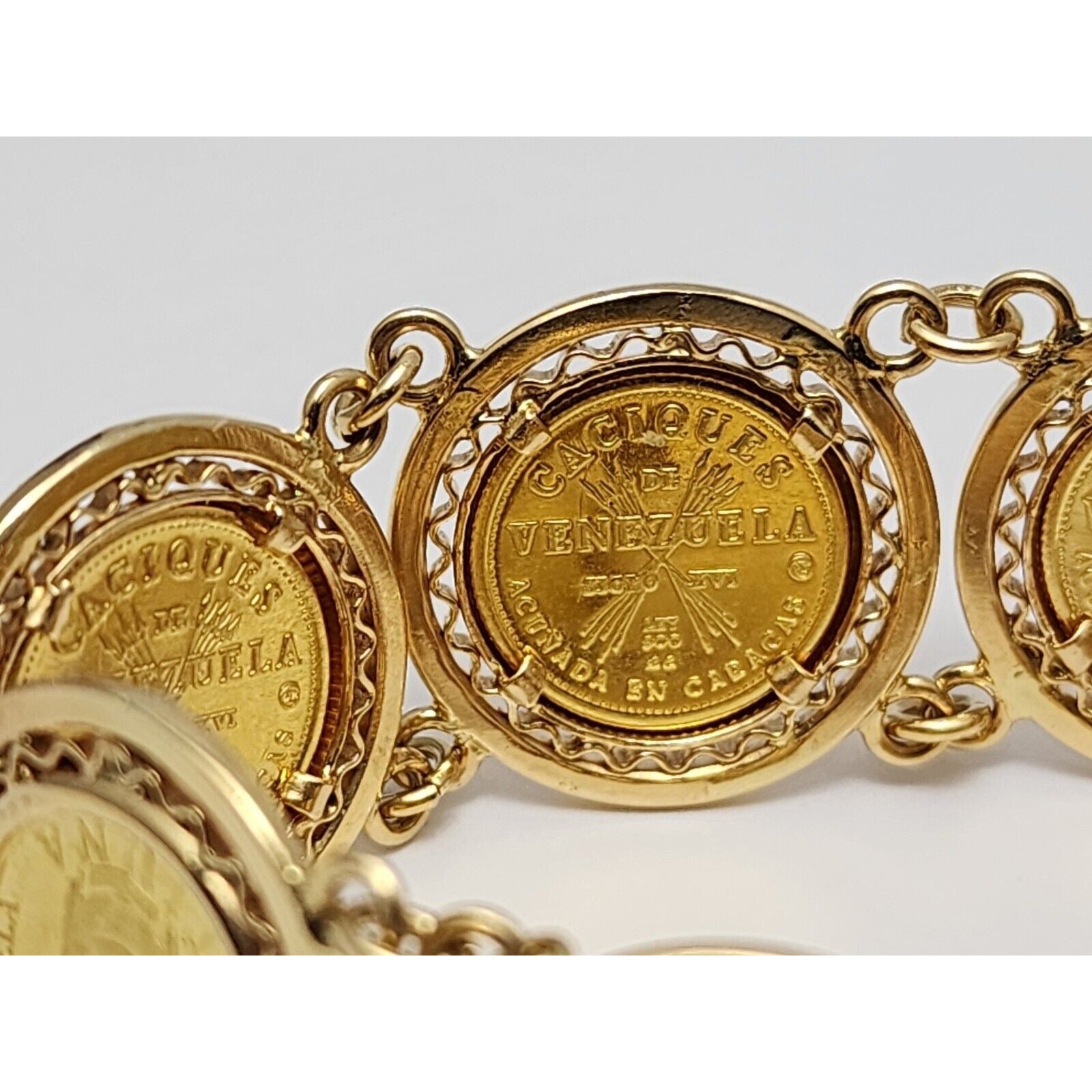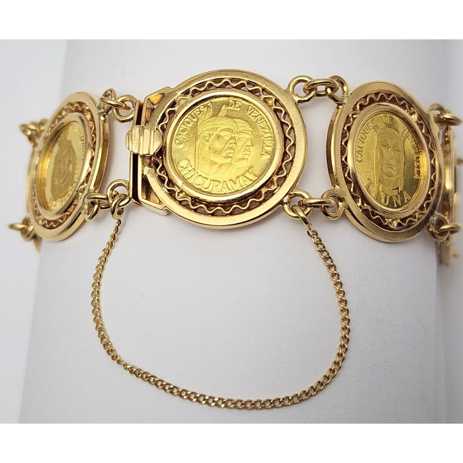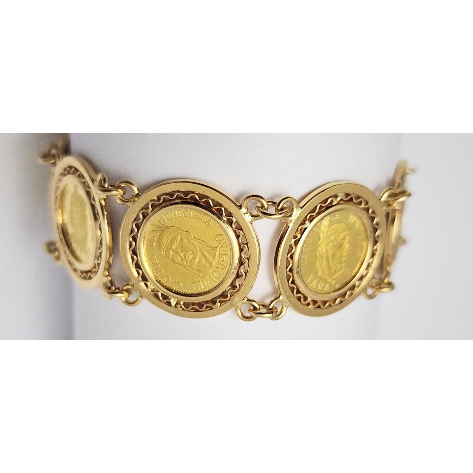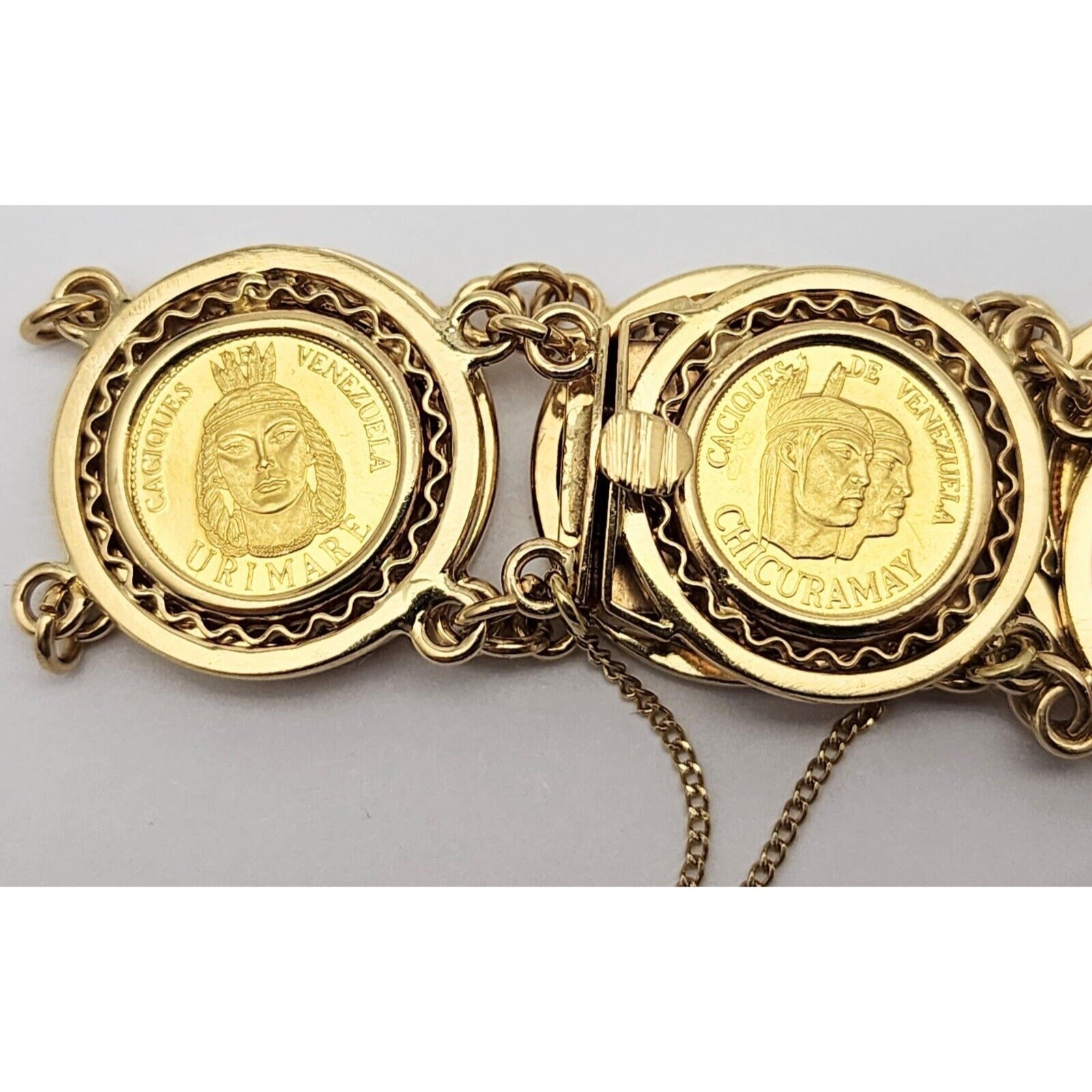 18K Yellow Gold Caciques De Venezuela 21K Gold Coin Link Bracelet