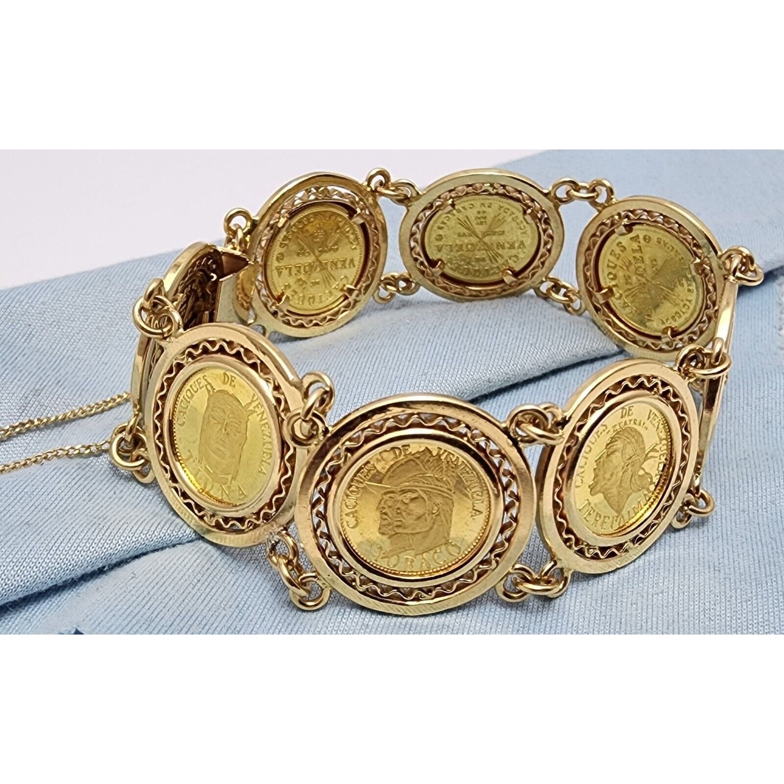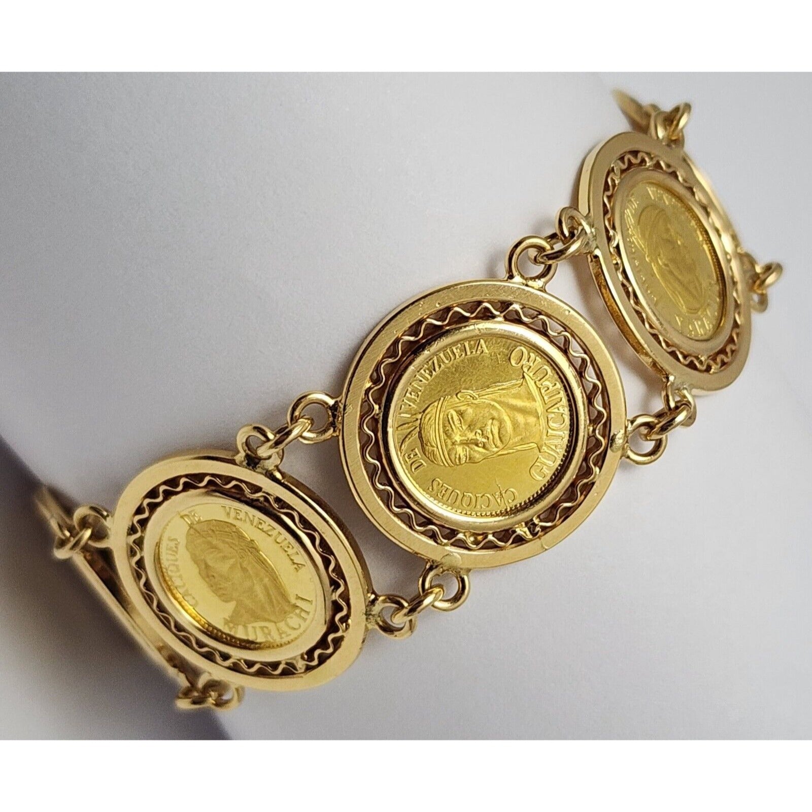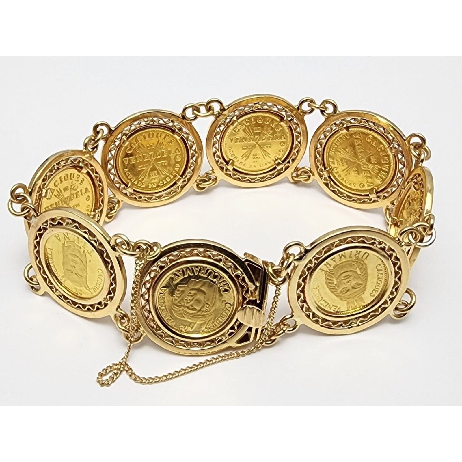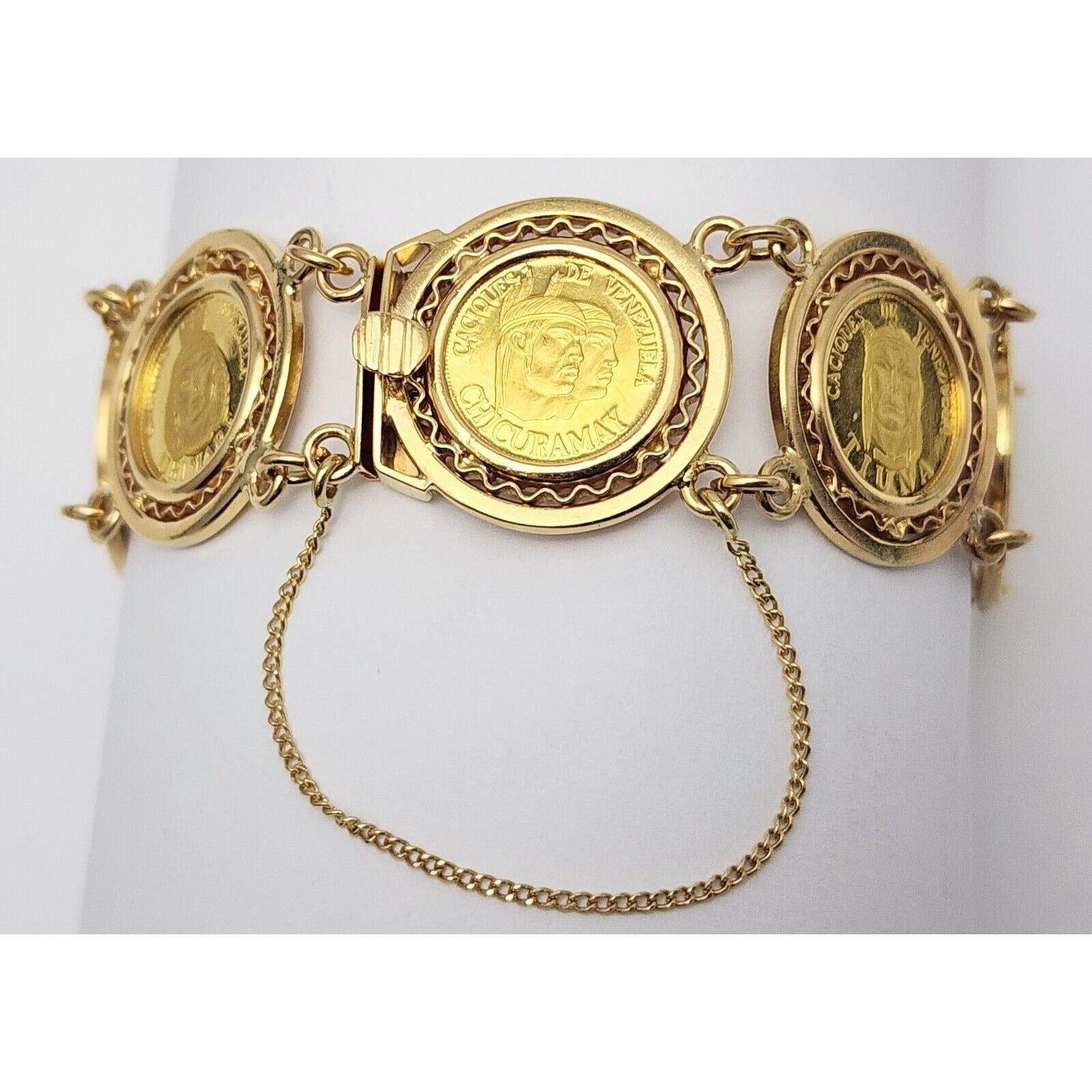 18K Yellow Gold Caciques De Venezuela 21K Gold Coin Link Bracelet