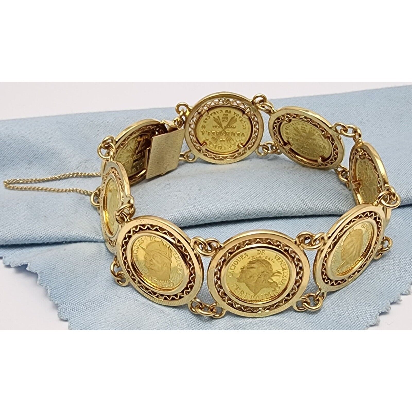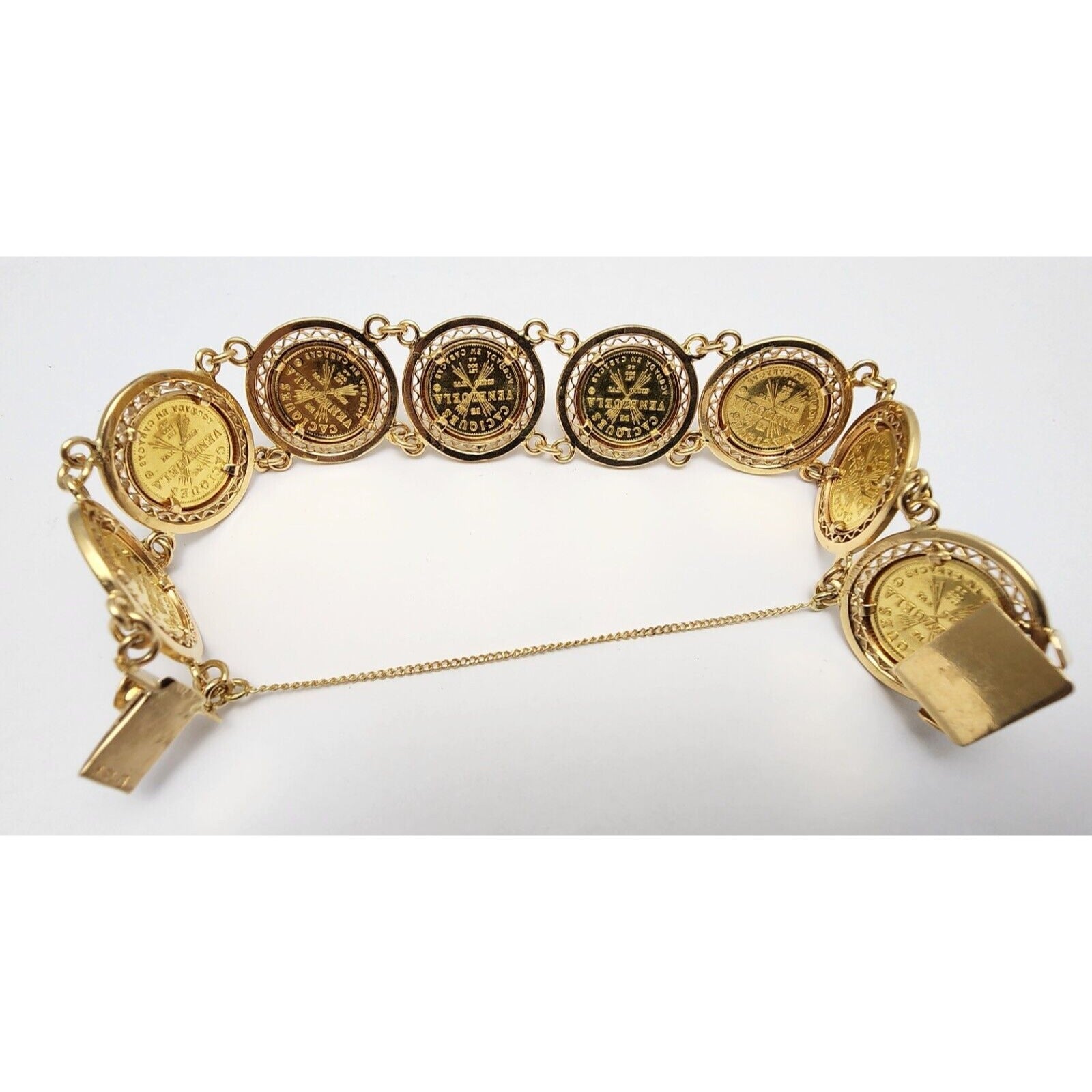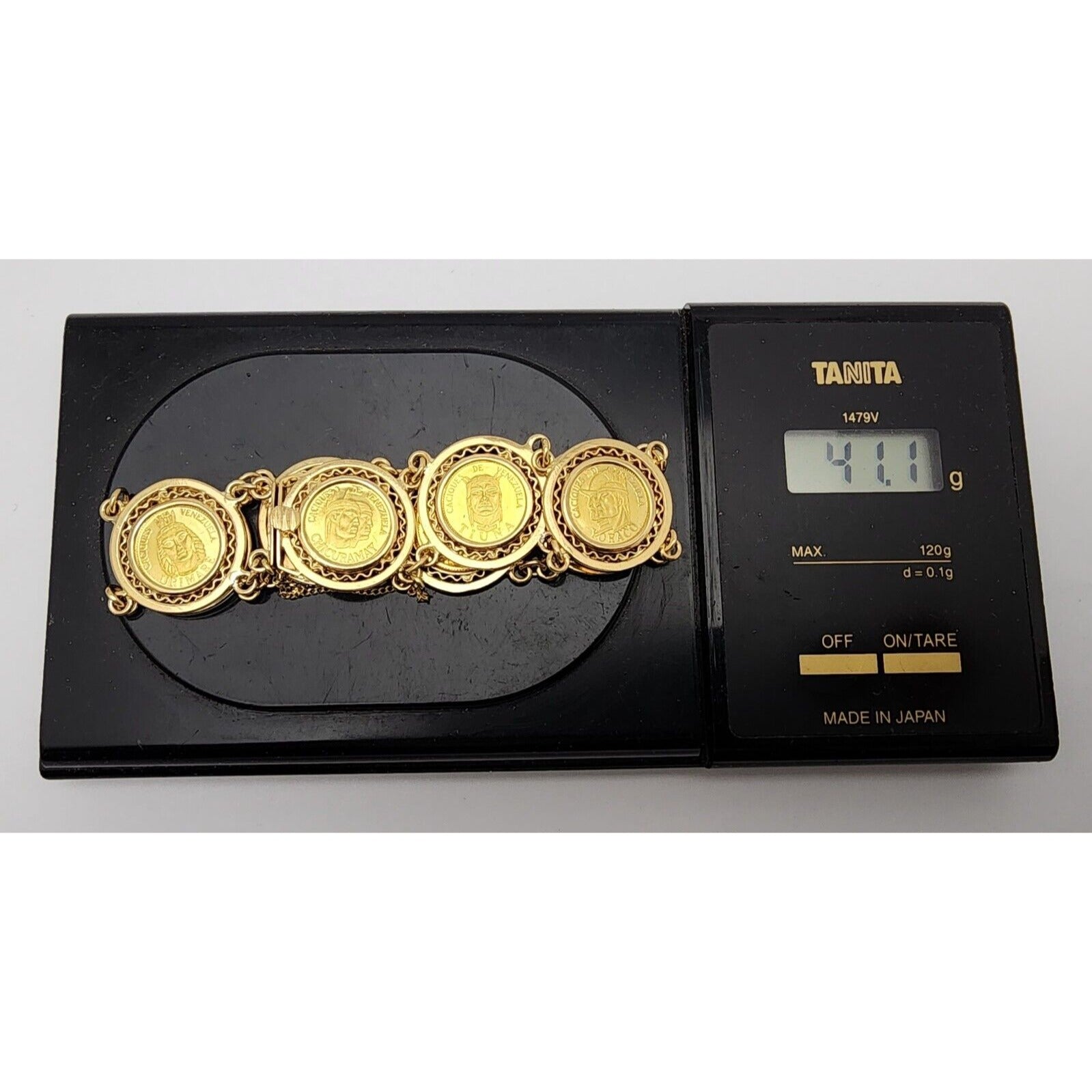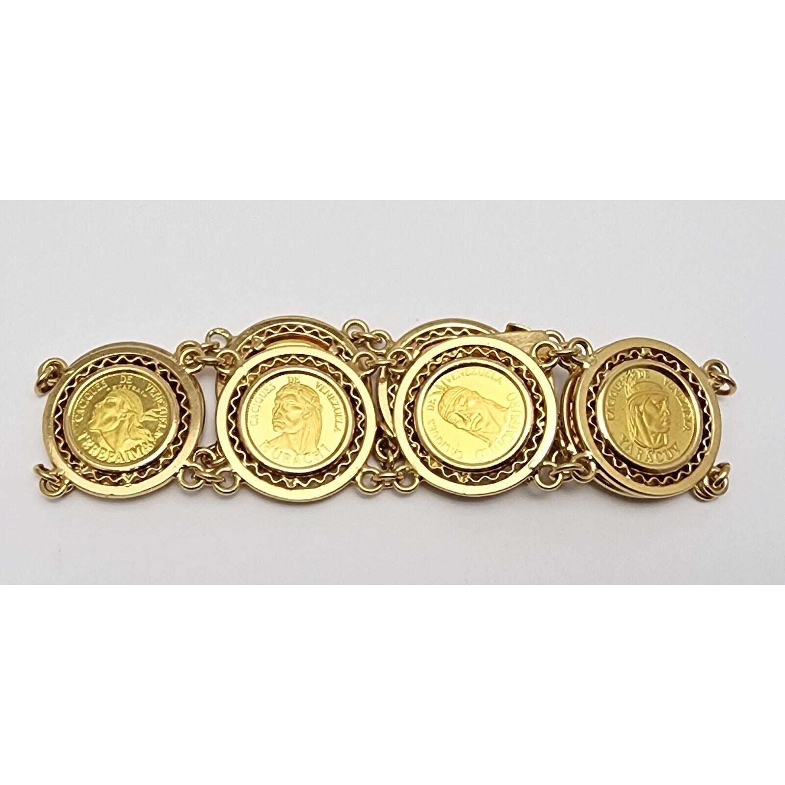 18K Yellow Gold Caciques De Venezuela 21K Gold Coin Link Bracelet