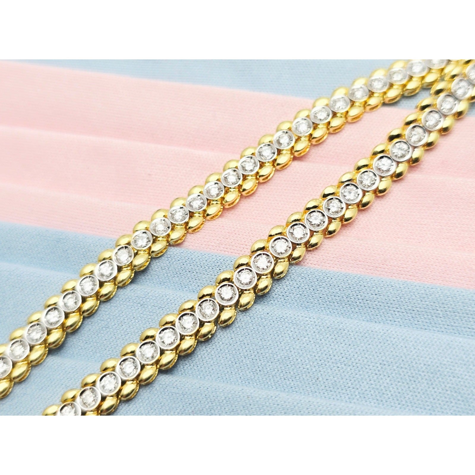 18K Yellow Gold Diamond Tennis Link Chain Necklace
