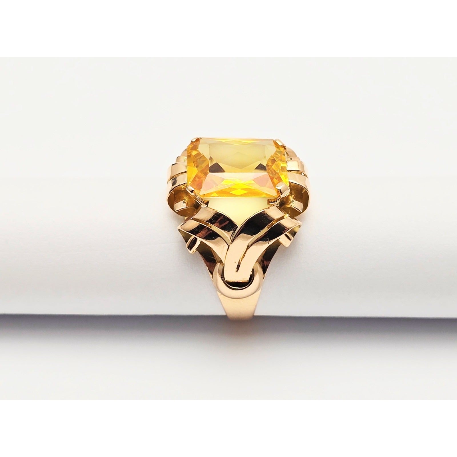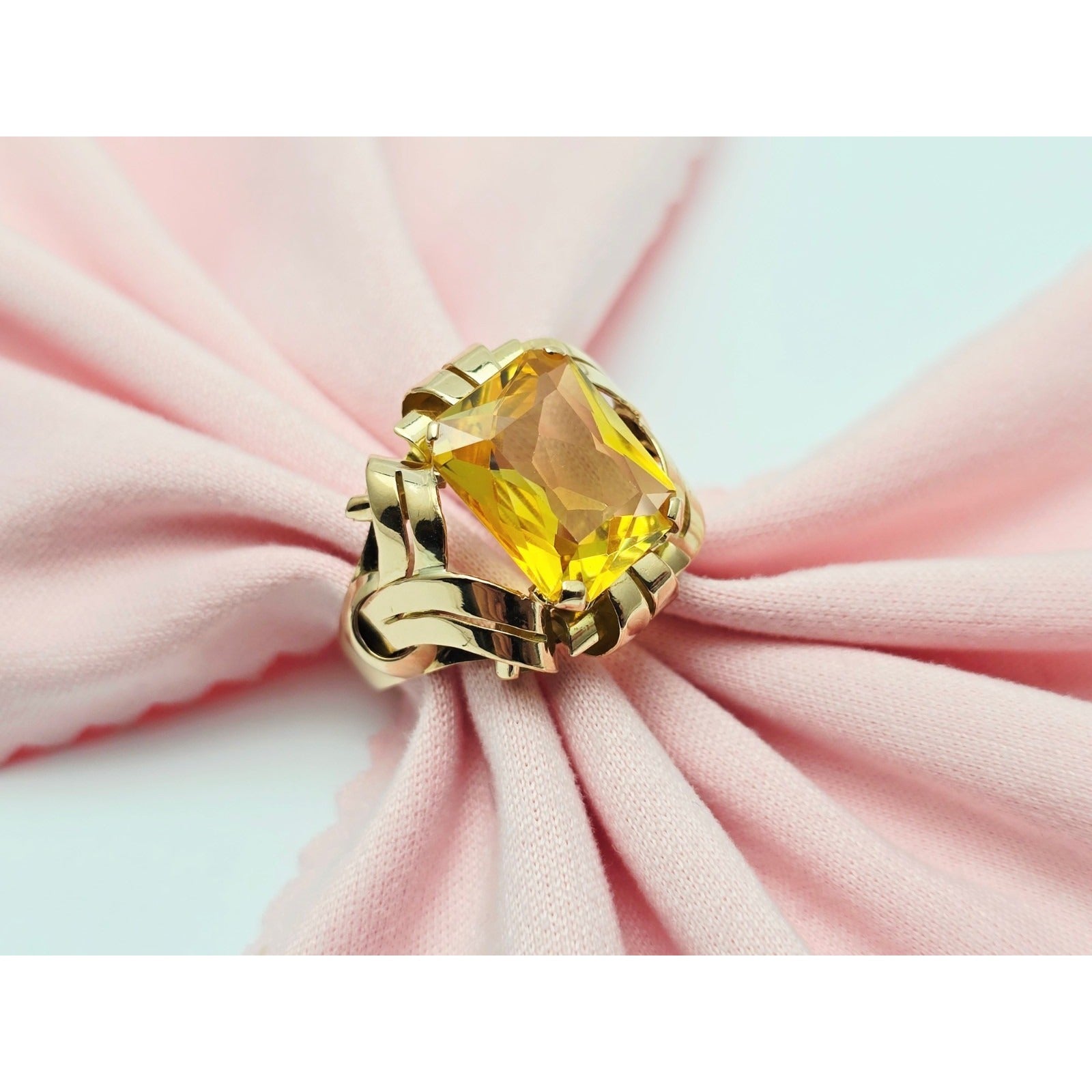 18K Yellow Gold Emerald Cut Yellow Sapphire Ring