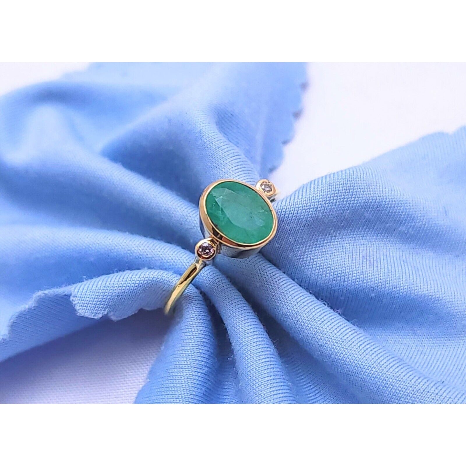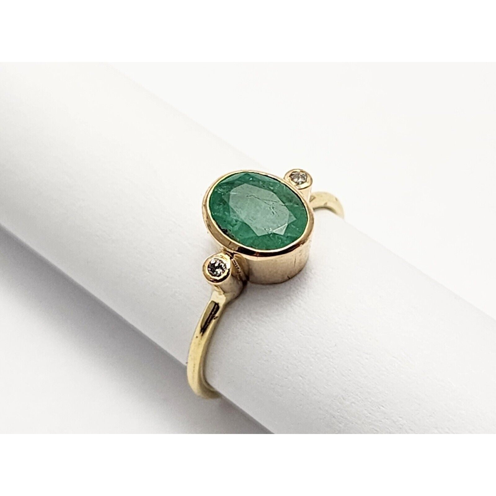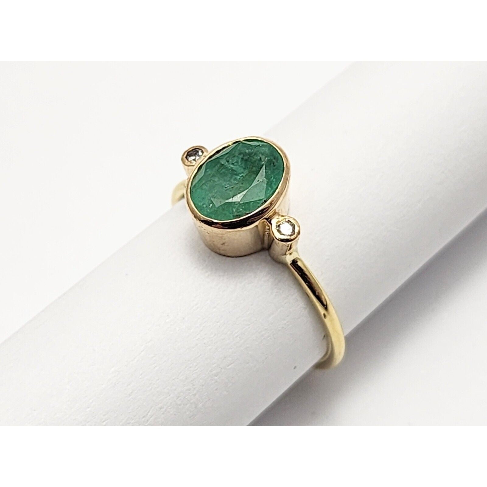 18K Yellow Gold Emerald & Round Cut Diamond Ring
