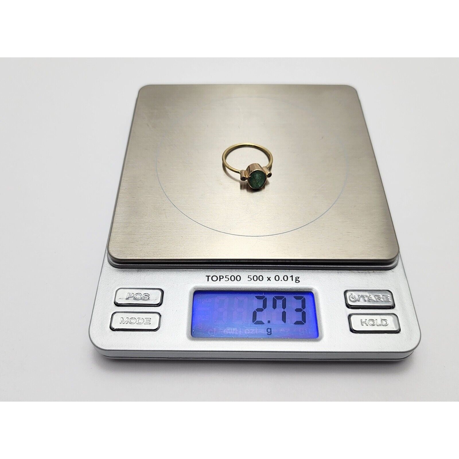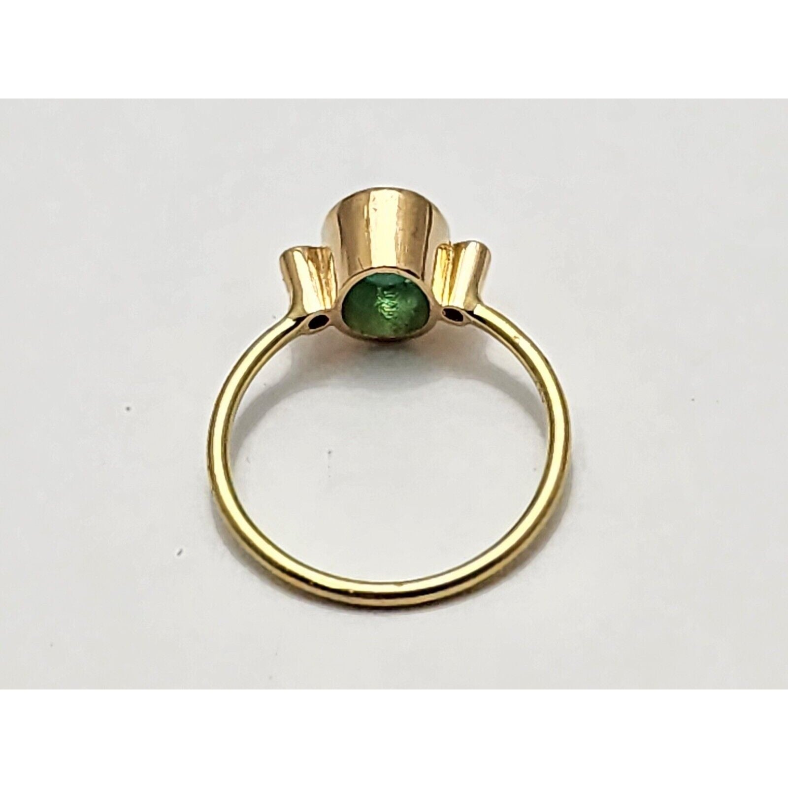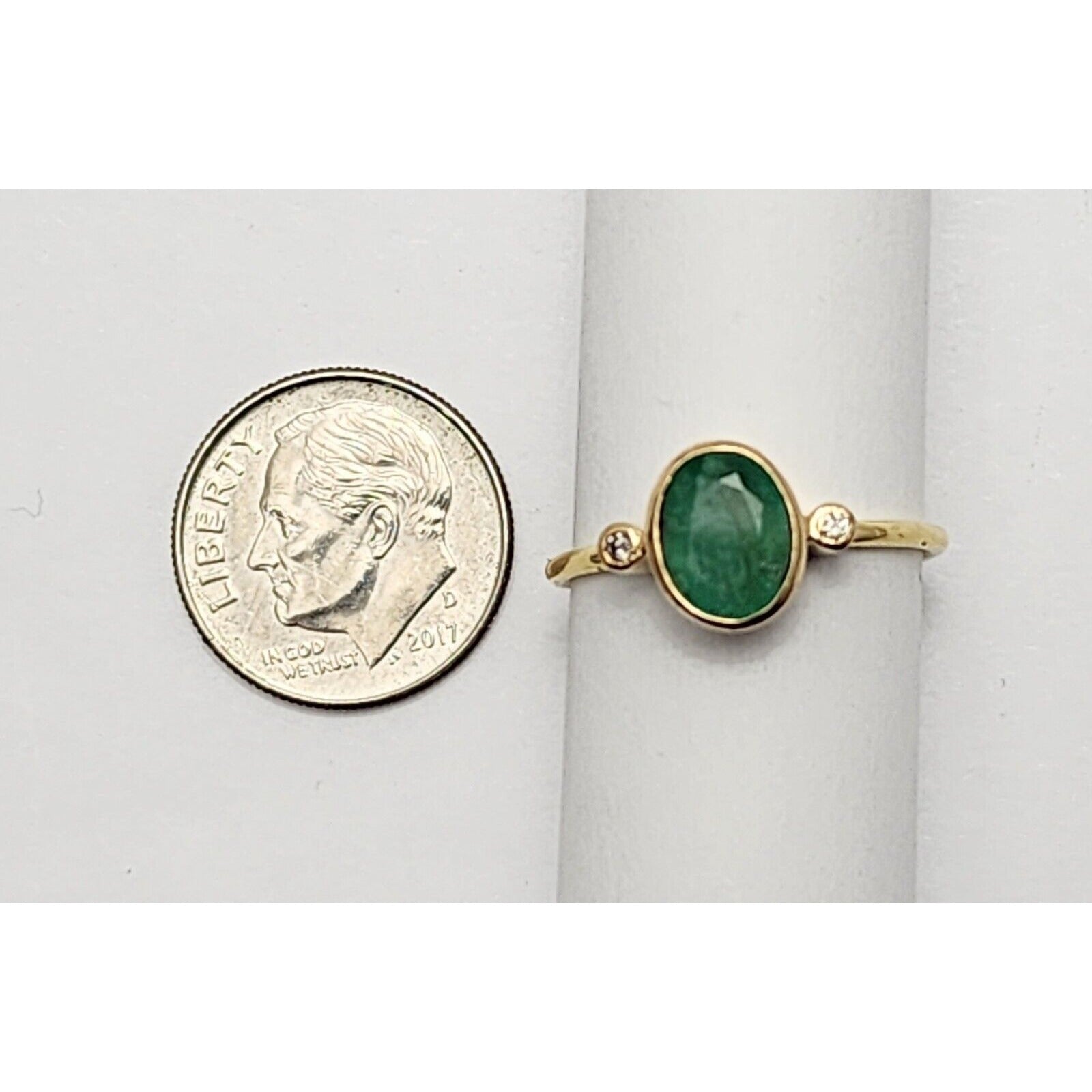 18K Yellow Gold Emerald & Round Cut Diamond Ring