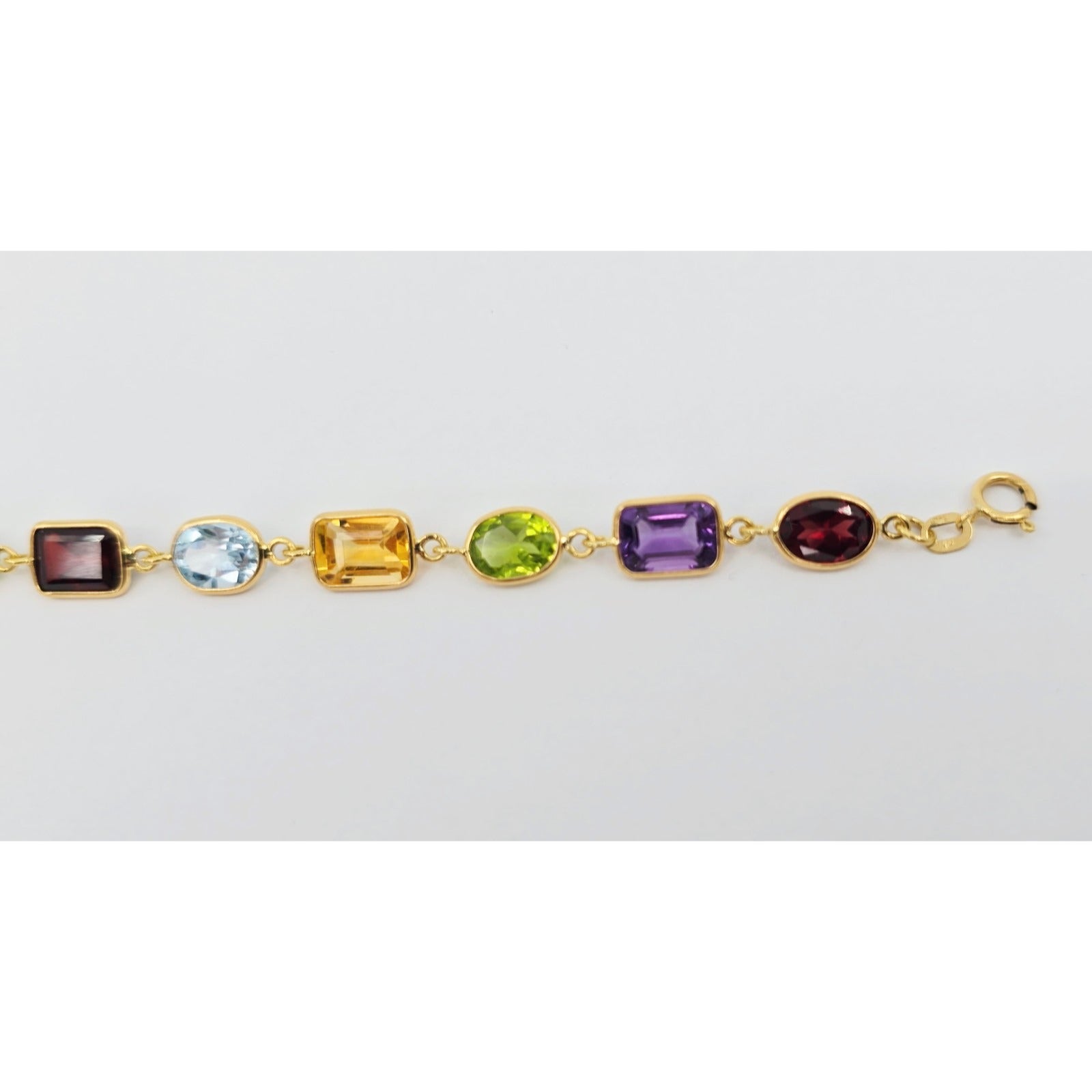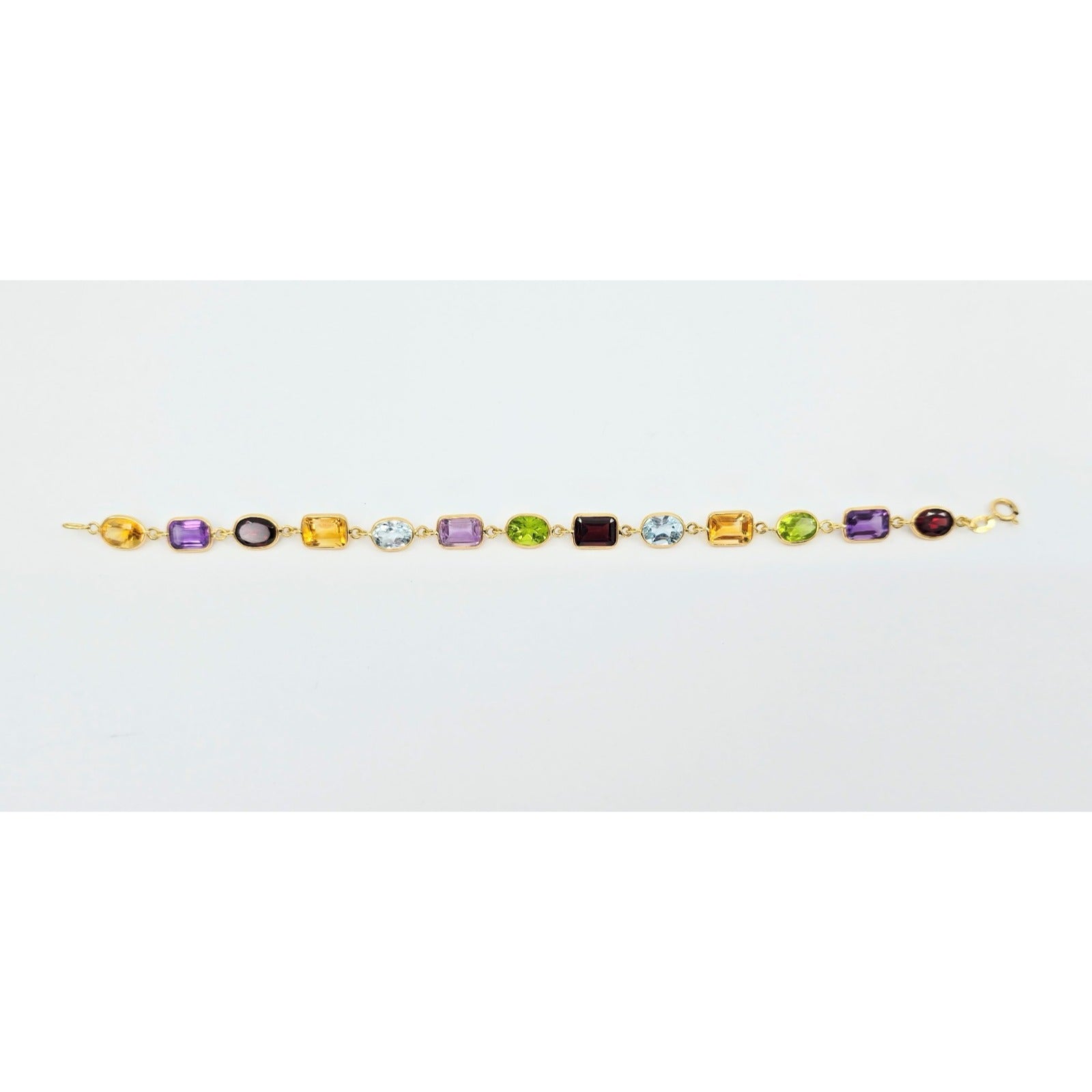 18K Yellow Gold Multi Colored Gemstone Link Bracelet