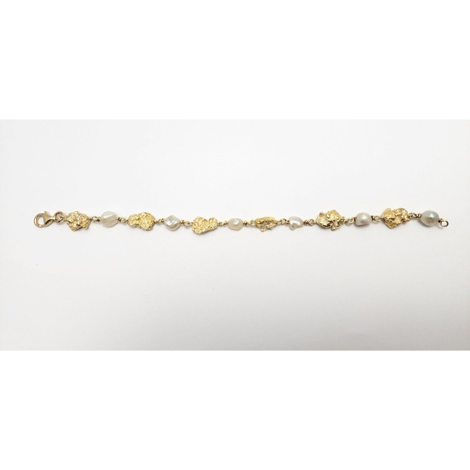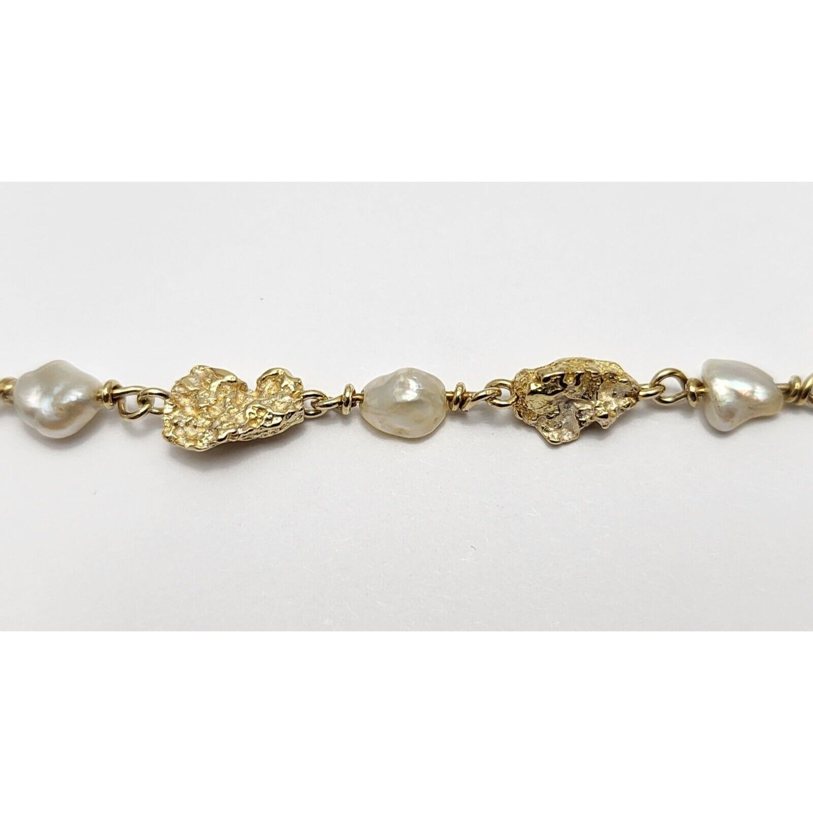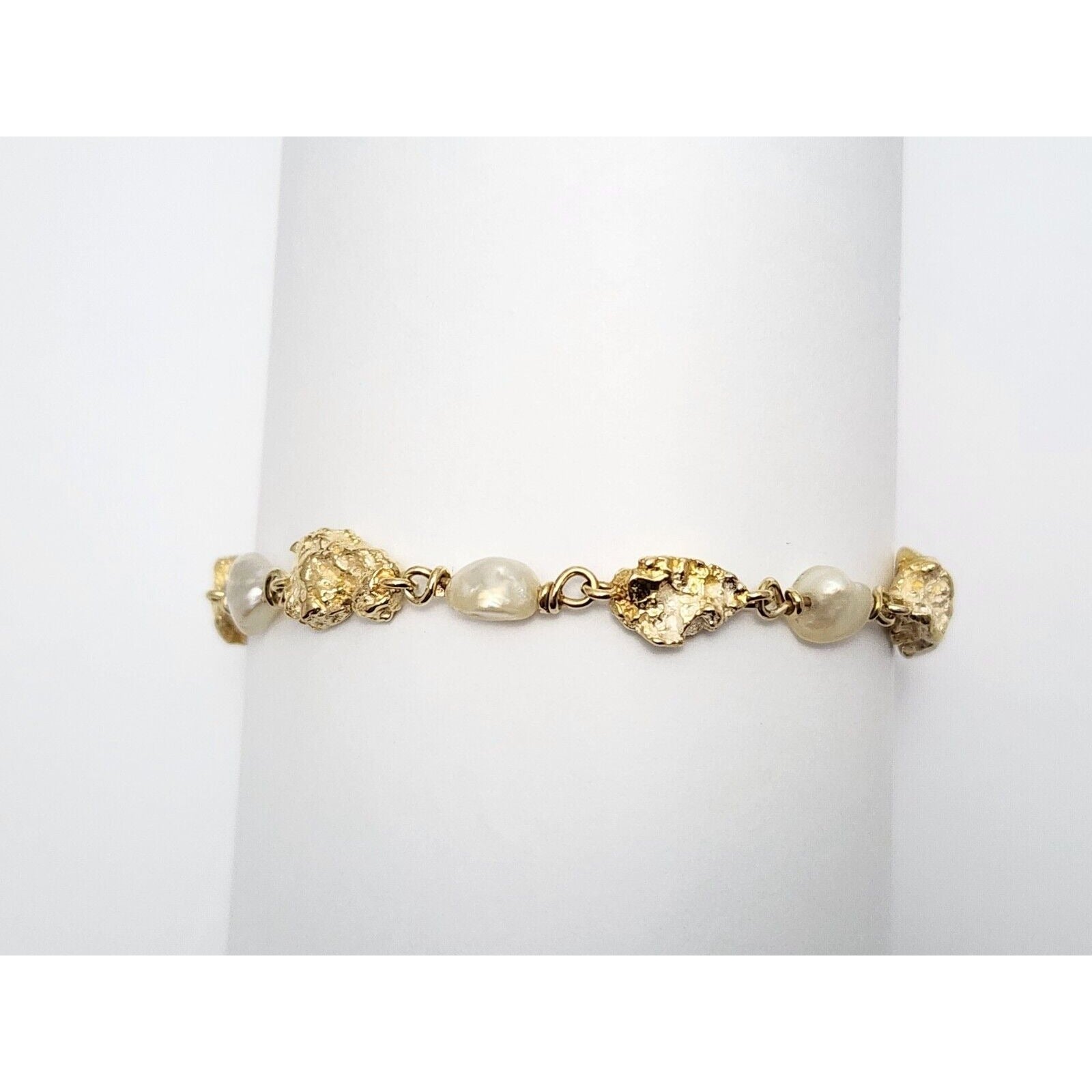 18K Yellow Gold Nugget & Pearl Link Bracelet