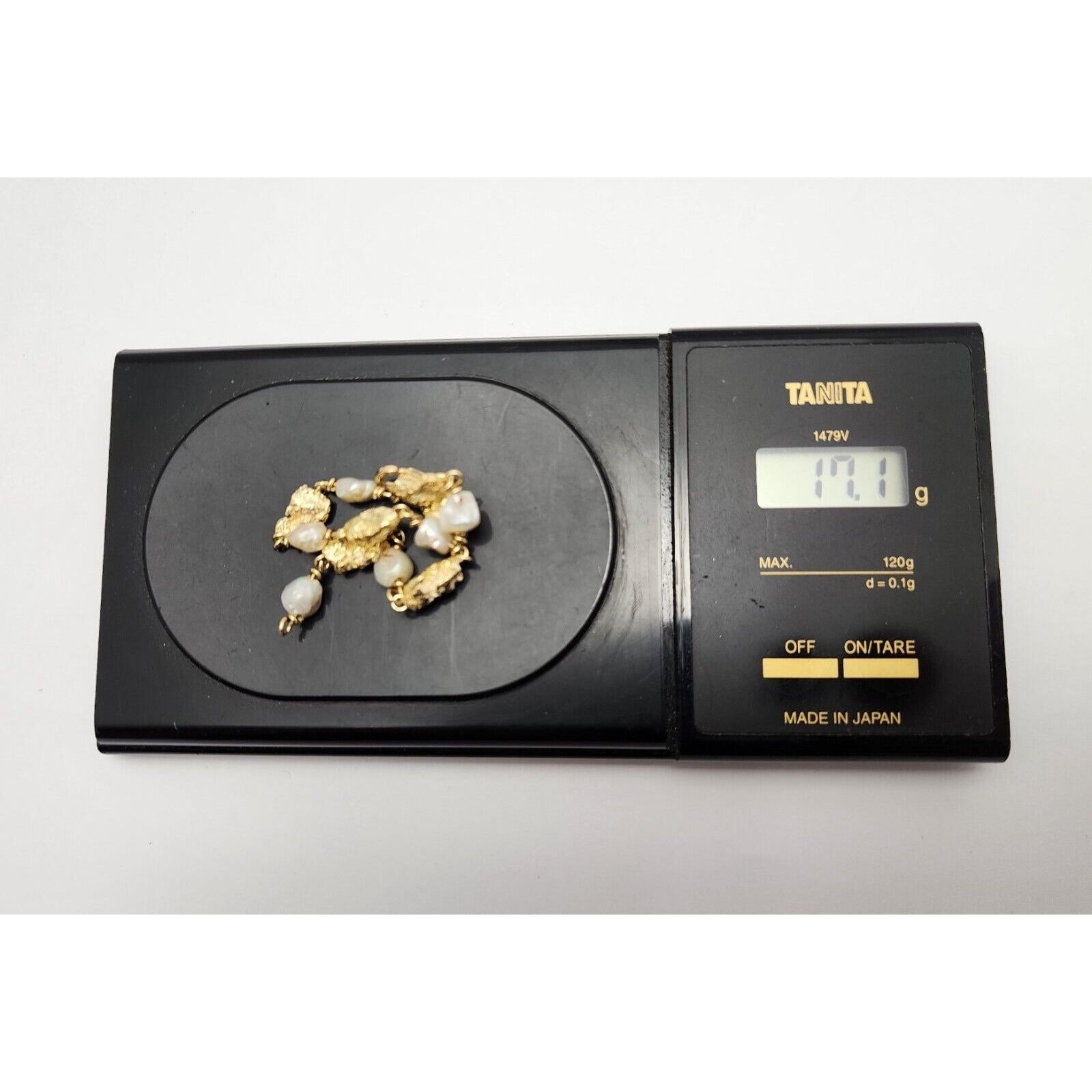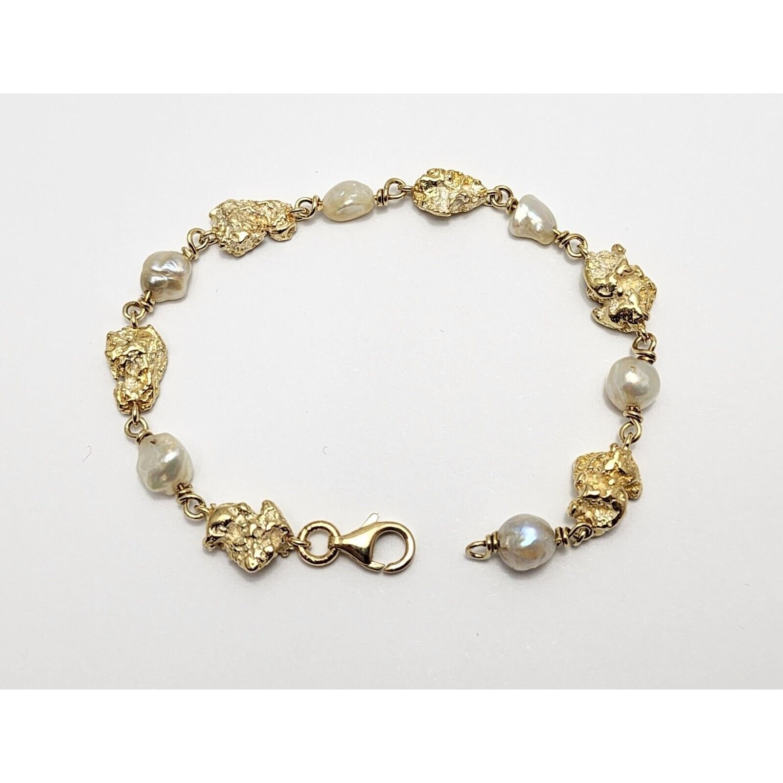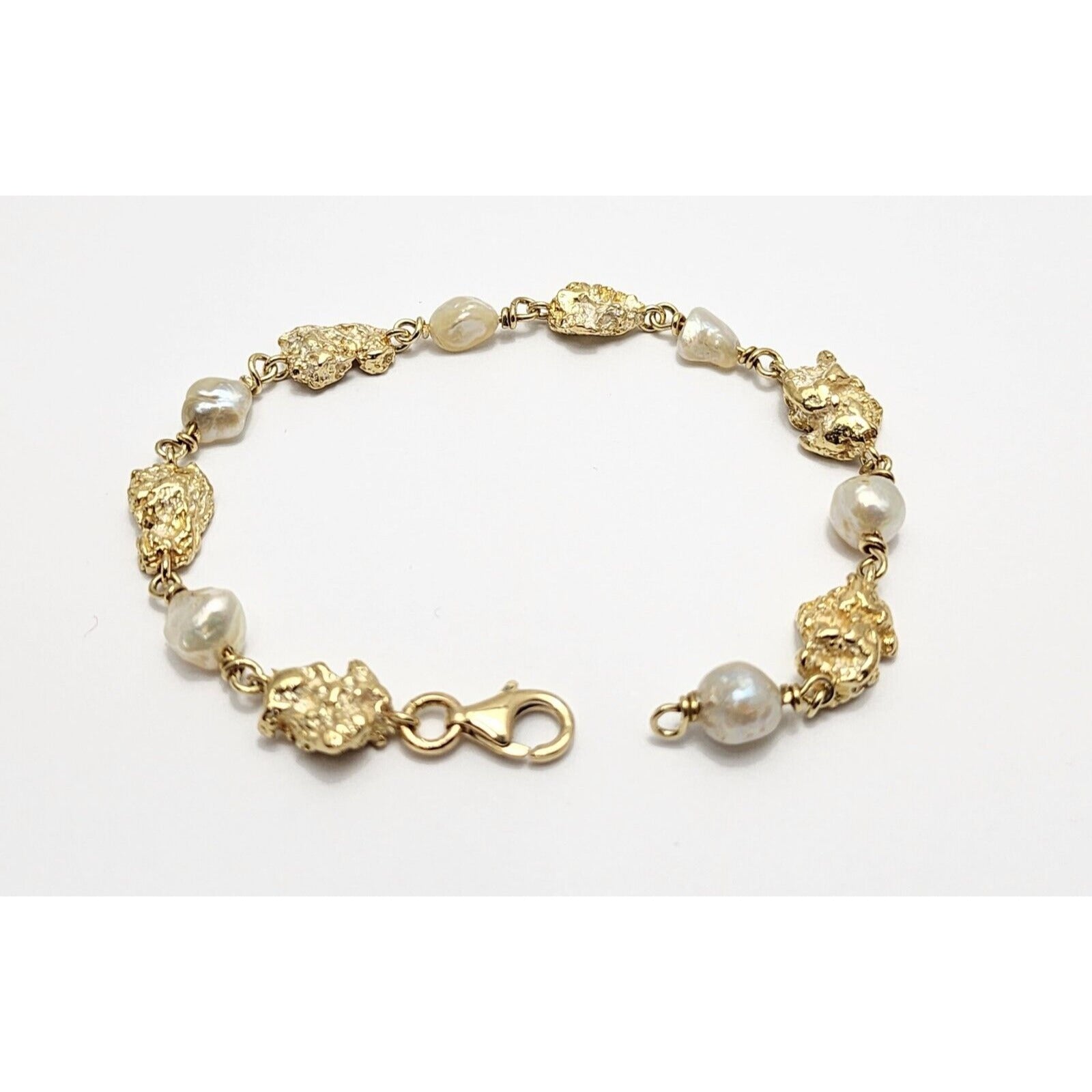 18K Yellow Gold Nugget & Pearl Link Bracelet