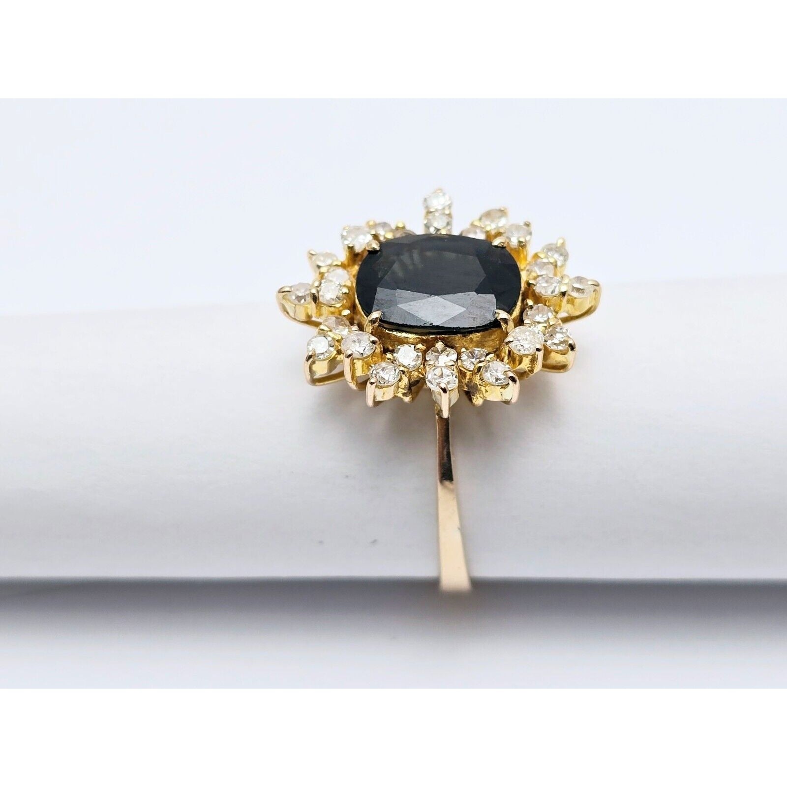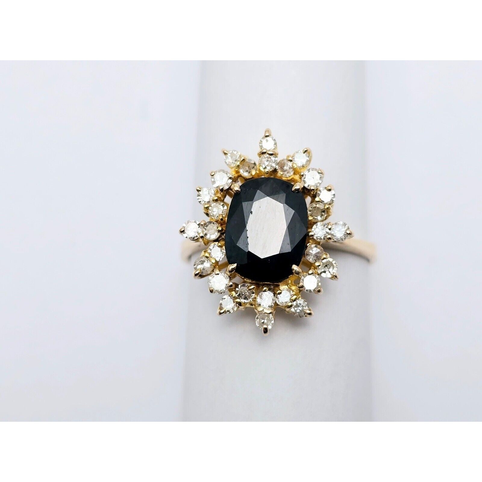 18K Yellow Gold Oval Sapphire & Round Diamond Ring