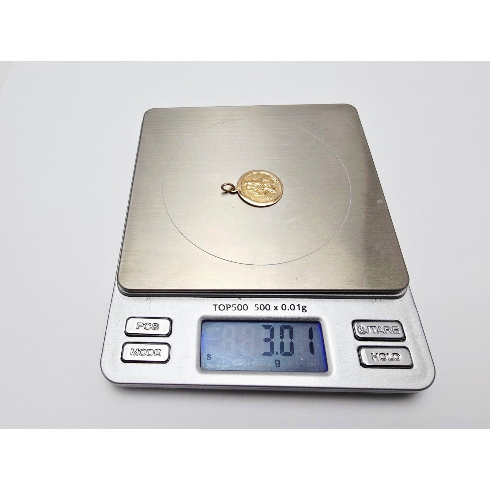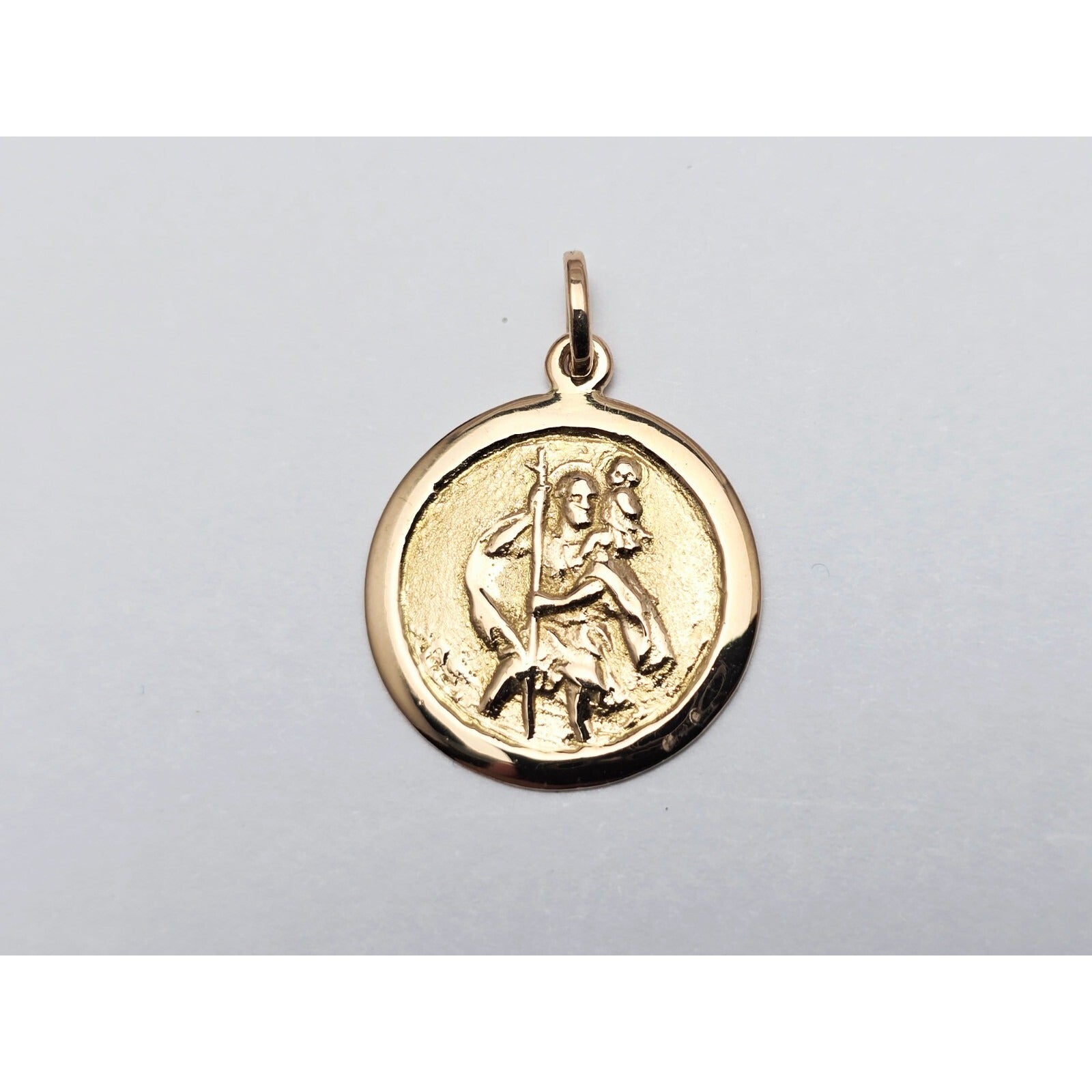18K Yellow Gold Round Saint Christopher Charm Pendant