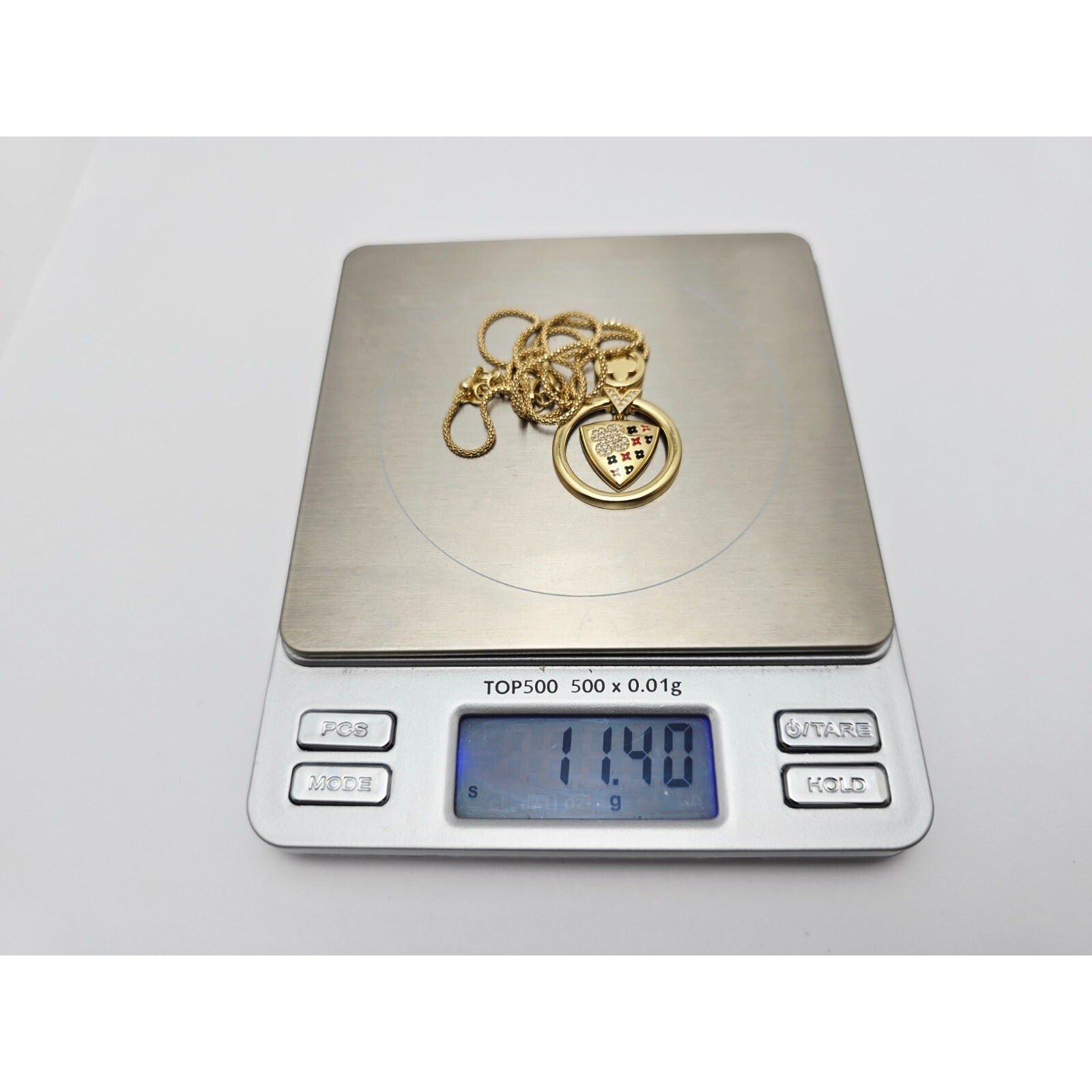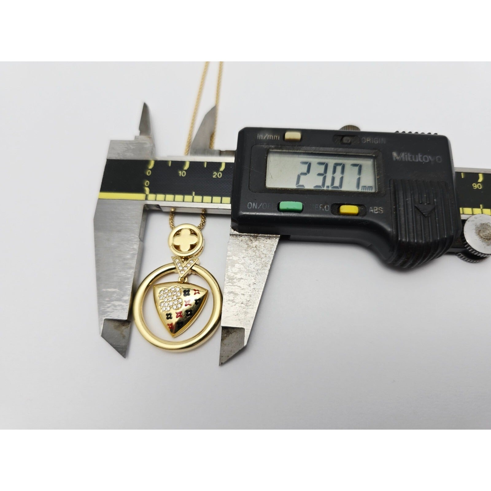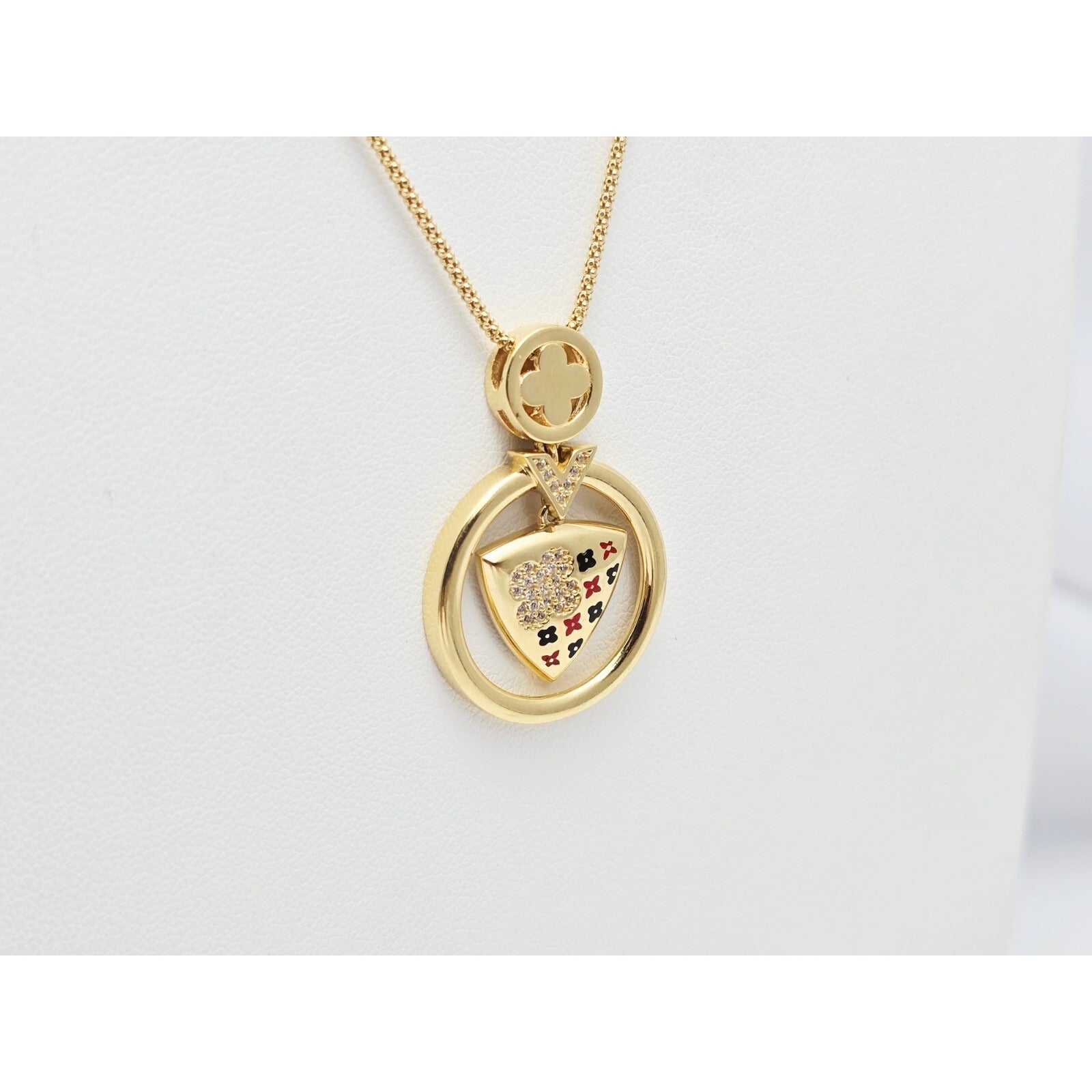18K Yellow Gold Round V Enamel Charm Pendant Resizable Link Chain Necklace