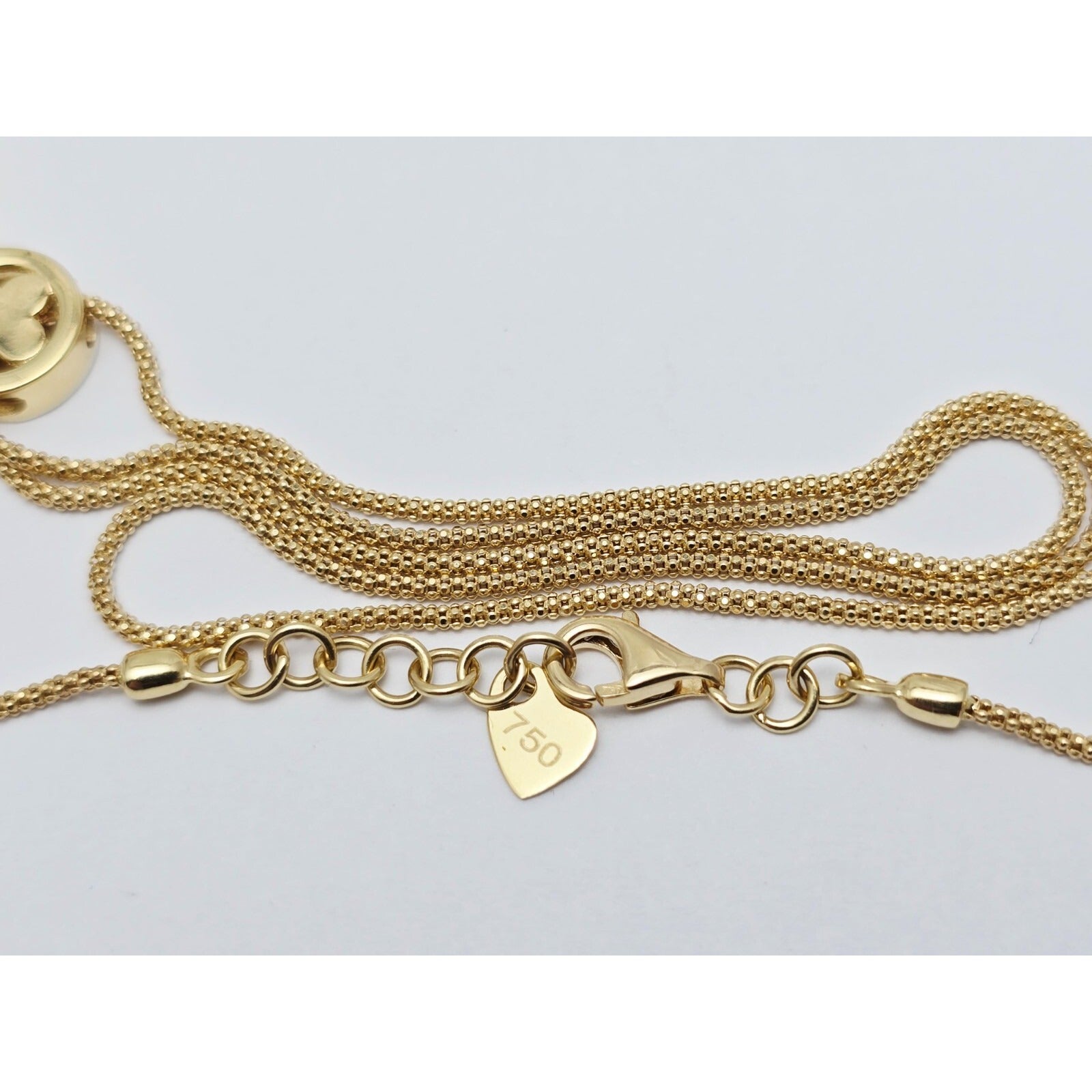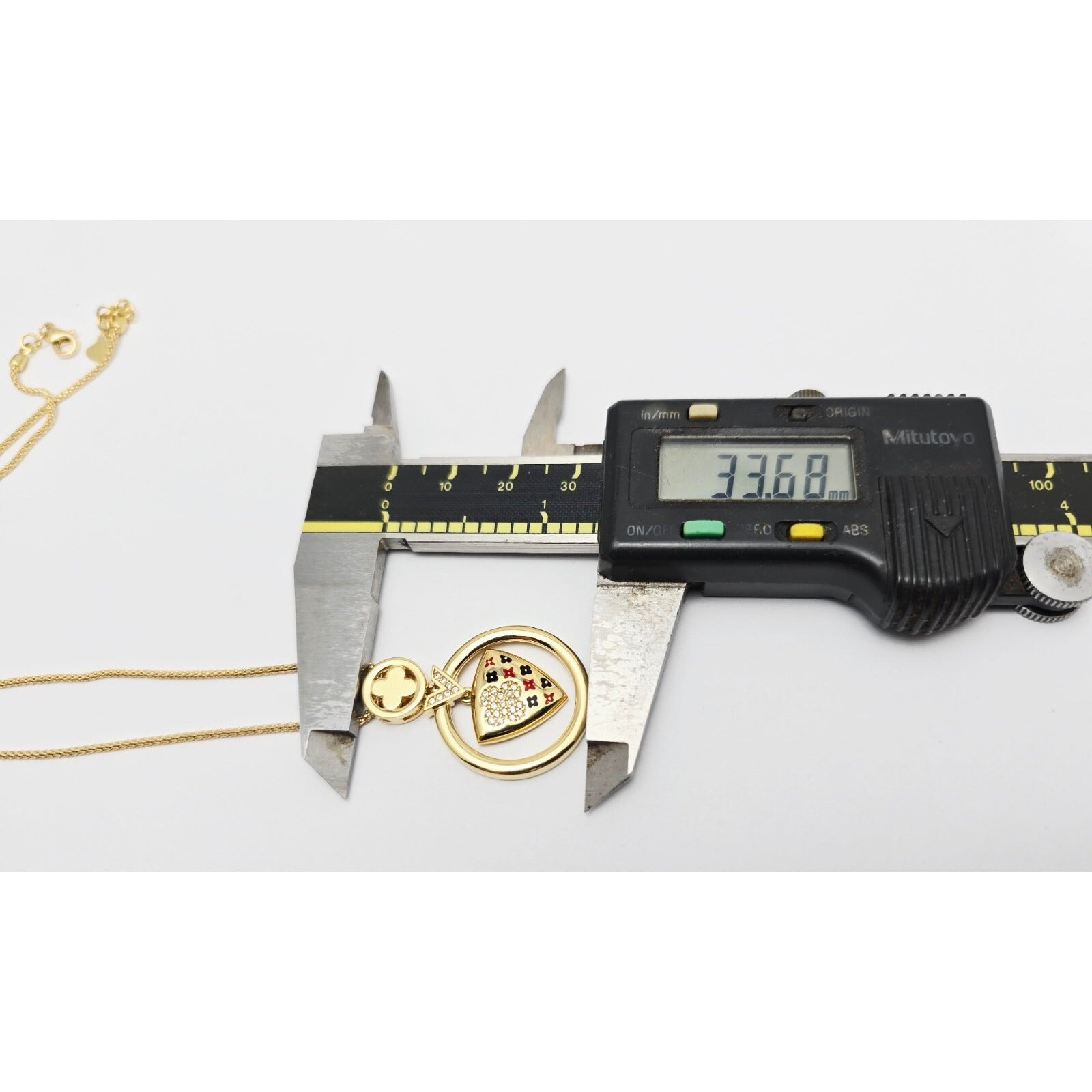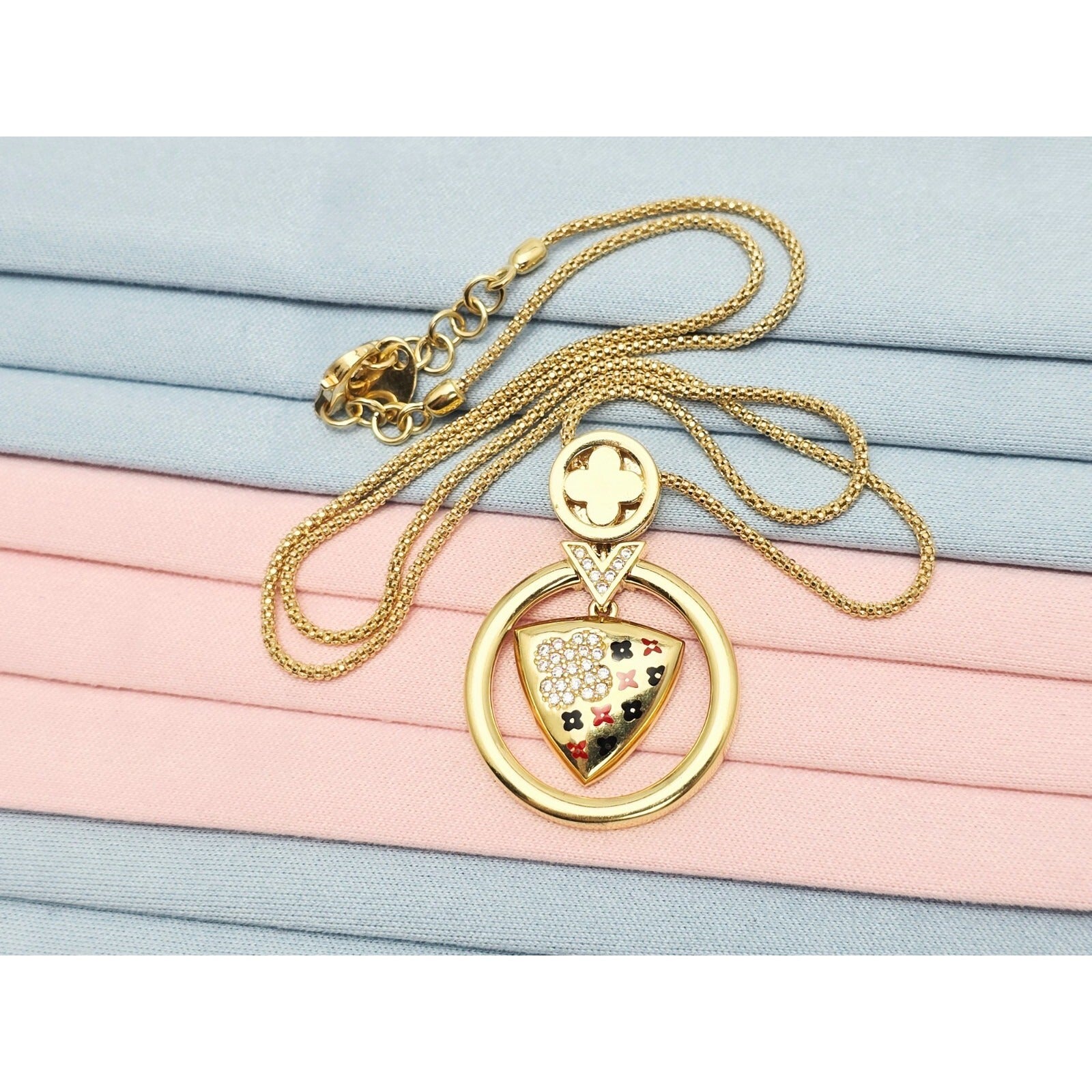 18K Yellow Gold Round V Enamel Charm Pendant Resizable Link Chain Necklace