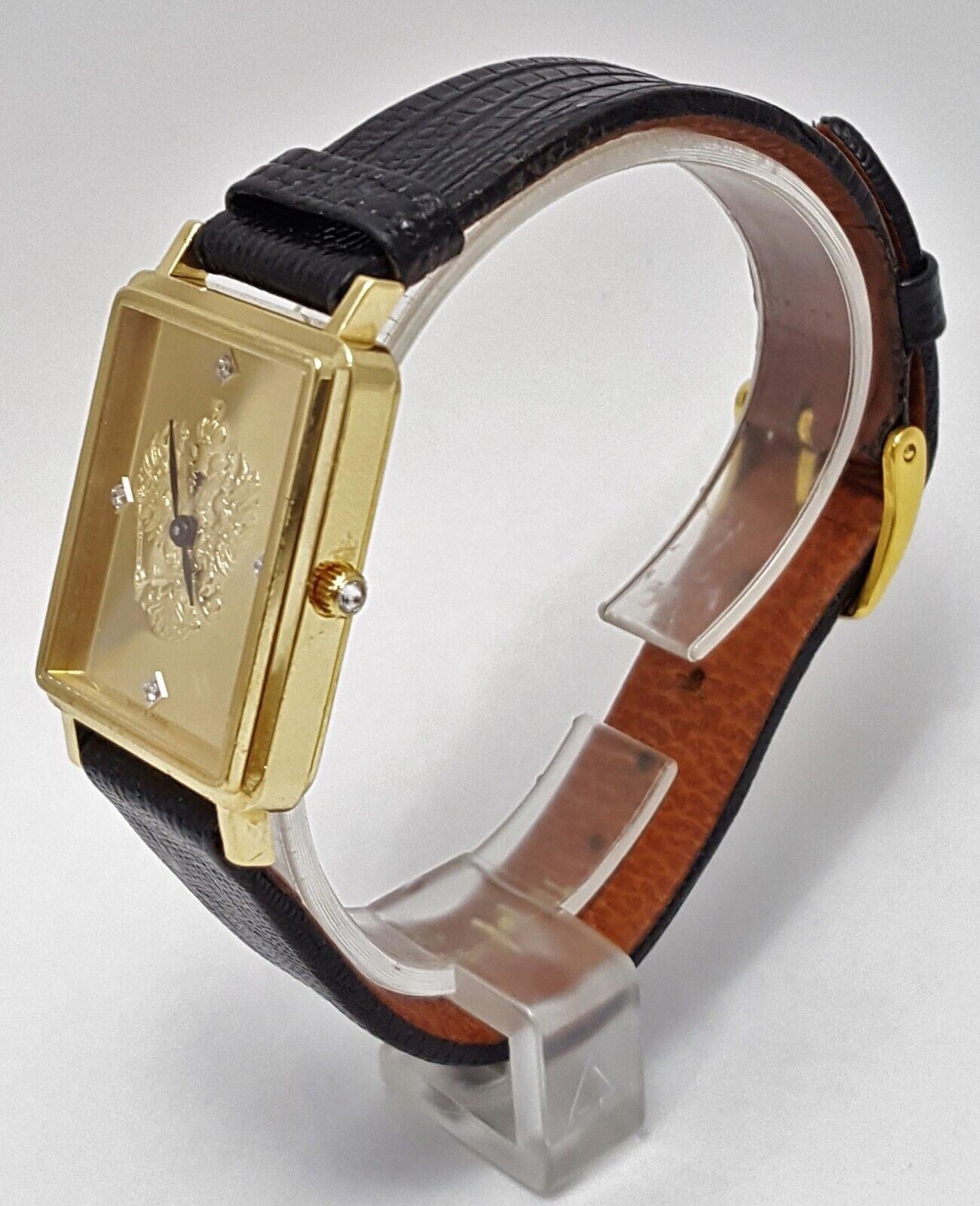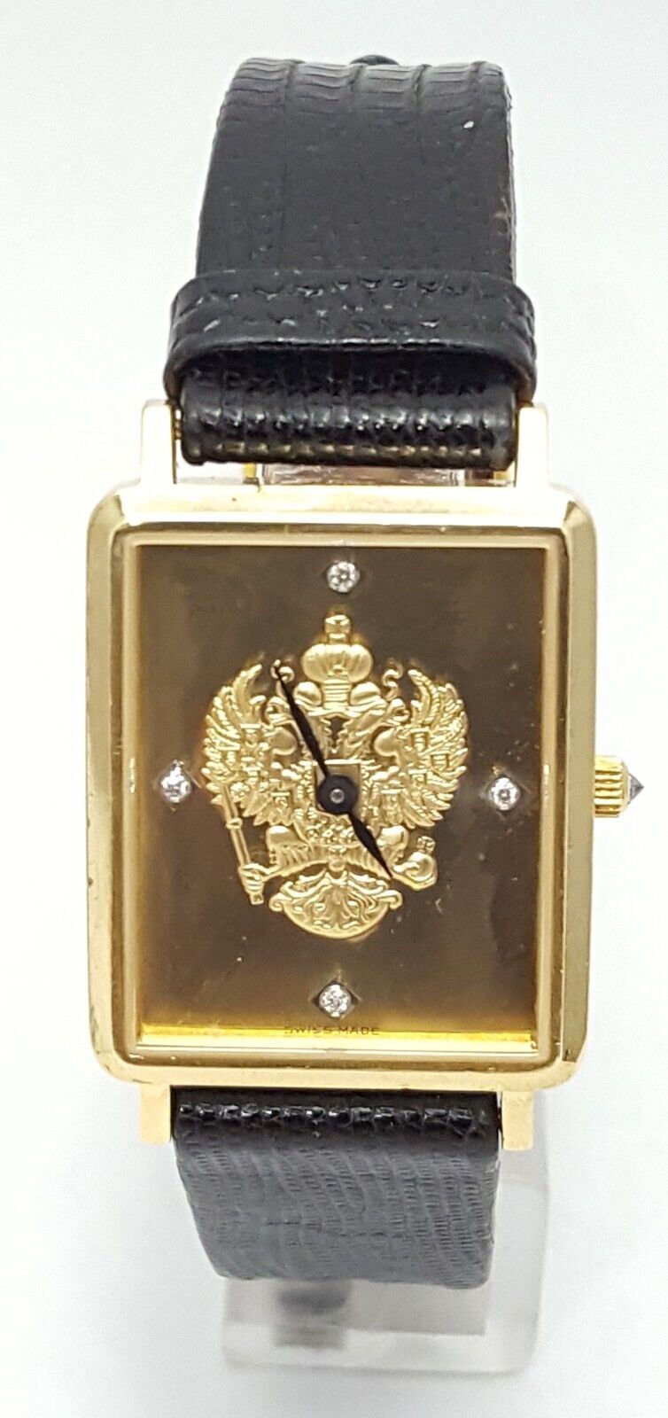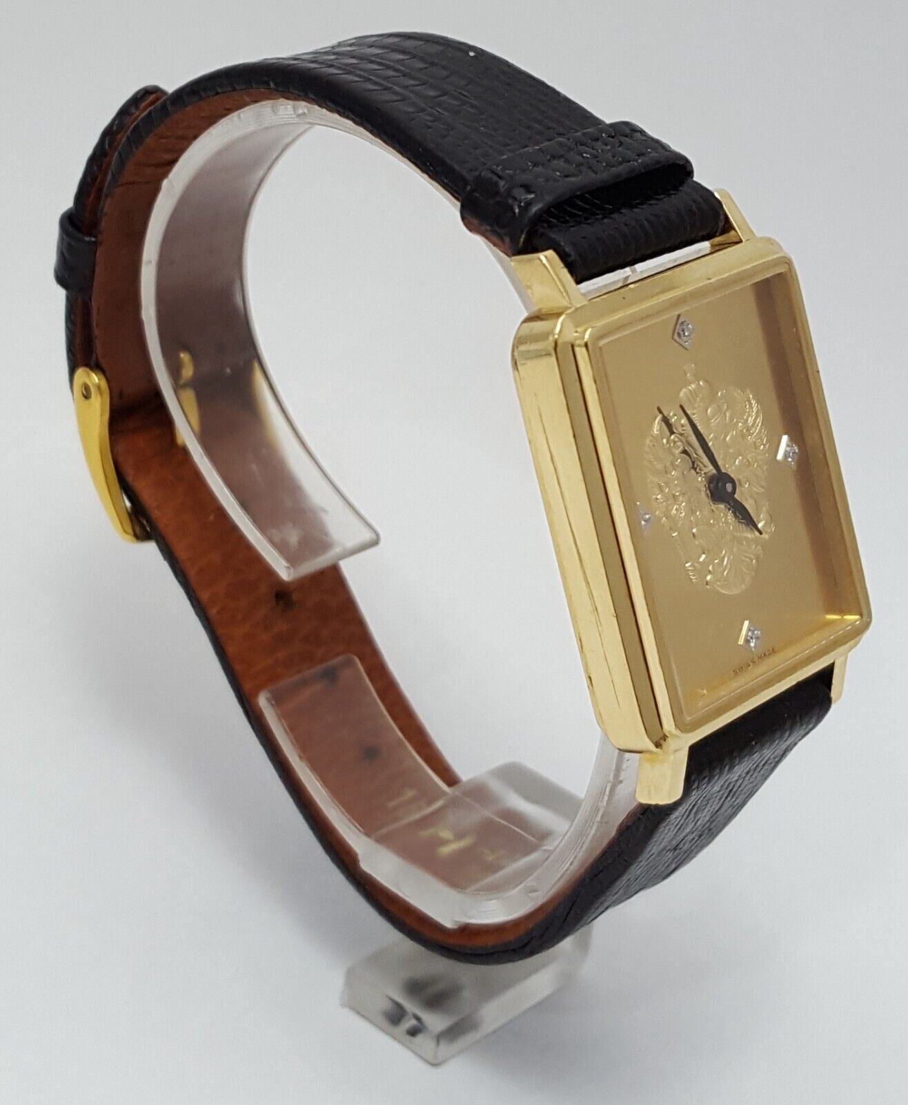 18kt Yellow Gold Franklin Mint Royal Crest Tank Leather Band Men's Watch 24mm