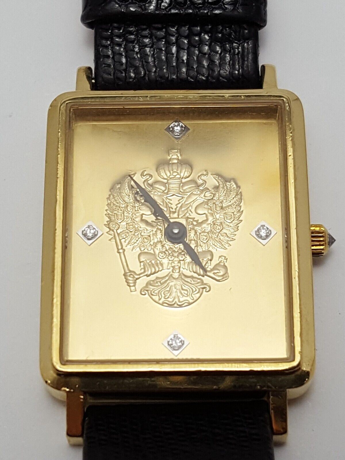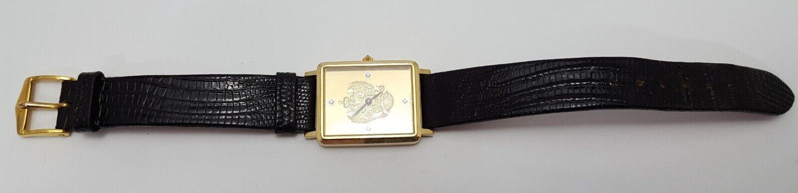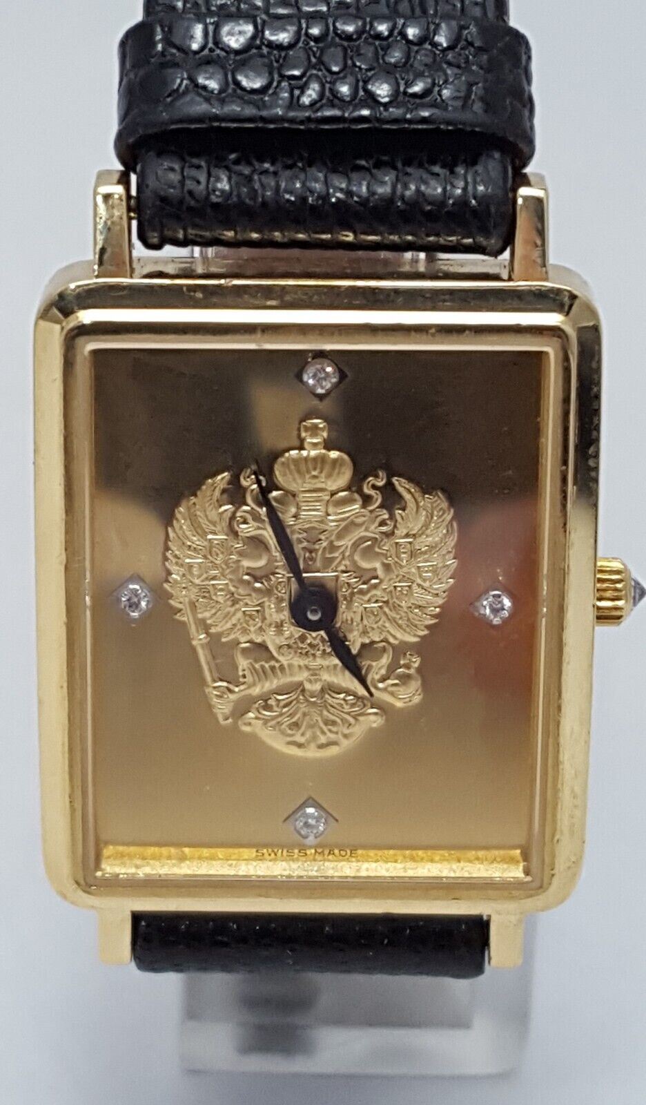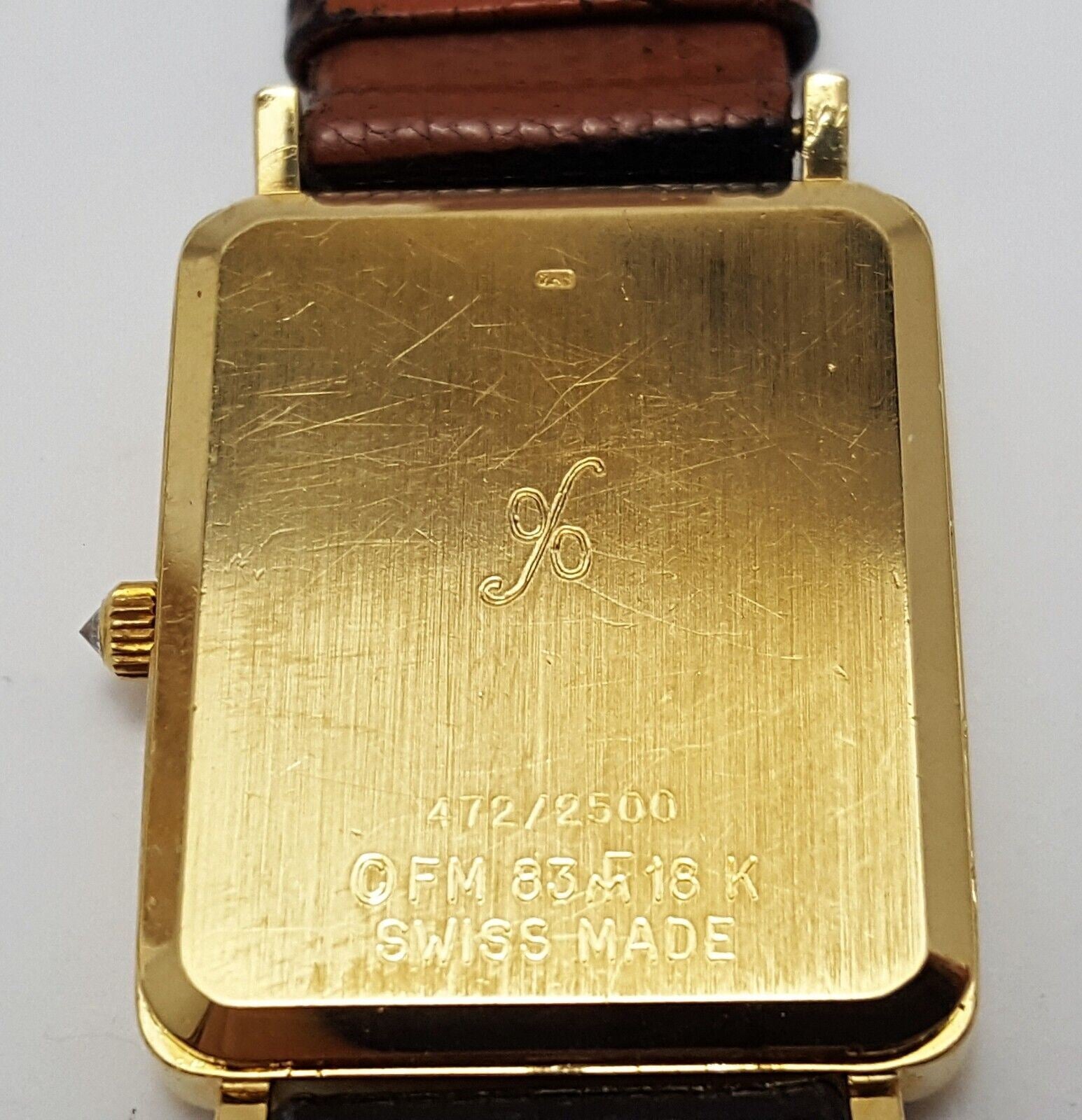 18kt Yellow Gold Franklin Mint Royal Crest Tank Leather Band Men's Watch 24mm