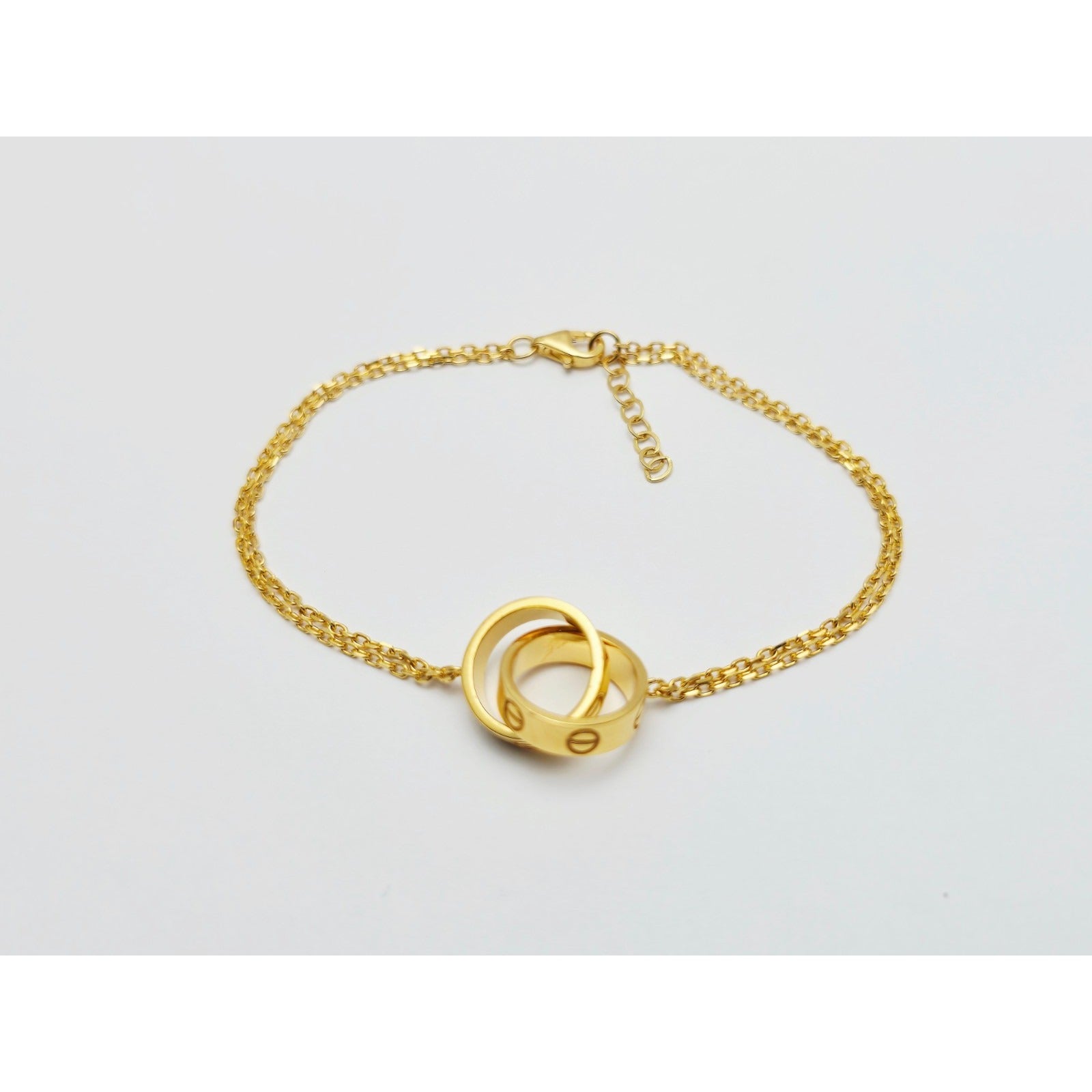 21K Yellow Gold Interlocking Circles Cable Link Resizable Bracelet