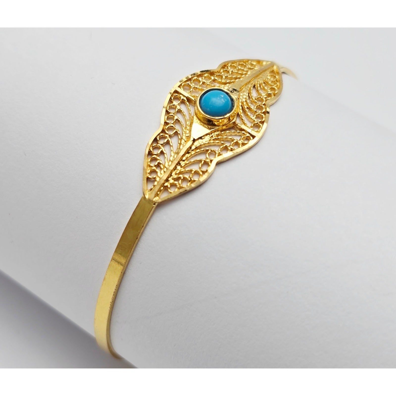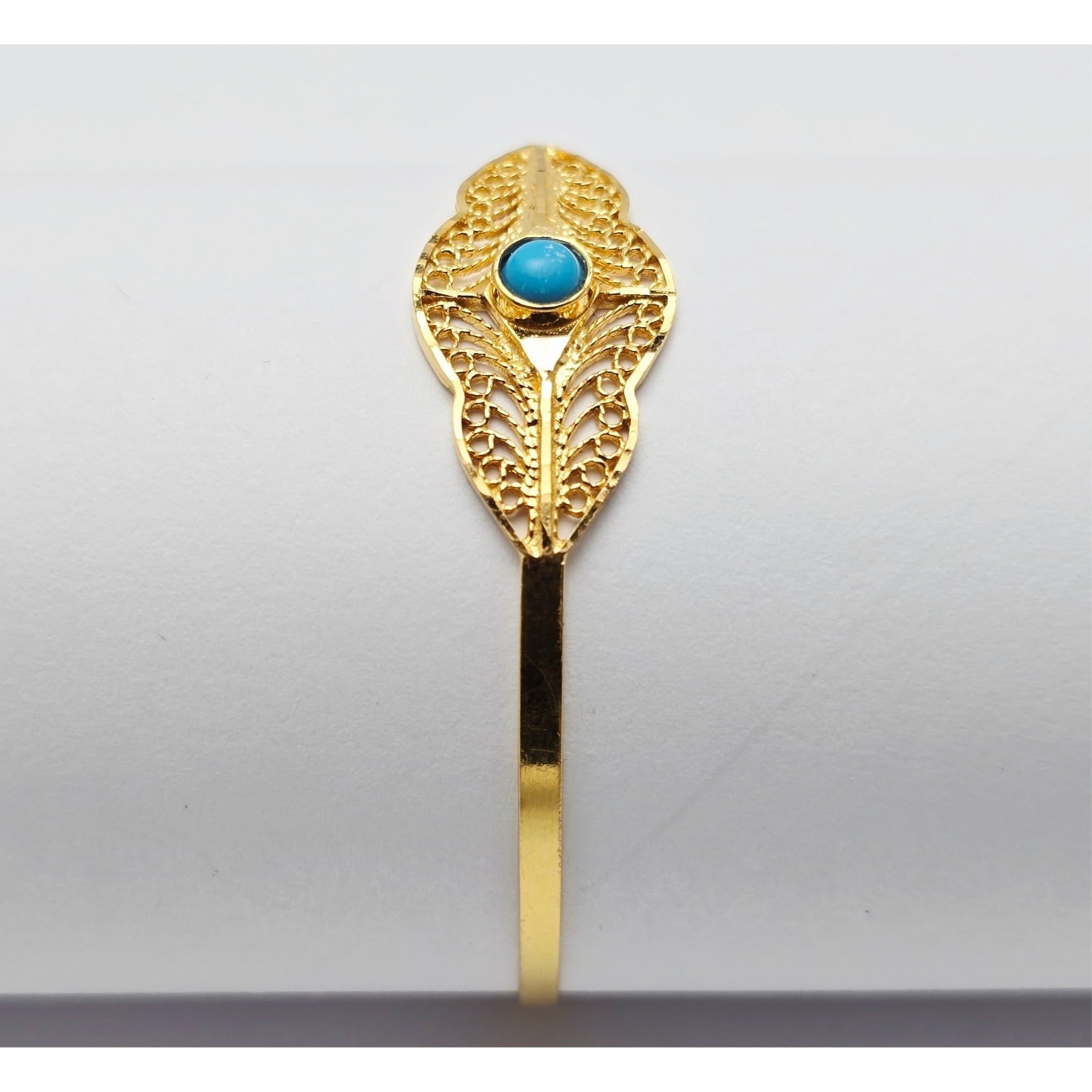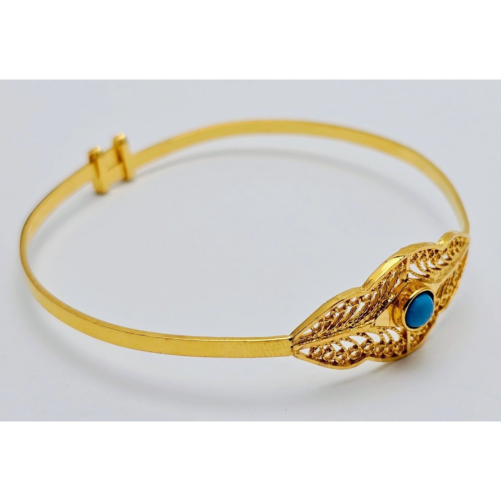 21K Yellow Gold Resizable Filigree Turquoise Bangle Bracelet