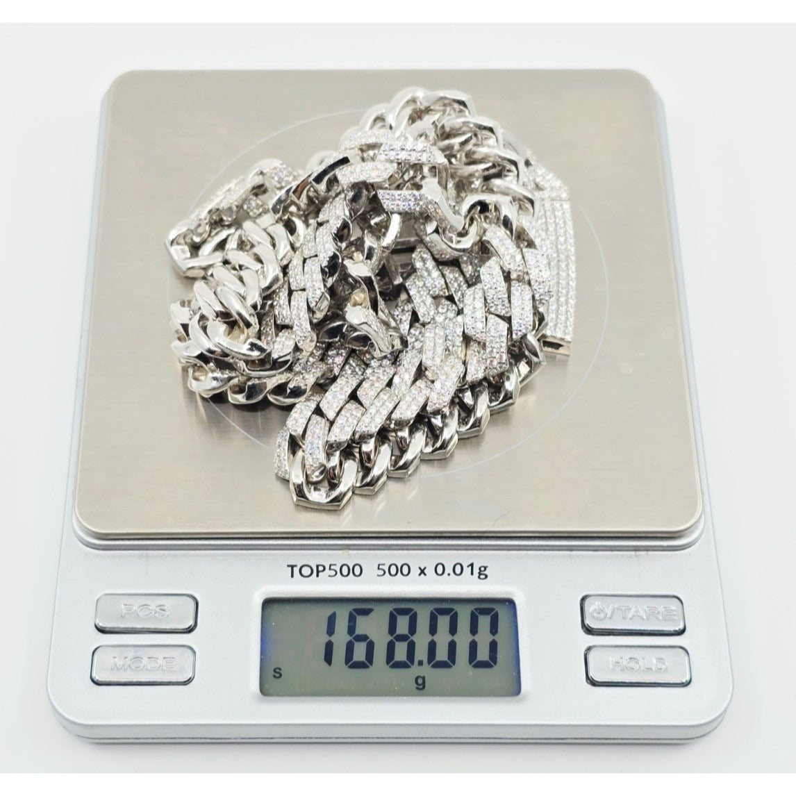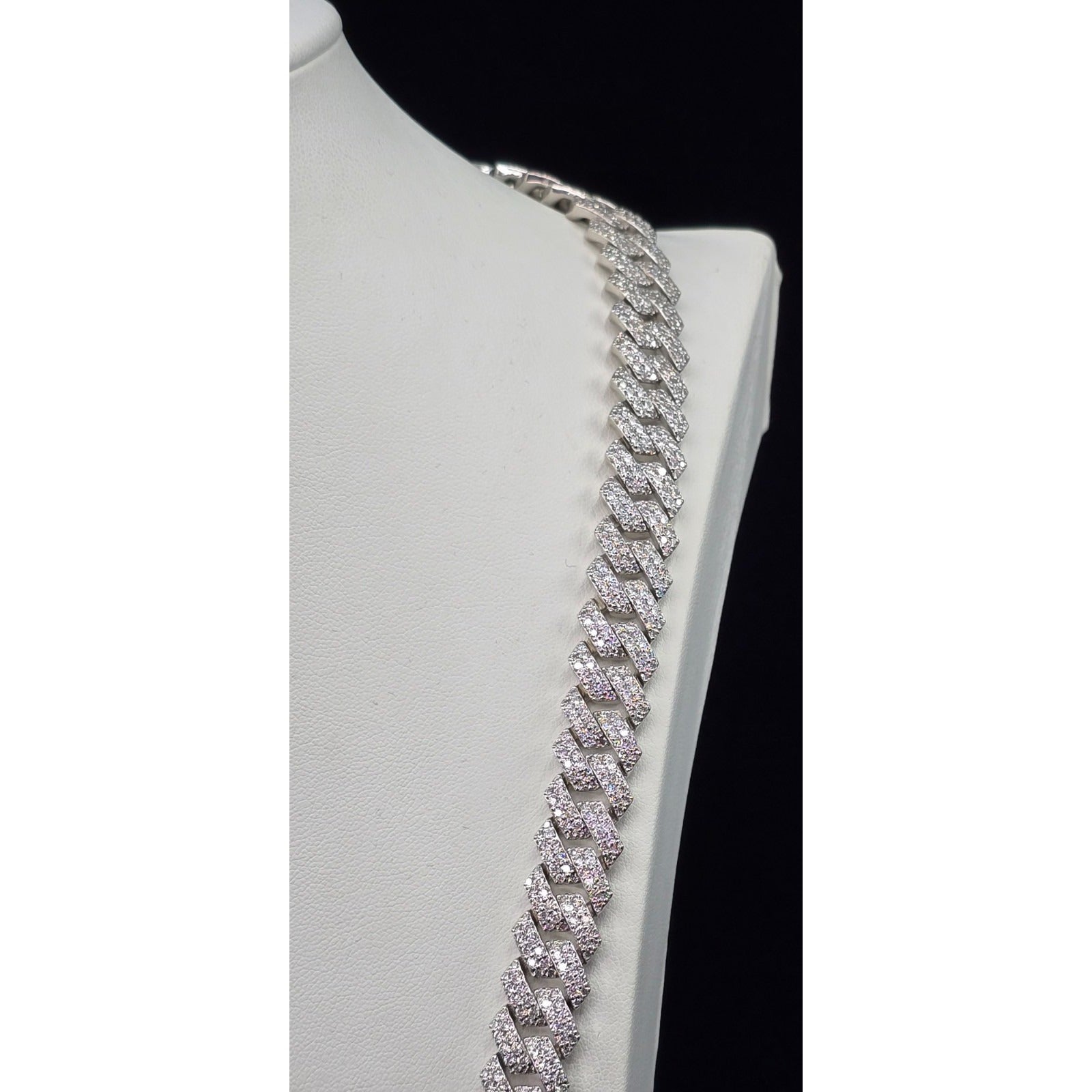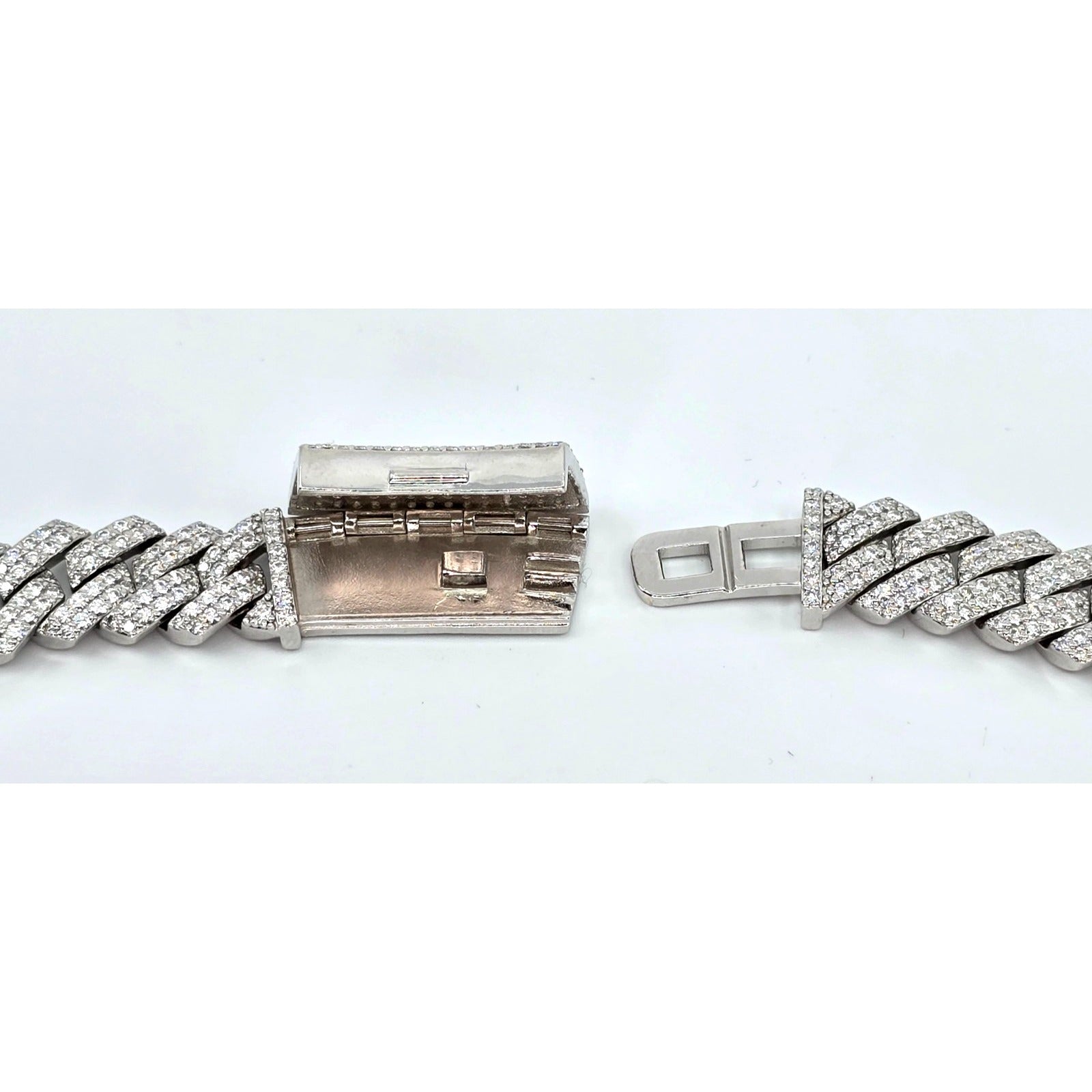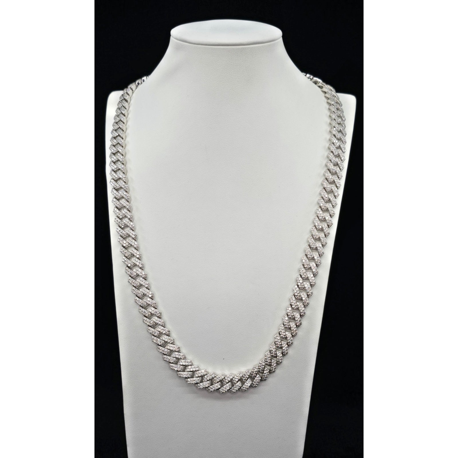 925 Sterling Silver Iced Out Moissanite 2 Row Cuban Link Chain Necklace