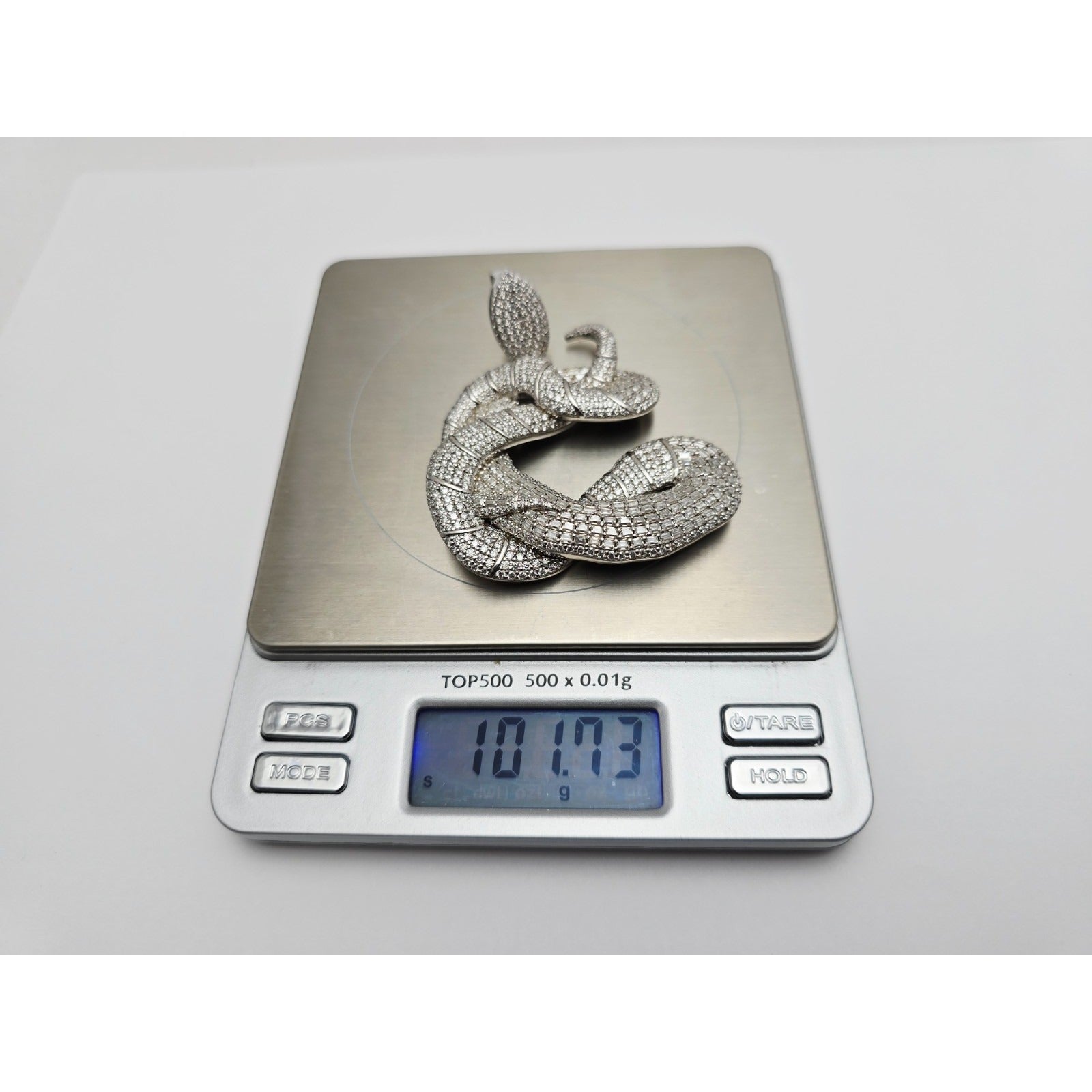 925 Sterling Silver Iced Out Moissanite Letter Initial "C" Snake Charm Pendant
