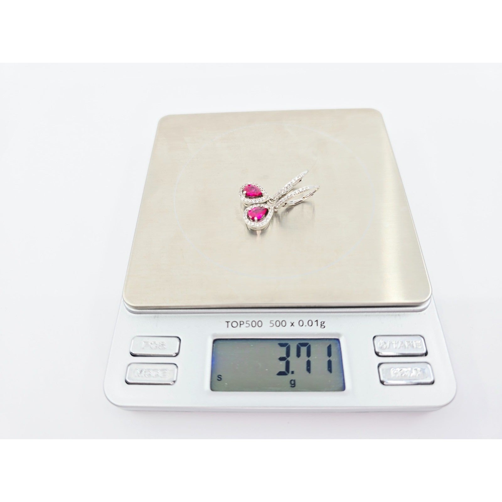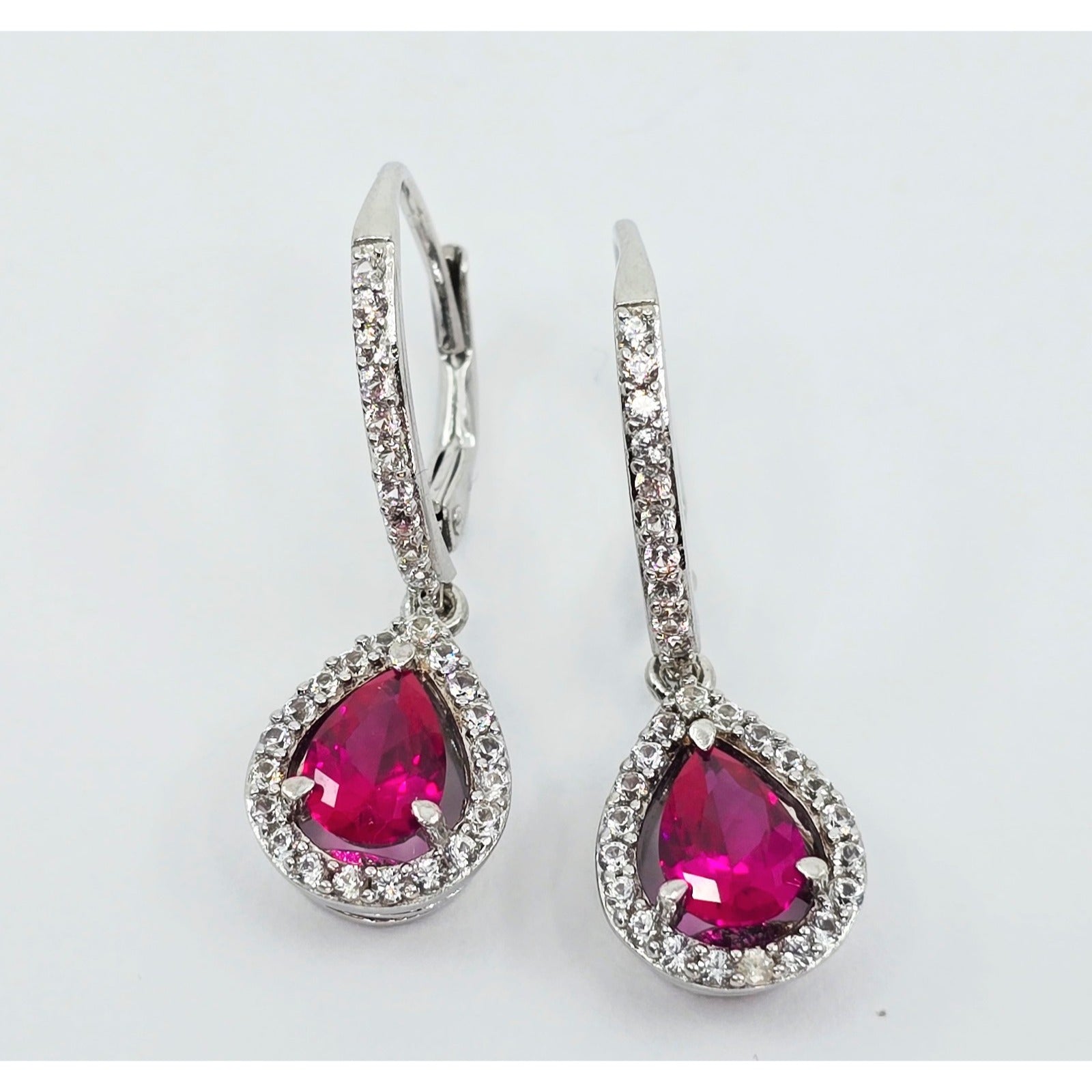 - Each Earring Includes a Synthetic Ruby & White Sapphires