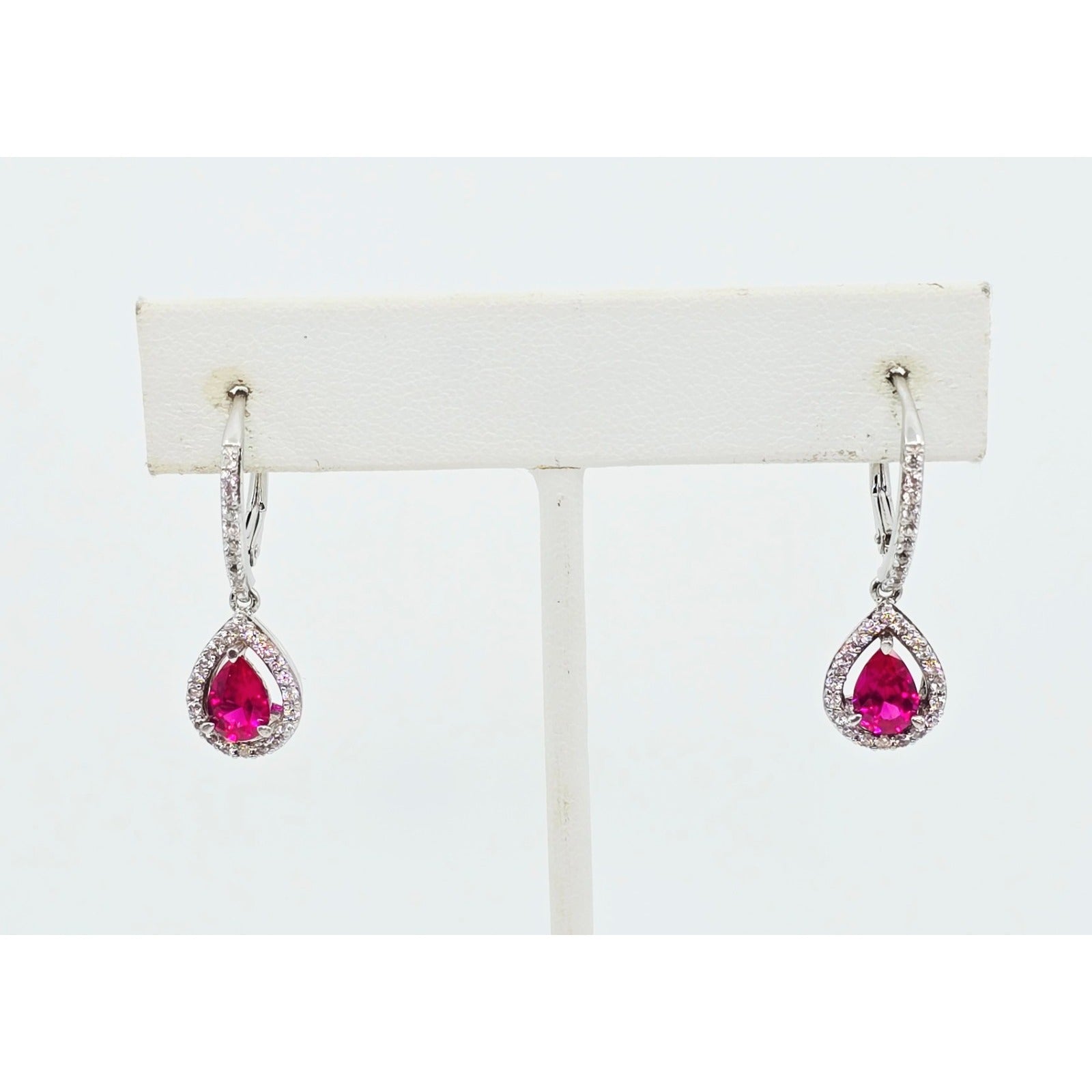925 Sterling Silver Rhodium Plated Synthetic Ruby Lever Back Dangle Earrings