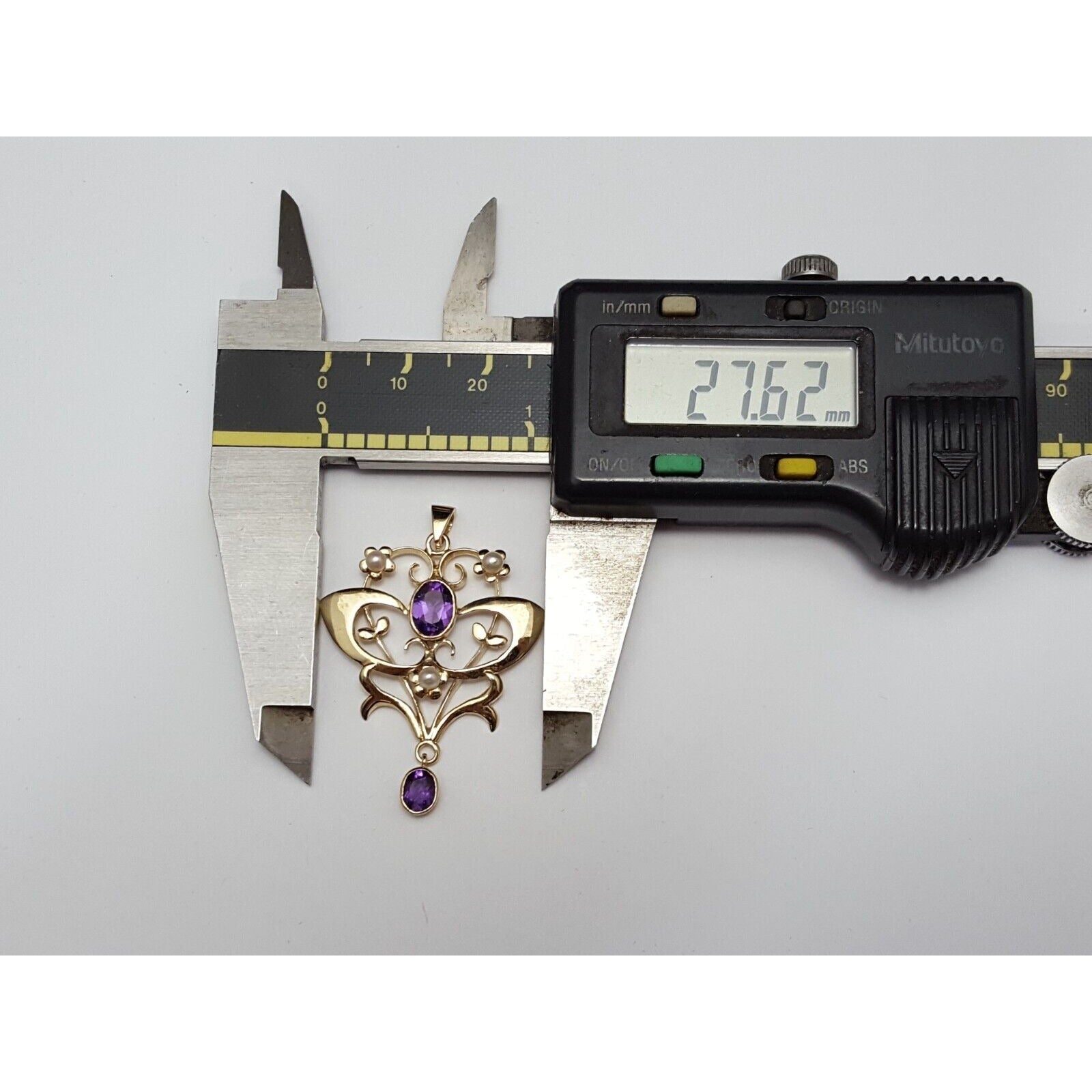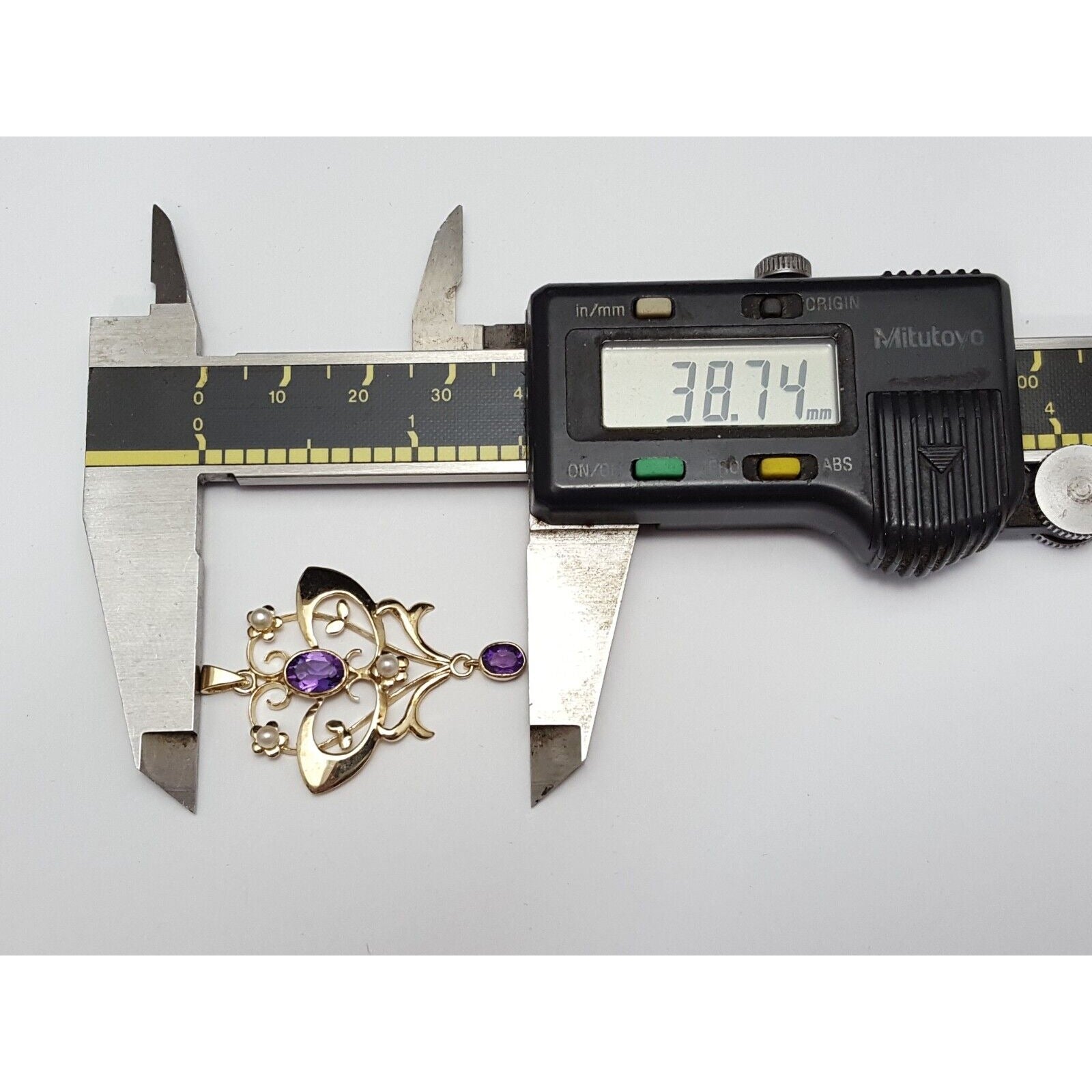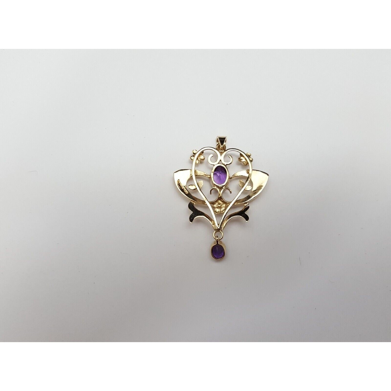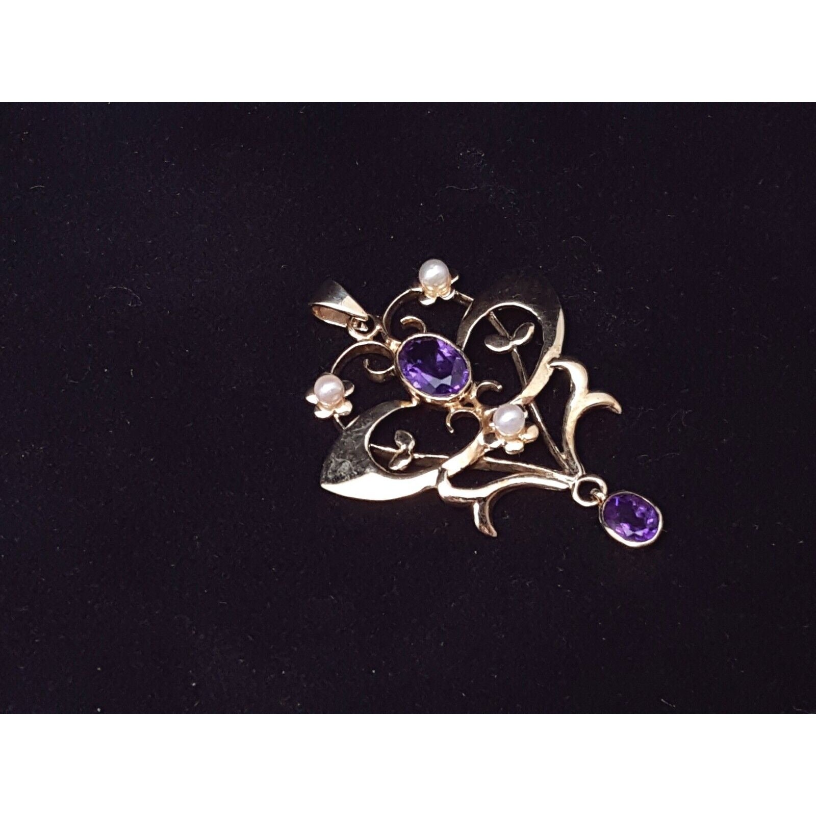 9K Solid Yellow Gold Drop Dangle Amethyst & Pearl Charm Pendant