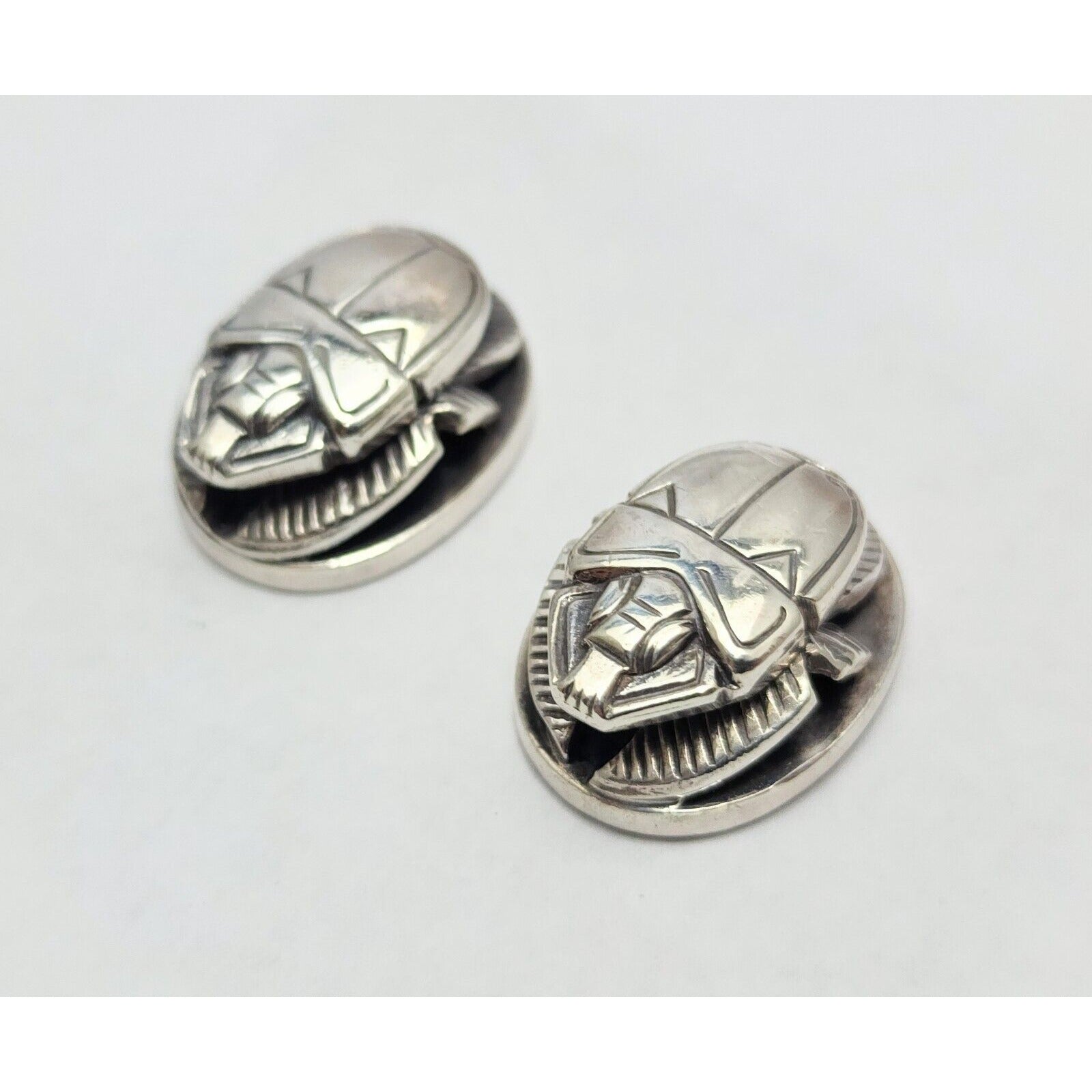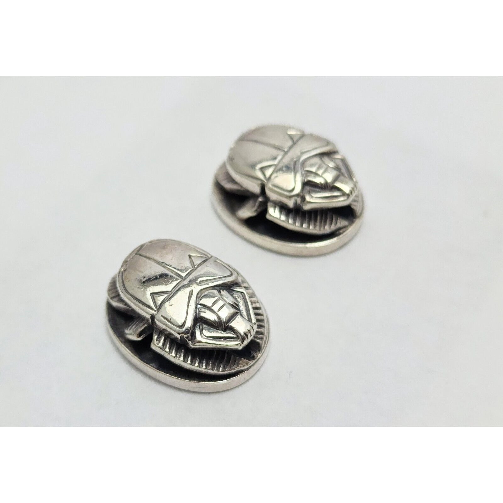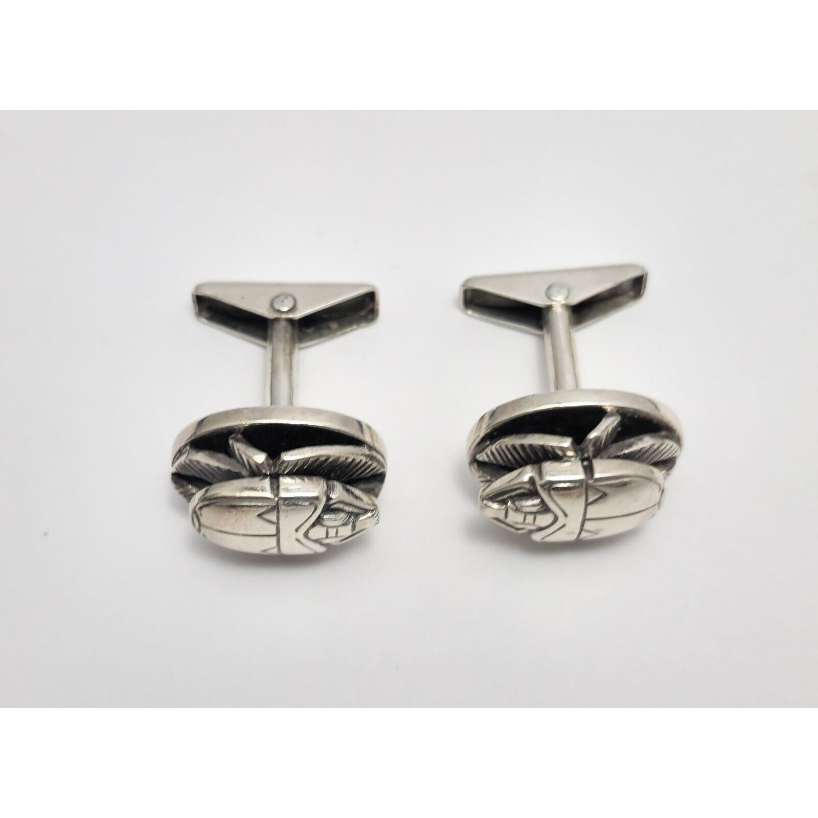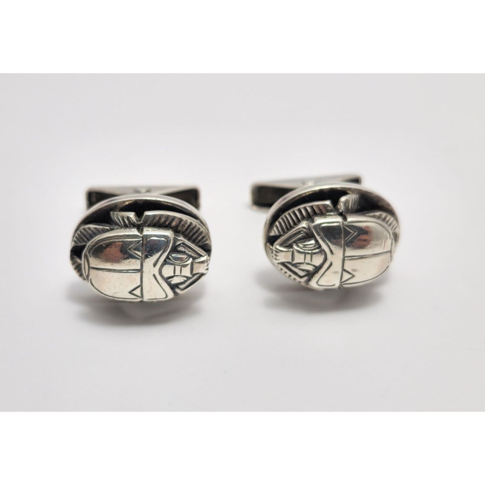 Allan Adler Sterling Silver Scarab Cufflinks 1940s Silversmith to the Stars