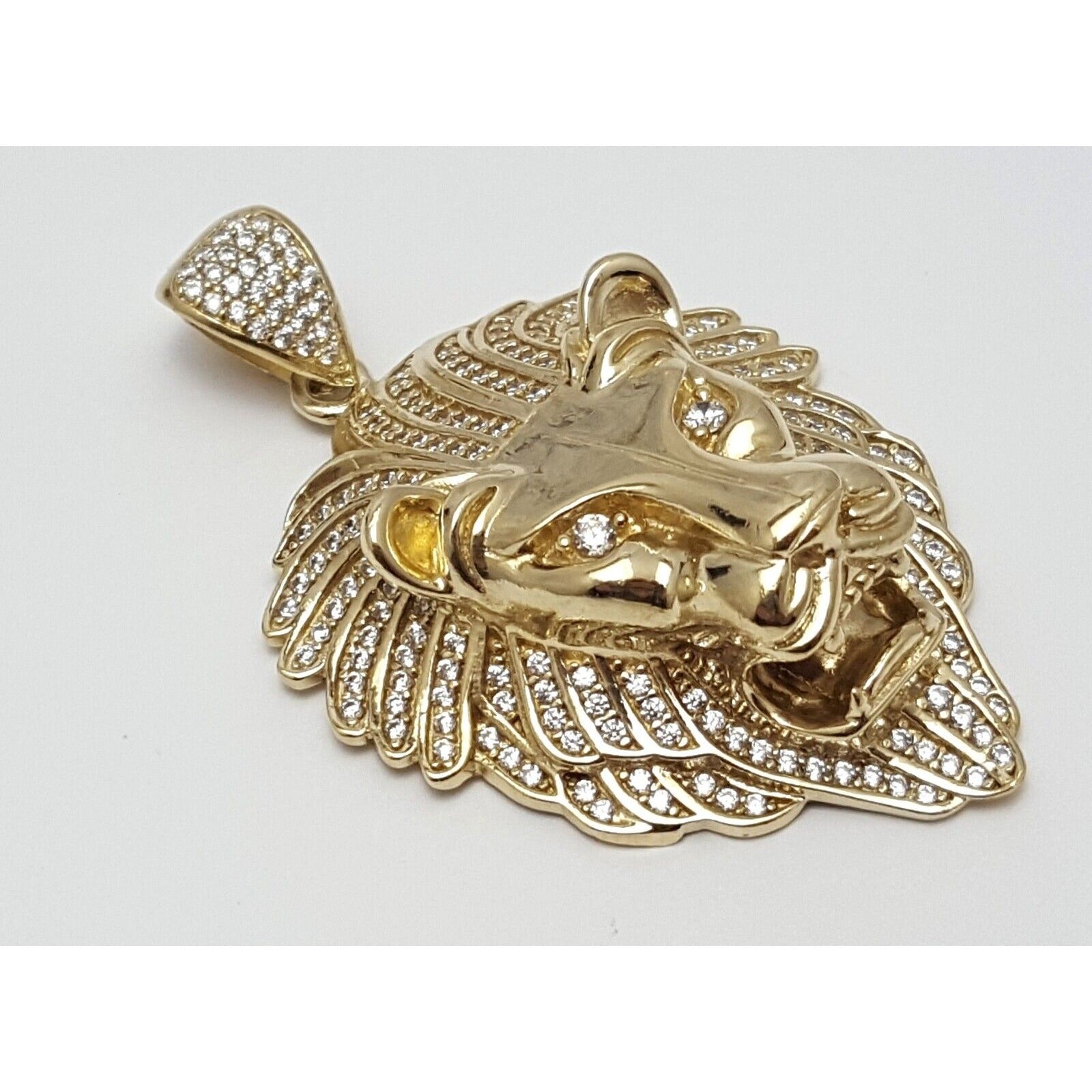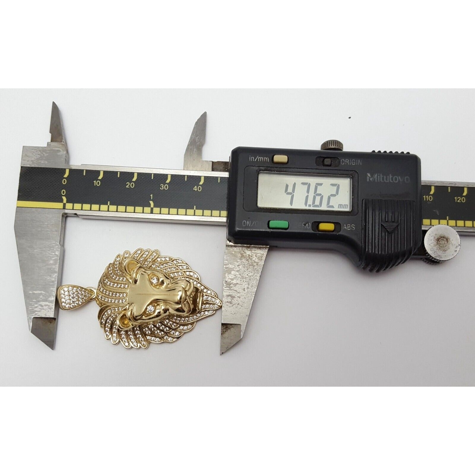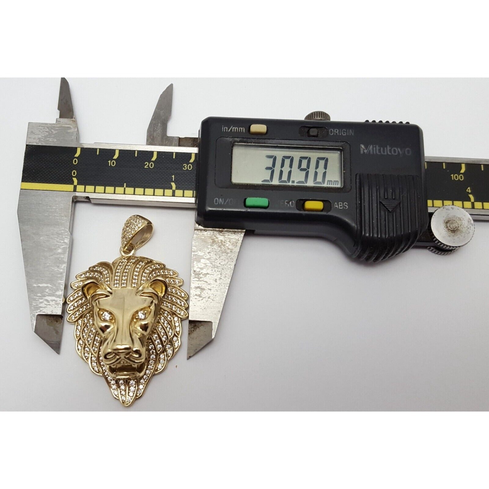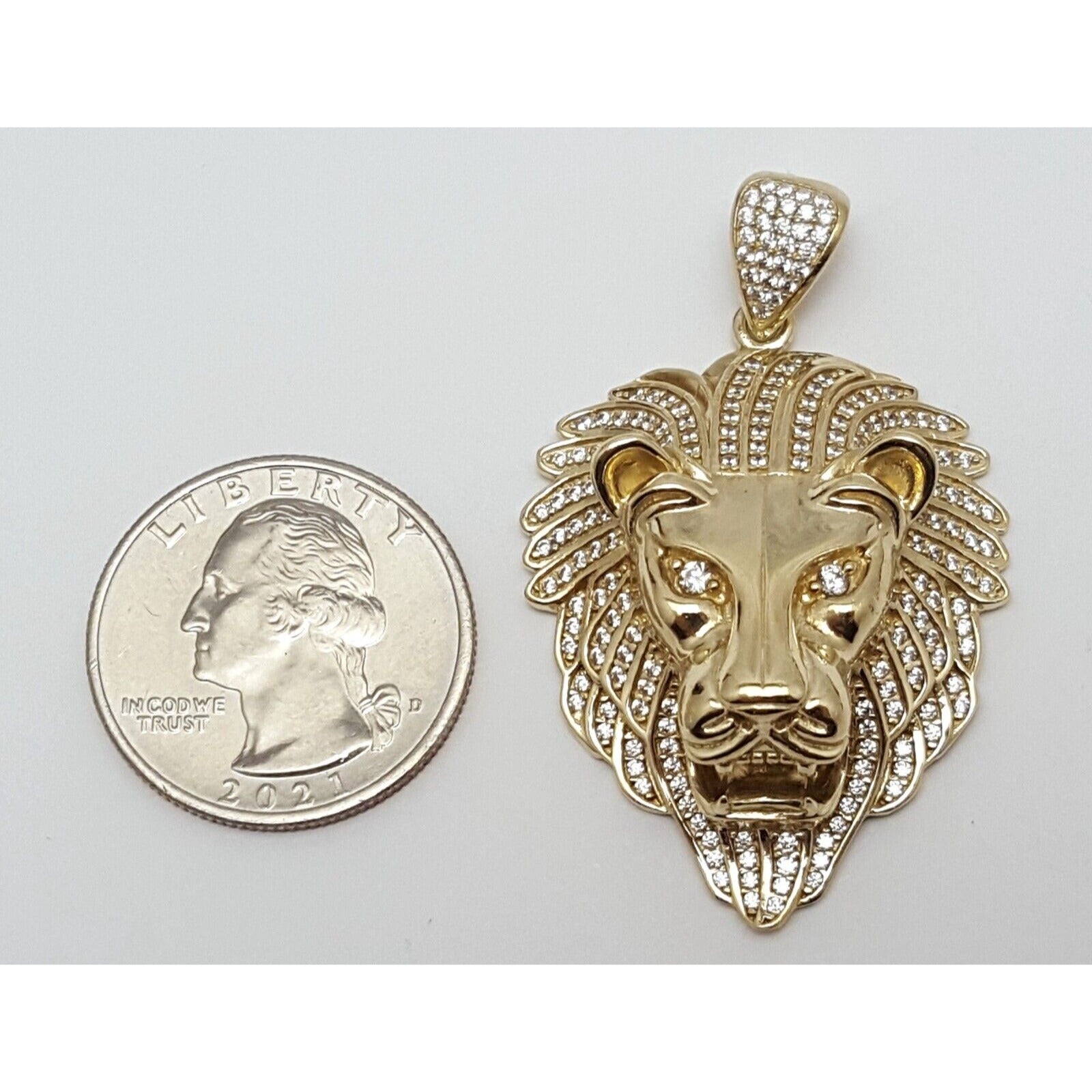 10K Solid Yellow Gold 3D Cubic Zirconia Lion Head Charm Pendant