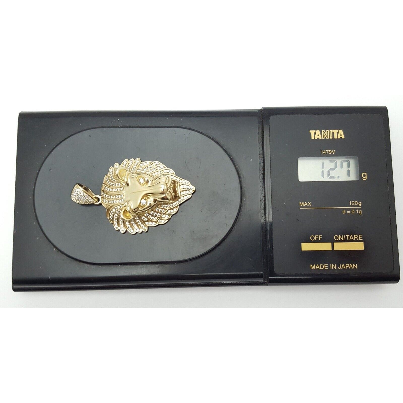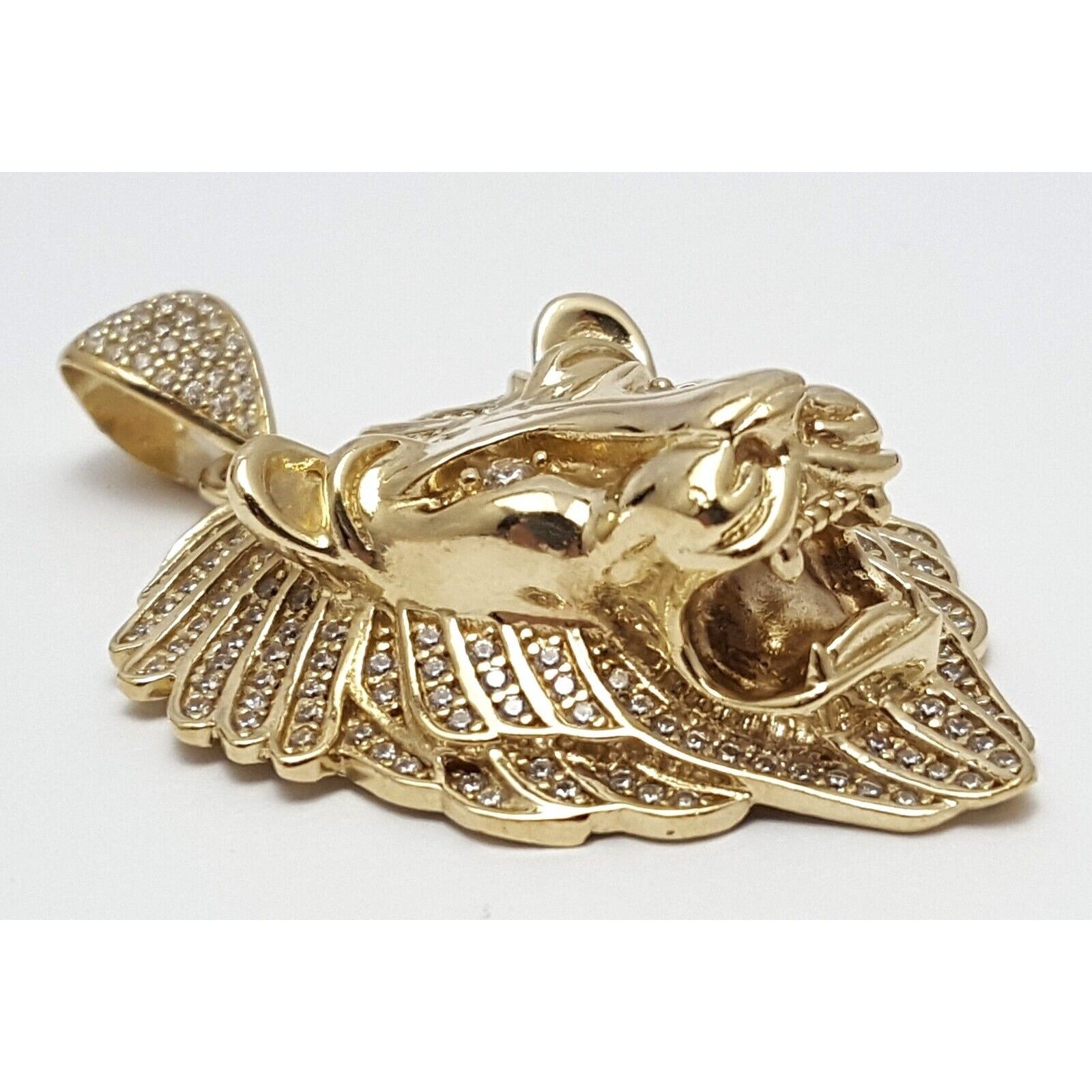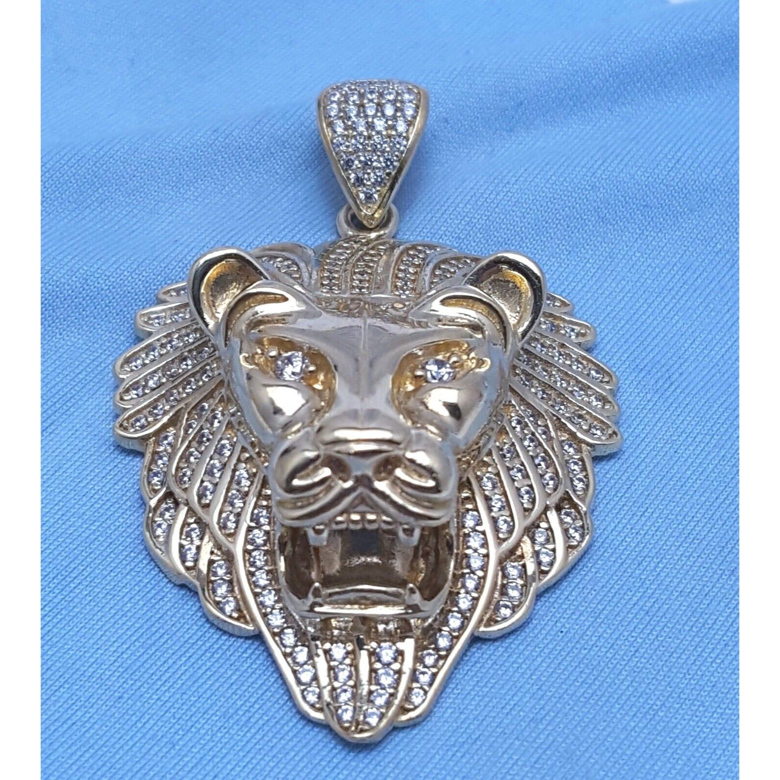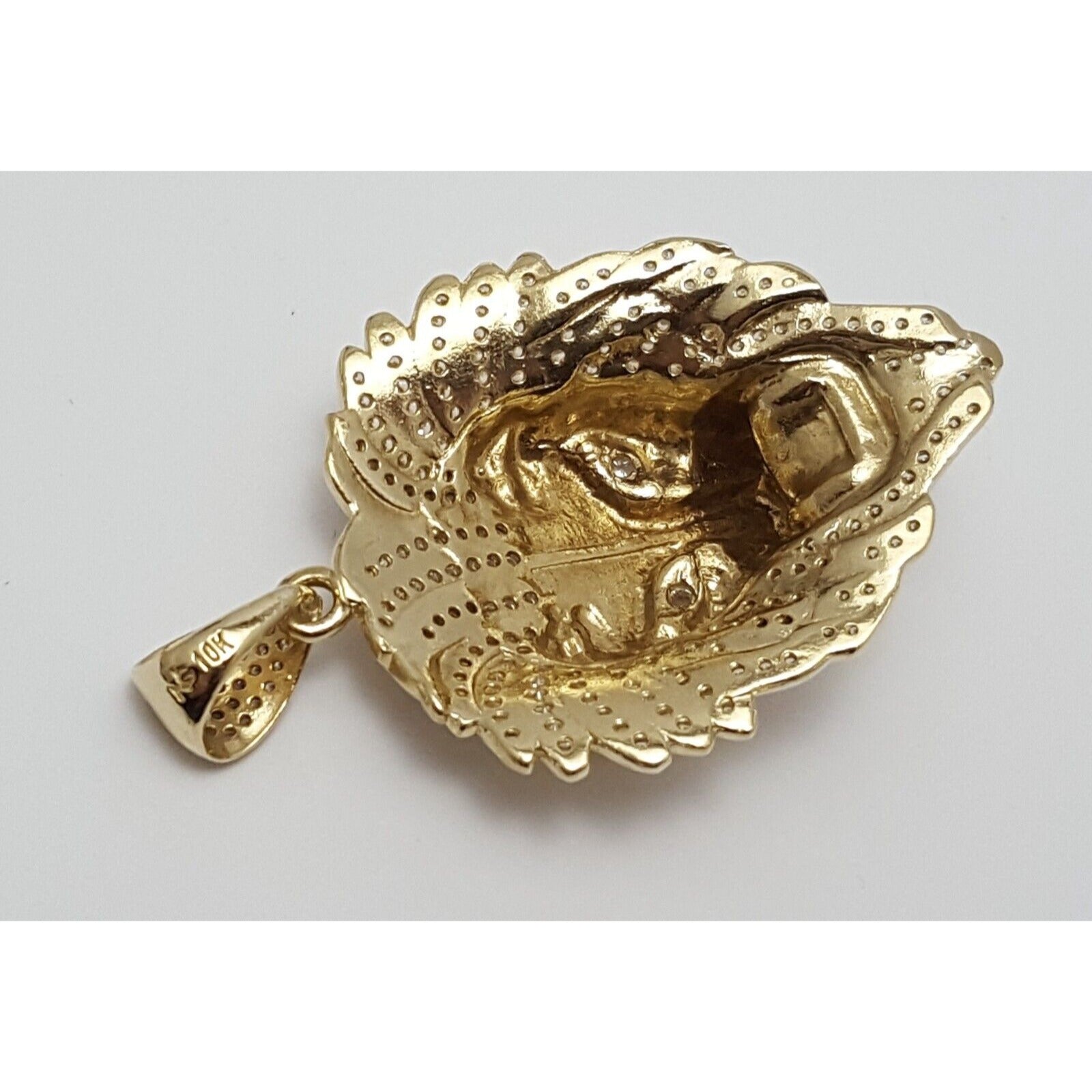 10K Solid Yellow Gold 3D Cubic Zirconia Lion Head Charm Pendant