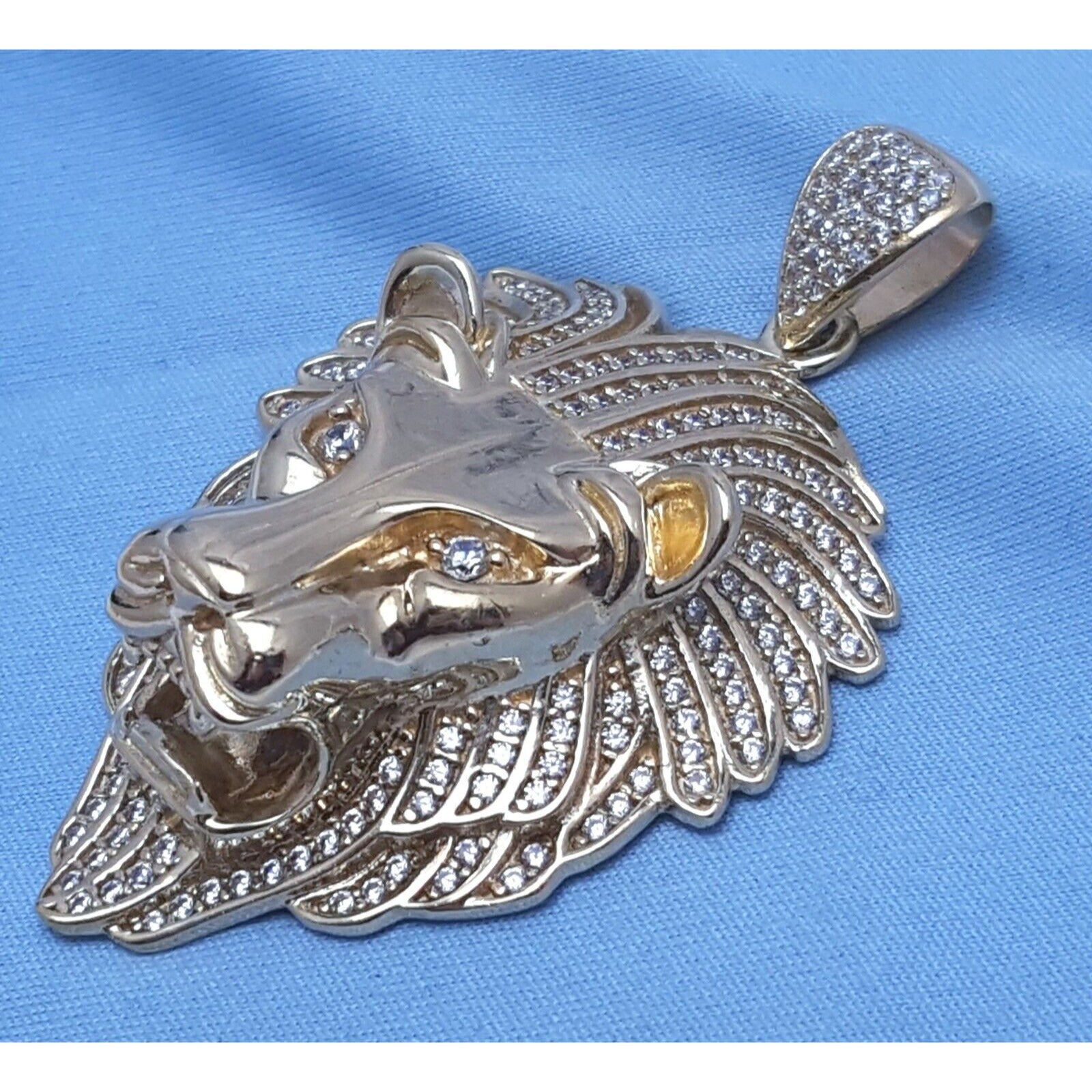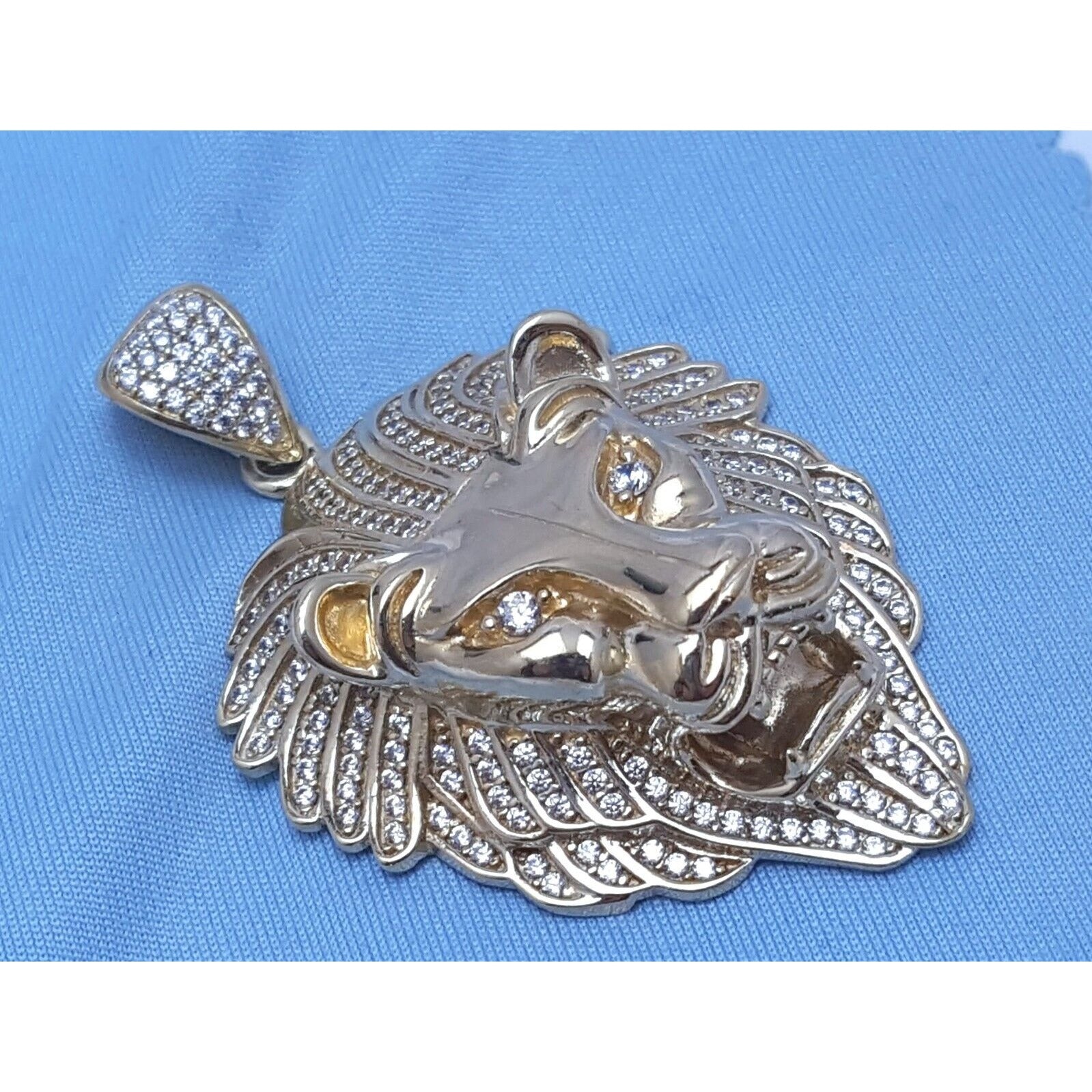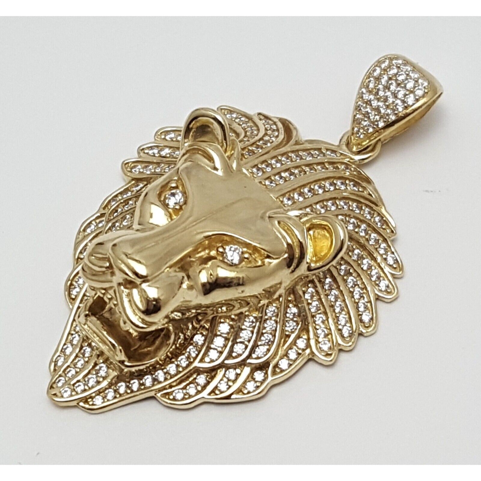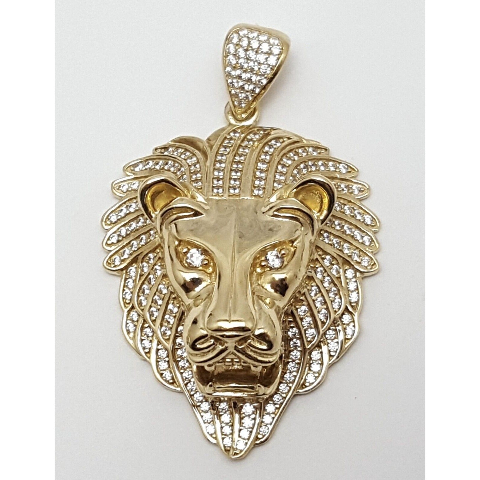 10K Solid Yellow Gold 3D Cubic Zirconia Lion Head Charm Pendant