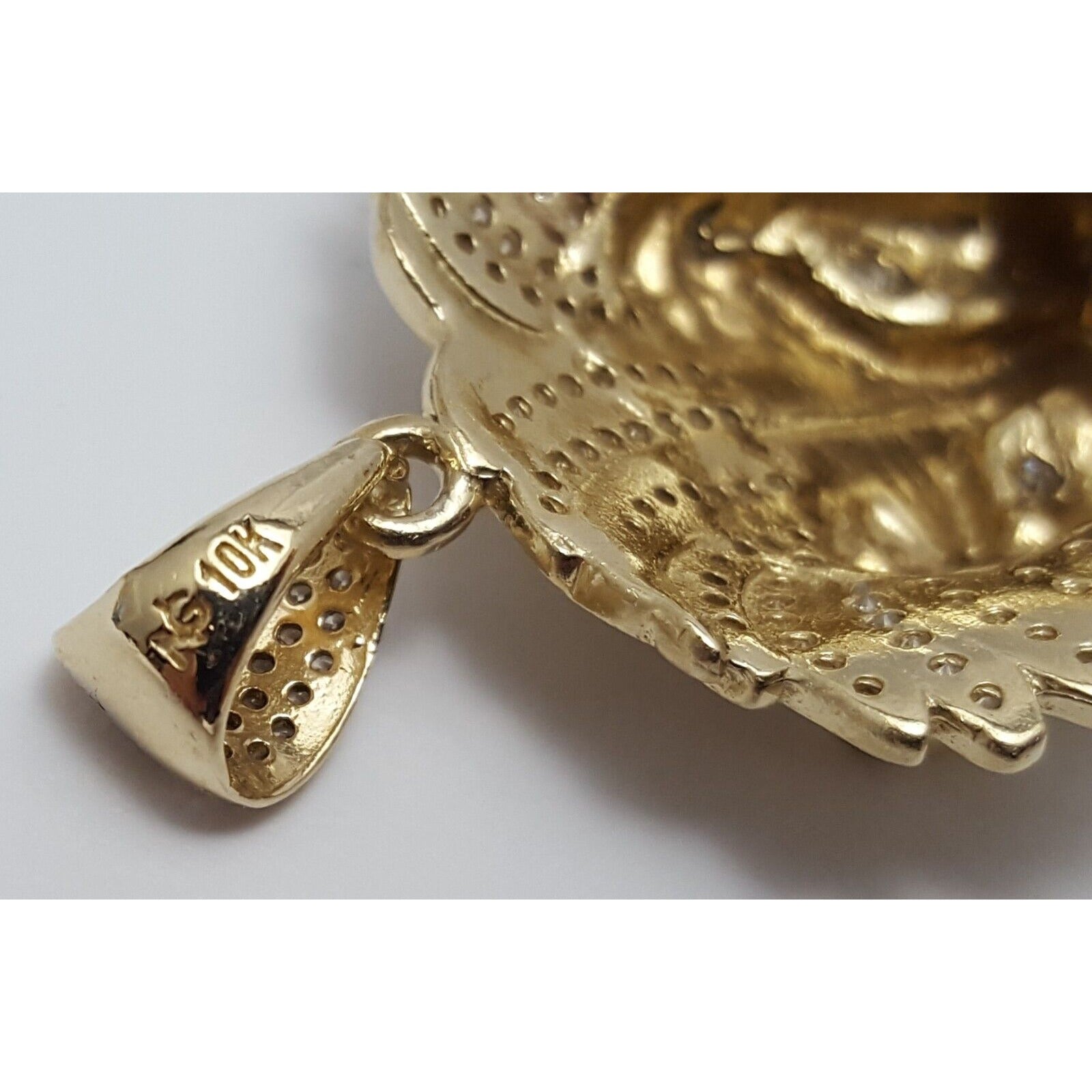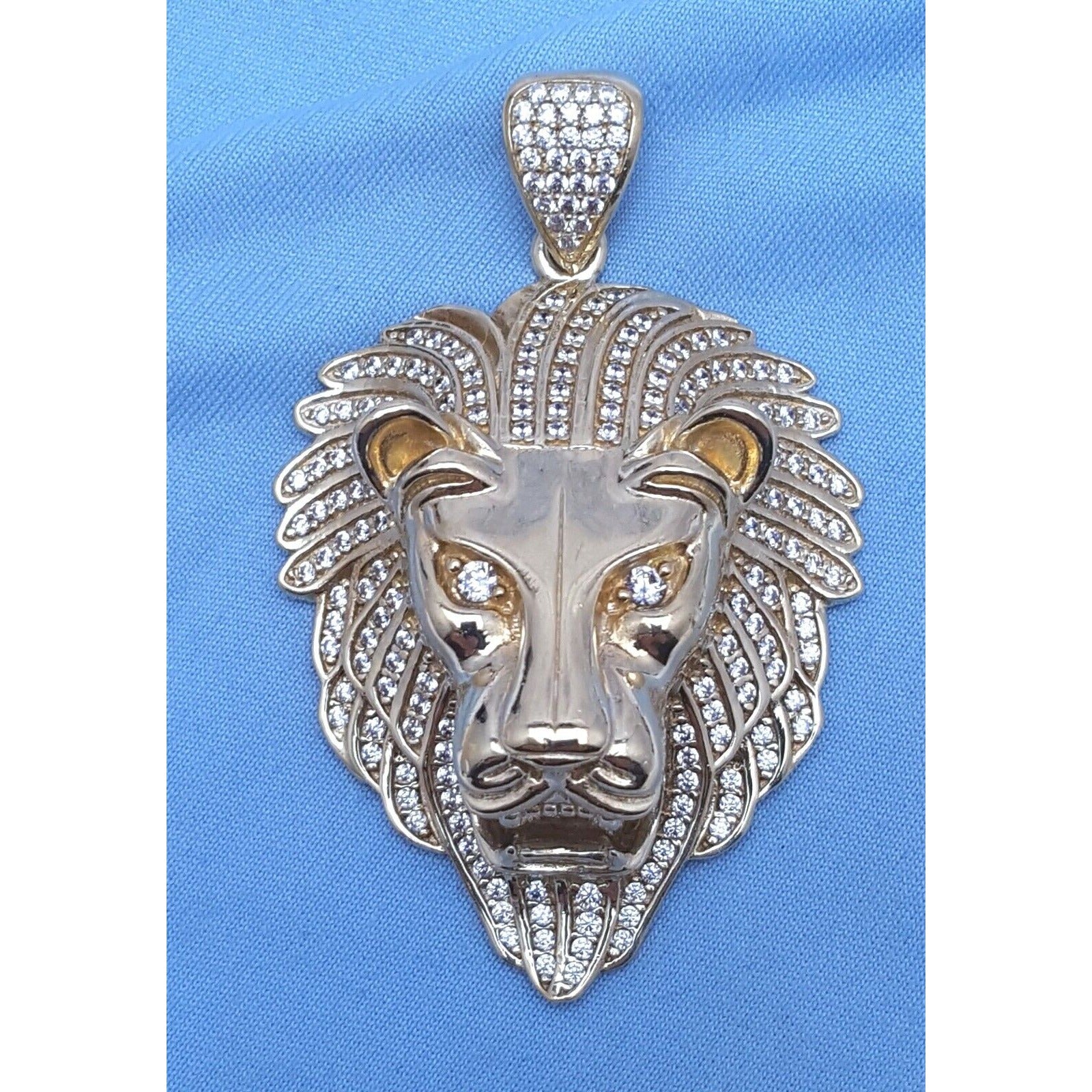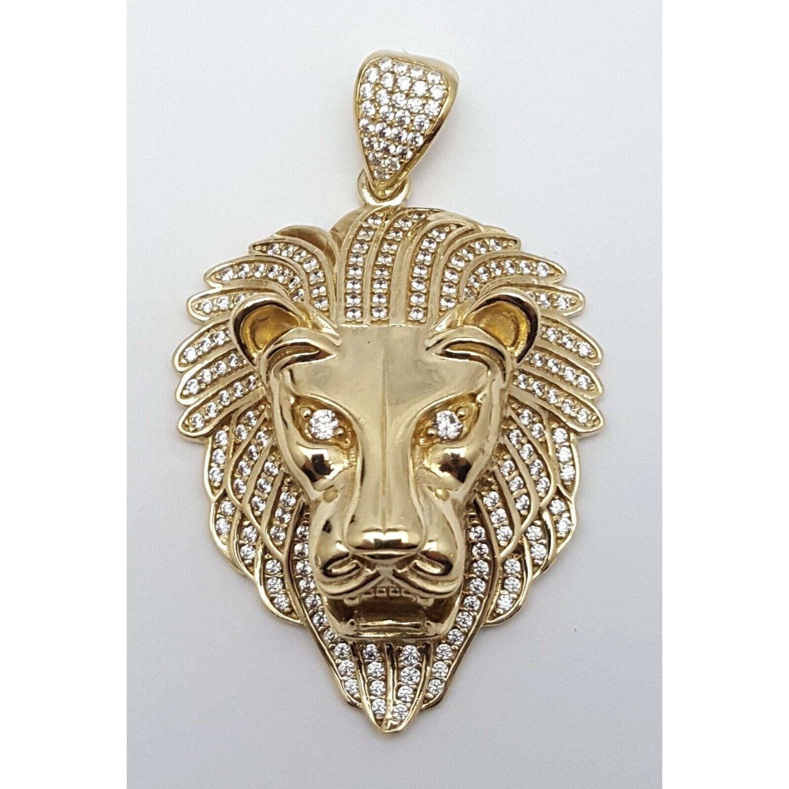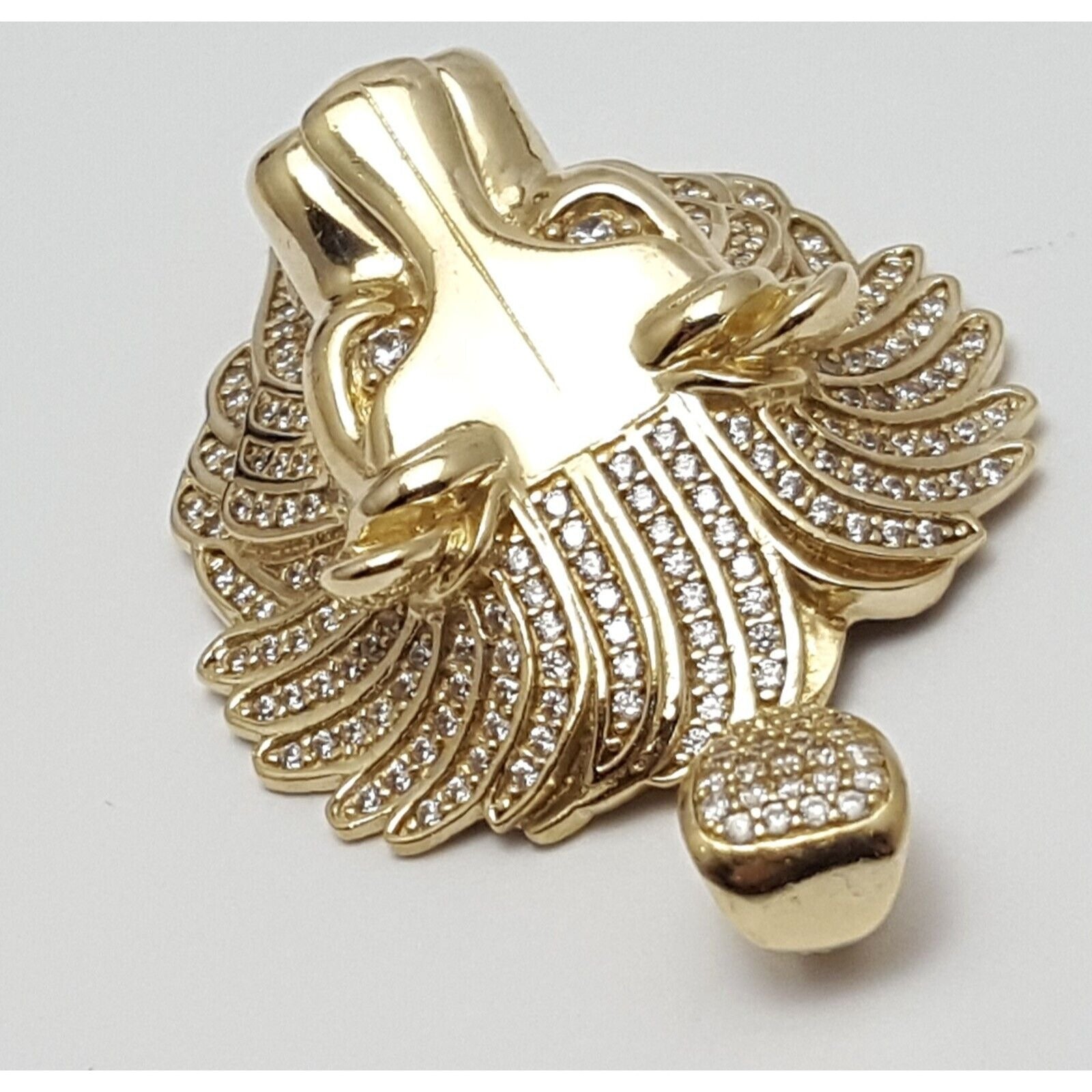 10K Solid Yellow Gold 3D Cubic Zirconia Lion Head Charm Pendant