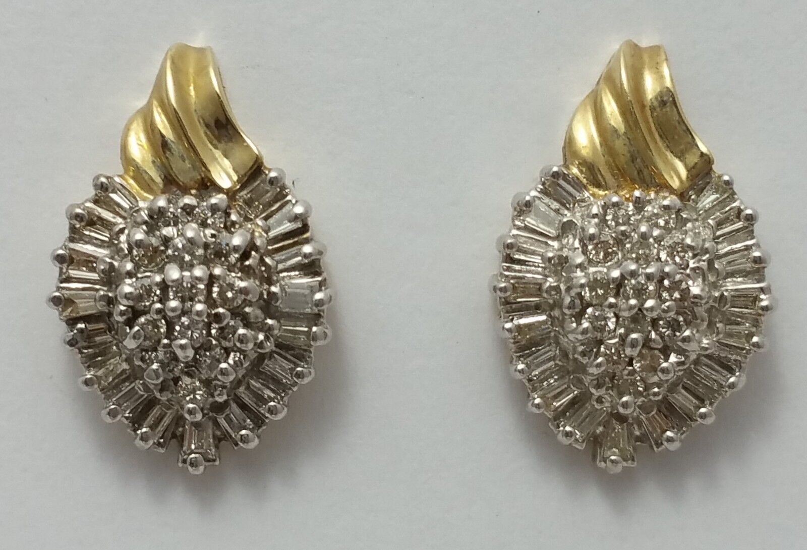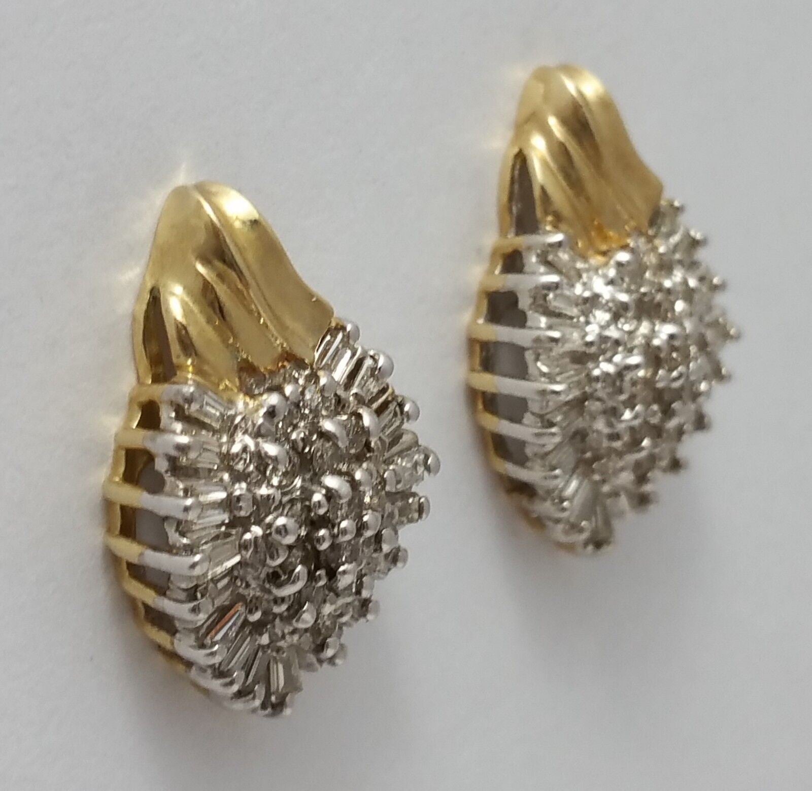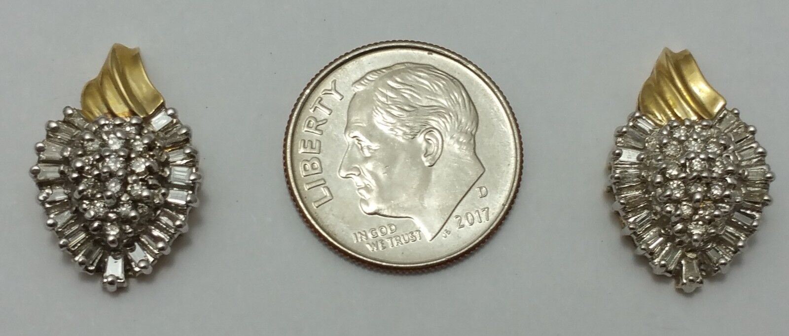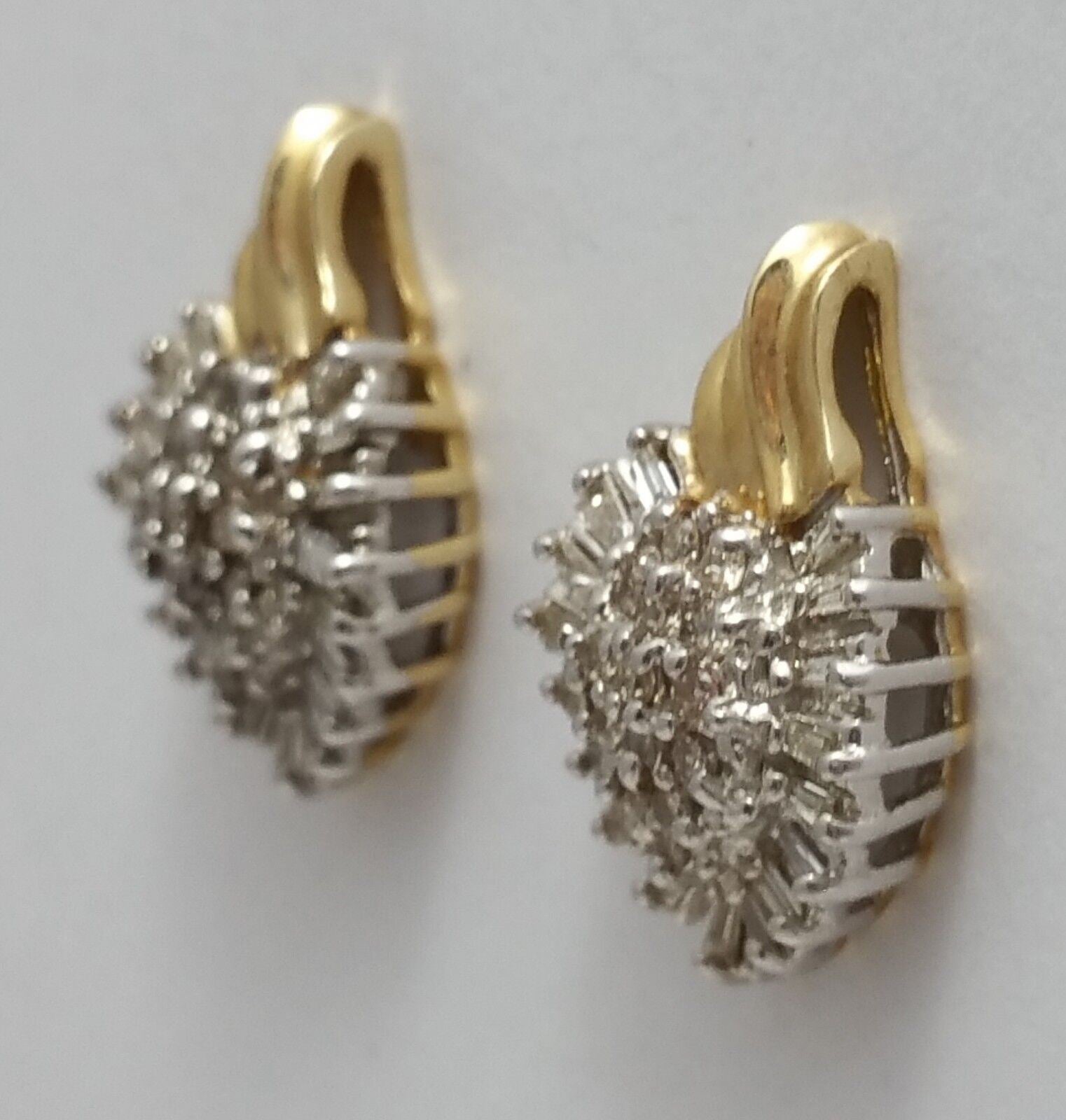 10K Two Tone Gold Cluster of Diamonds Ladies Earrings