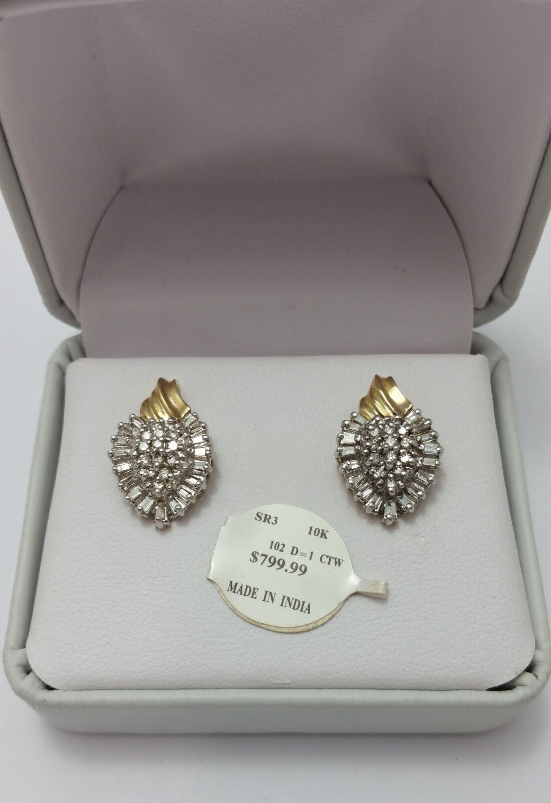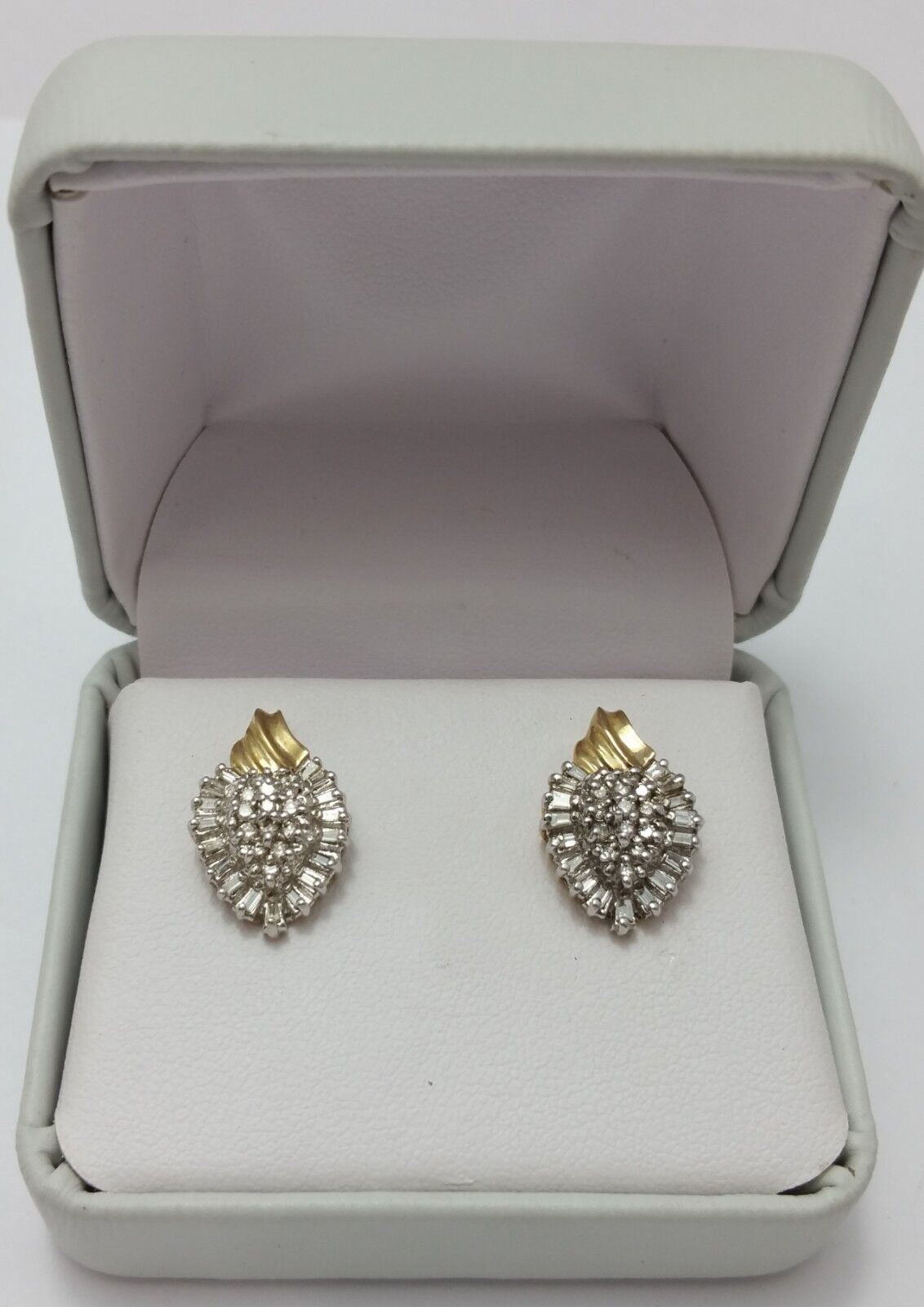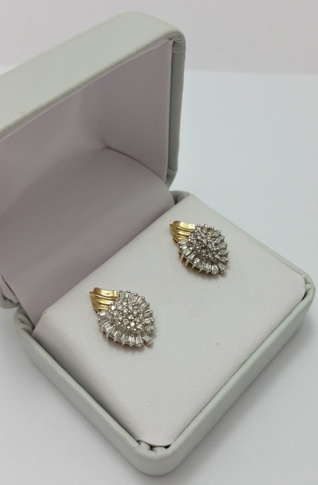 10K Two Tone Gold Cluster of Diamonds Ladies Earrings