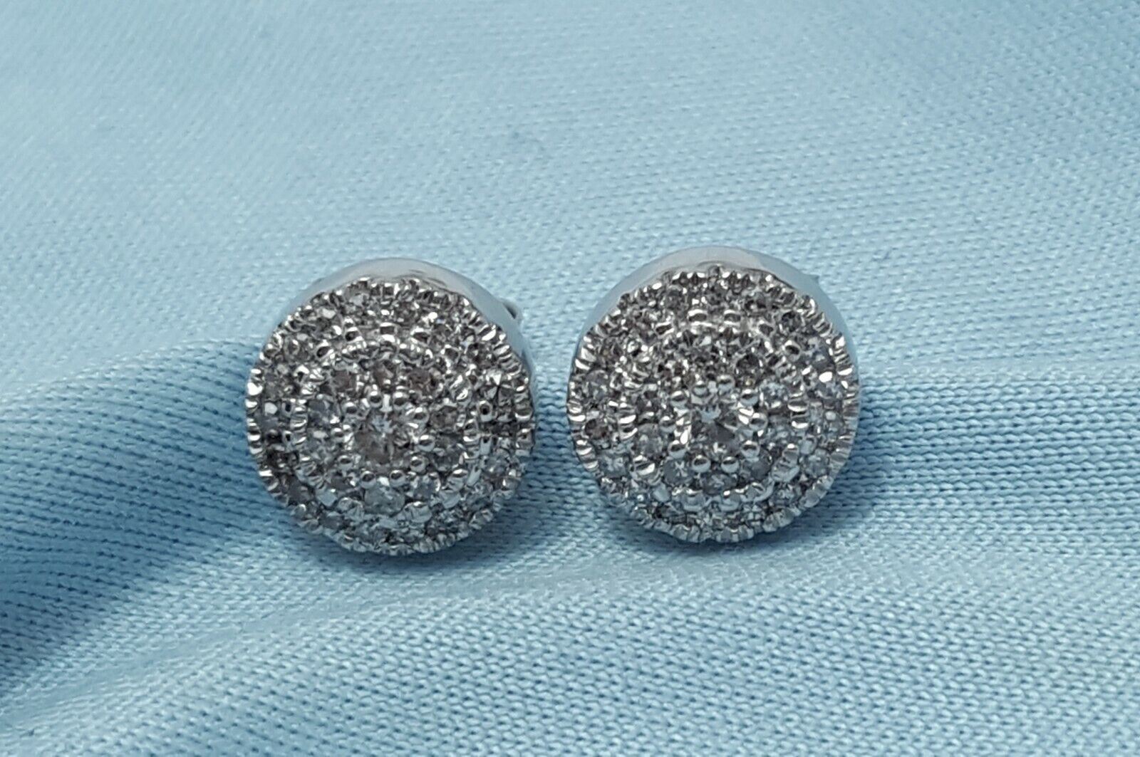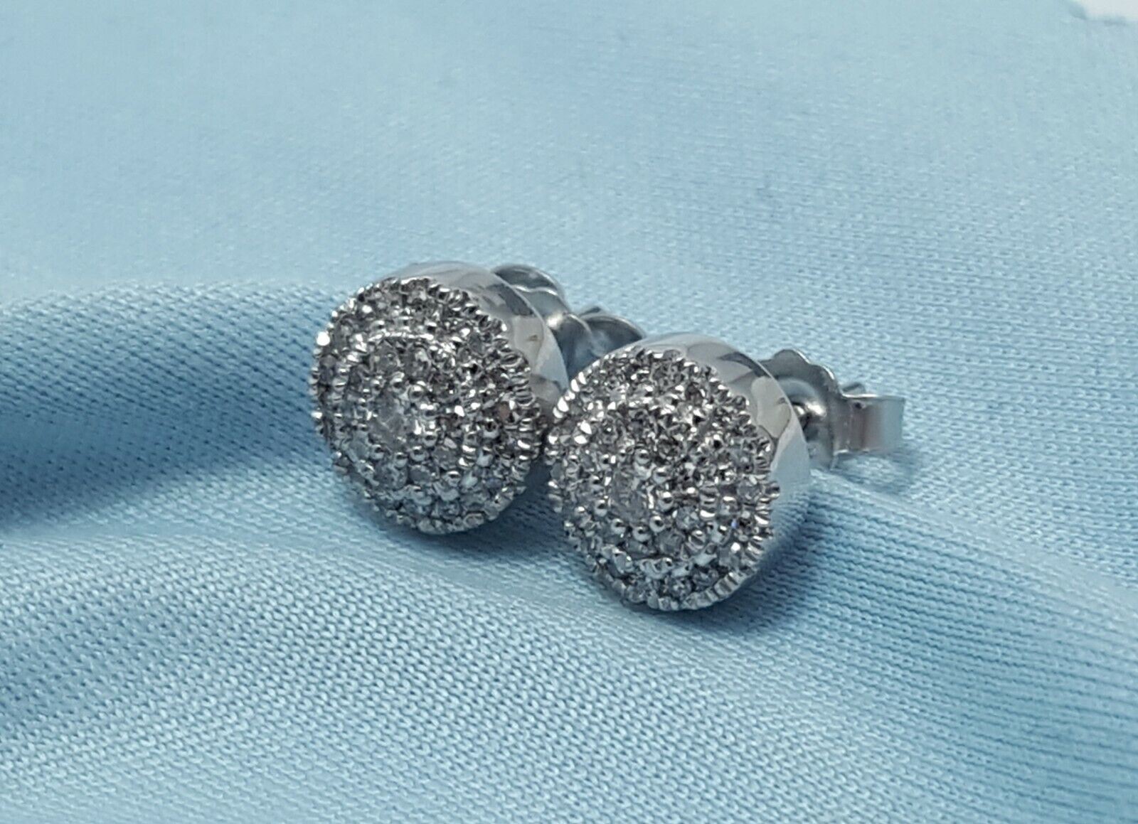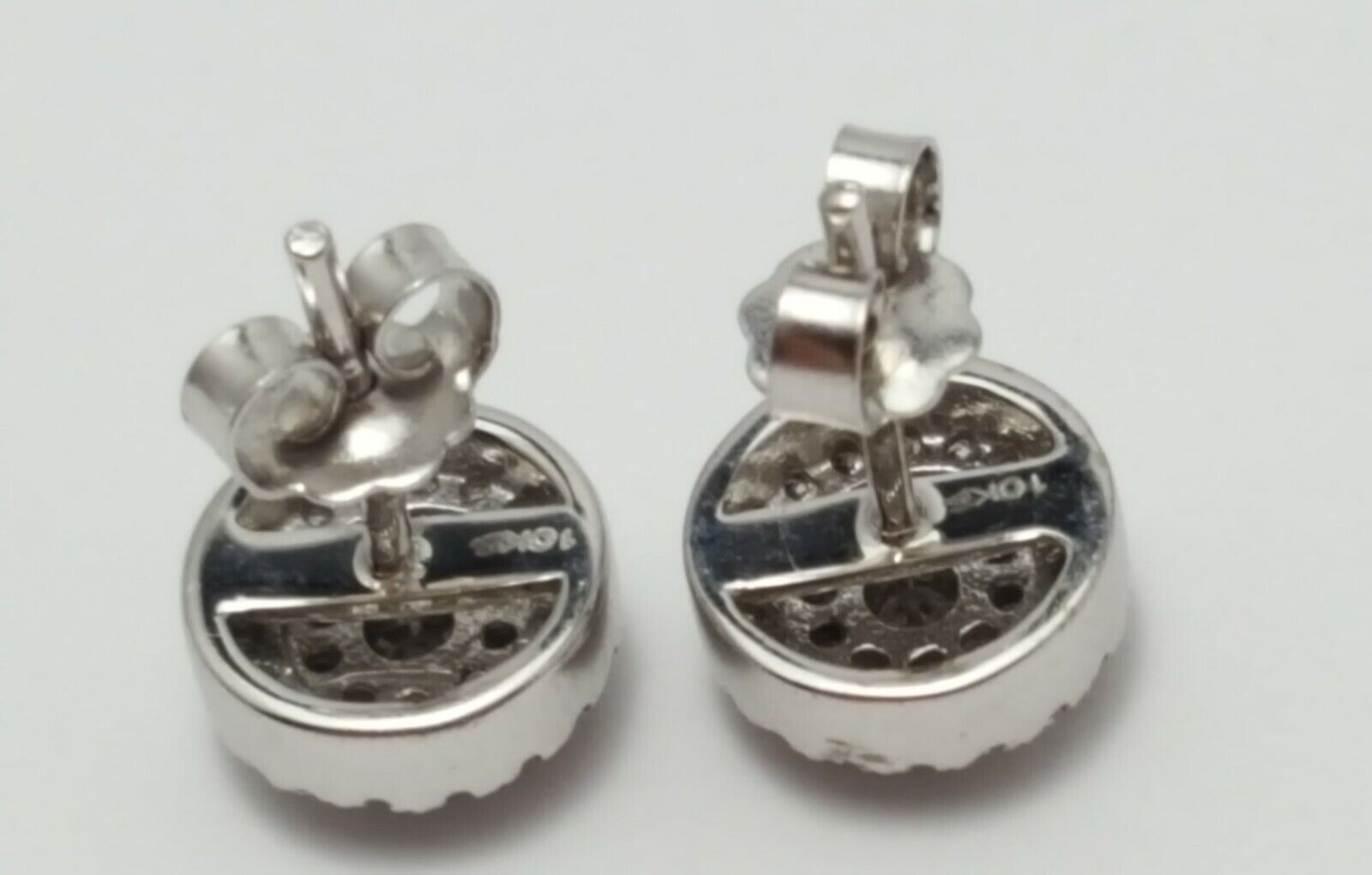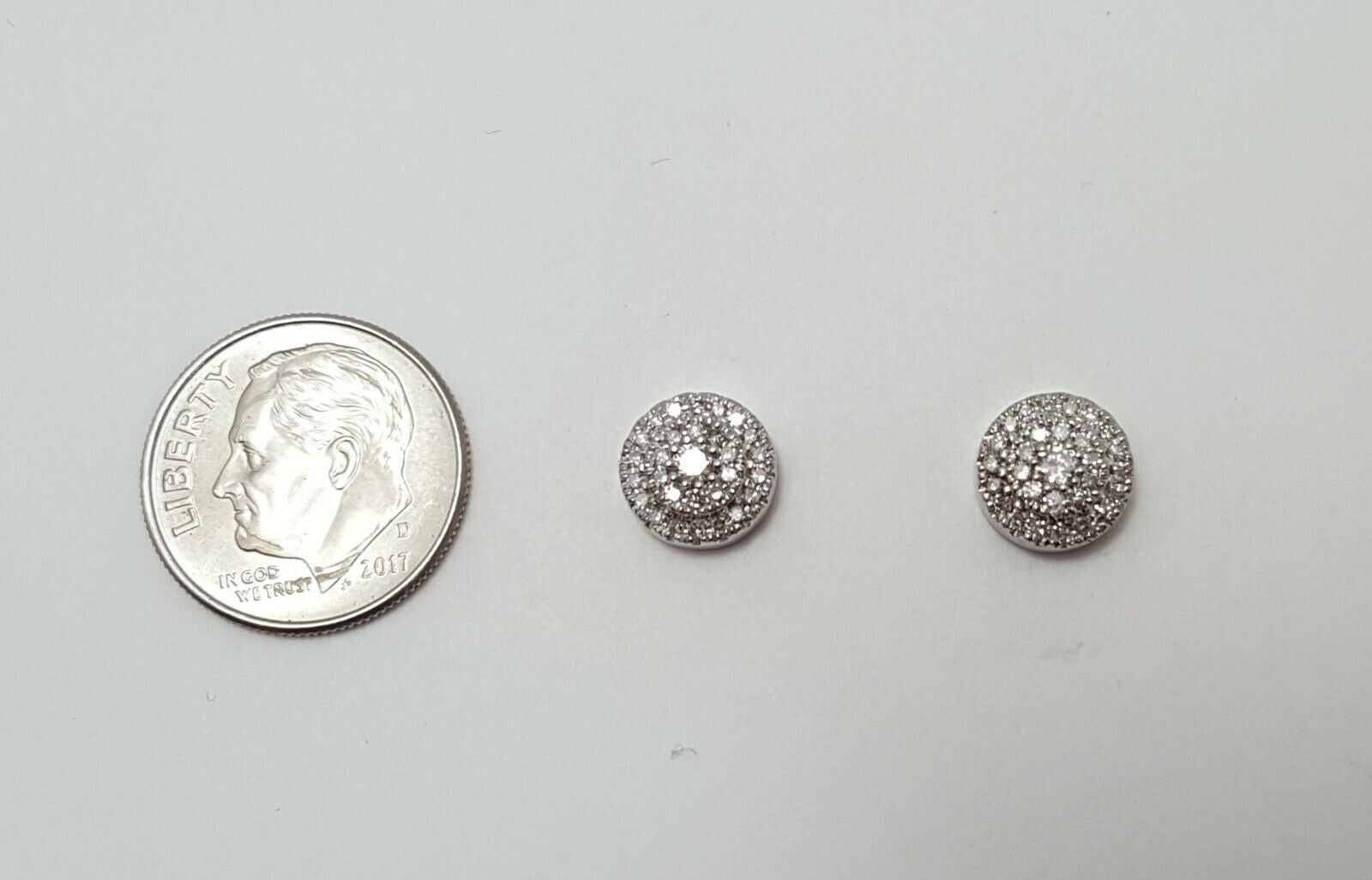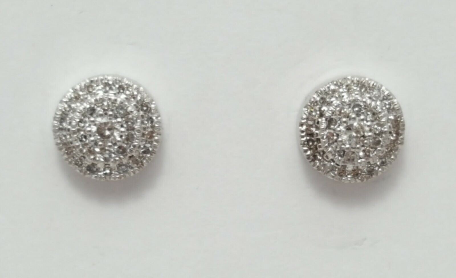 10K White Gold Designer Round Diamond Stud Earrings & Backings