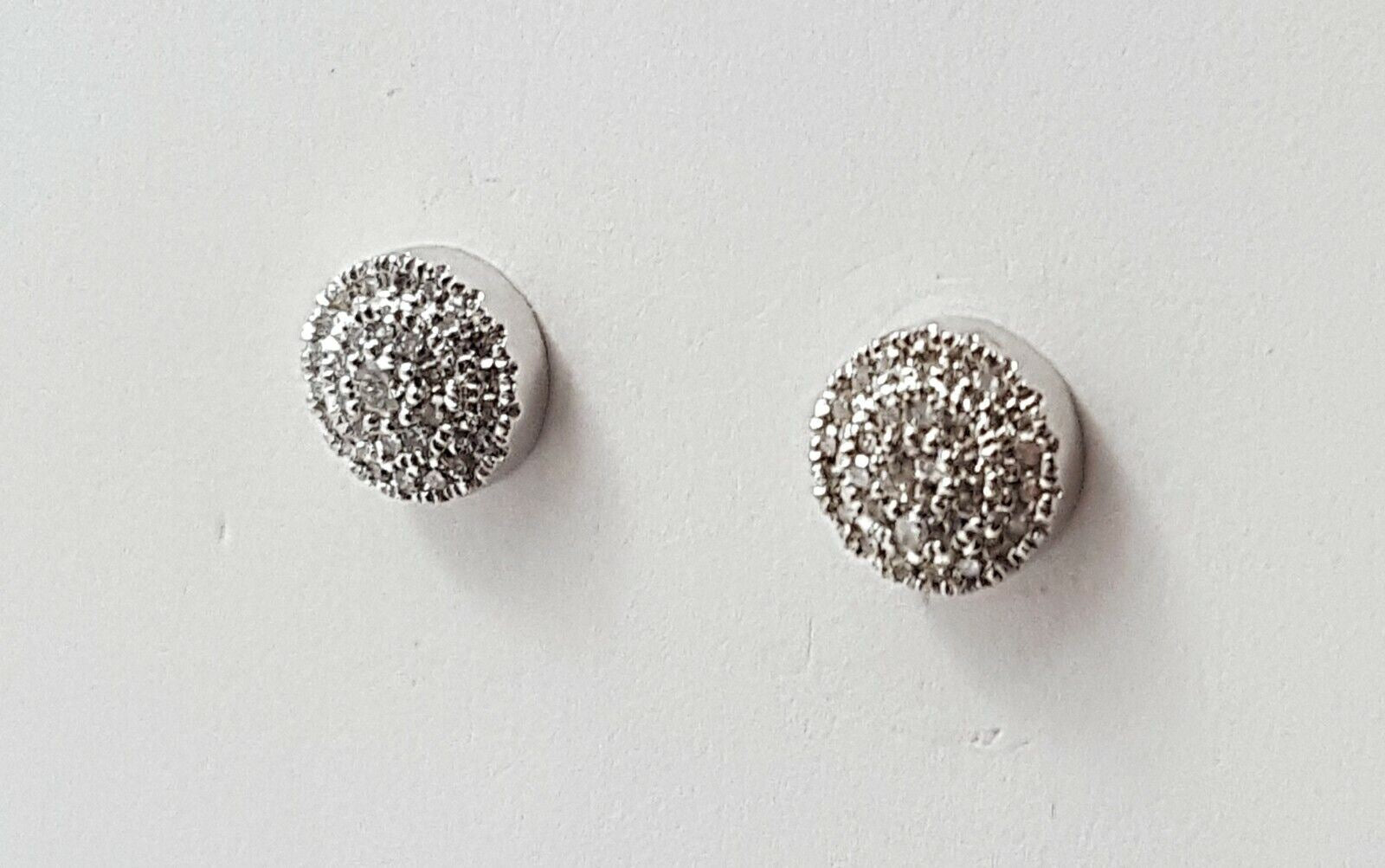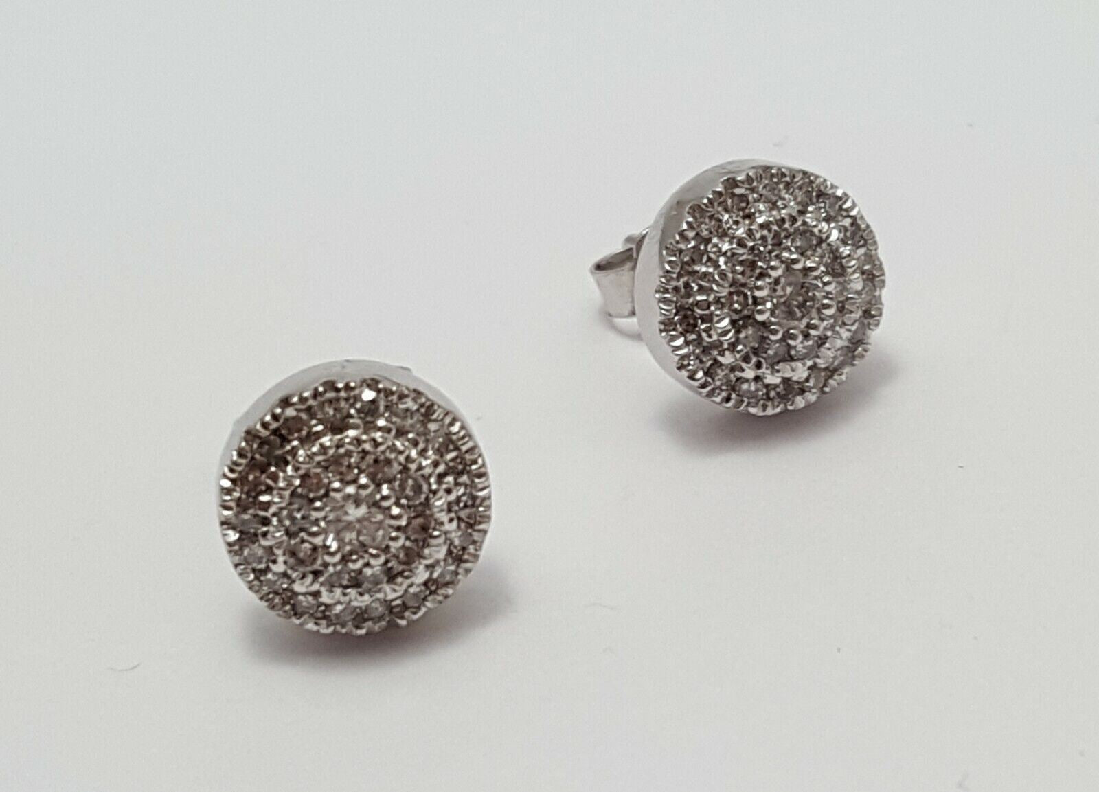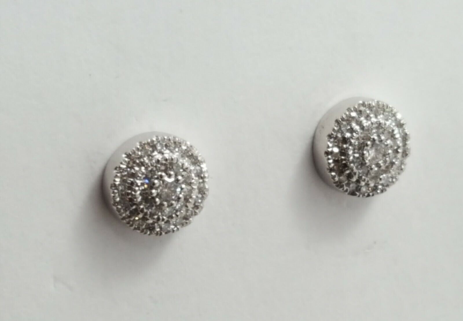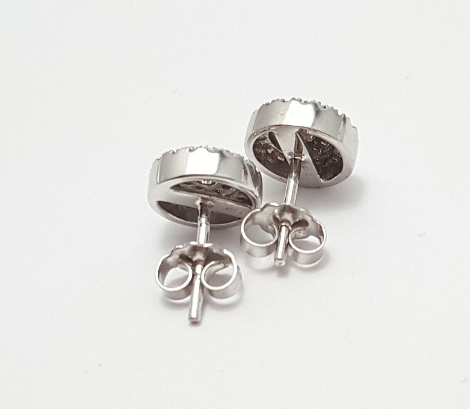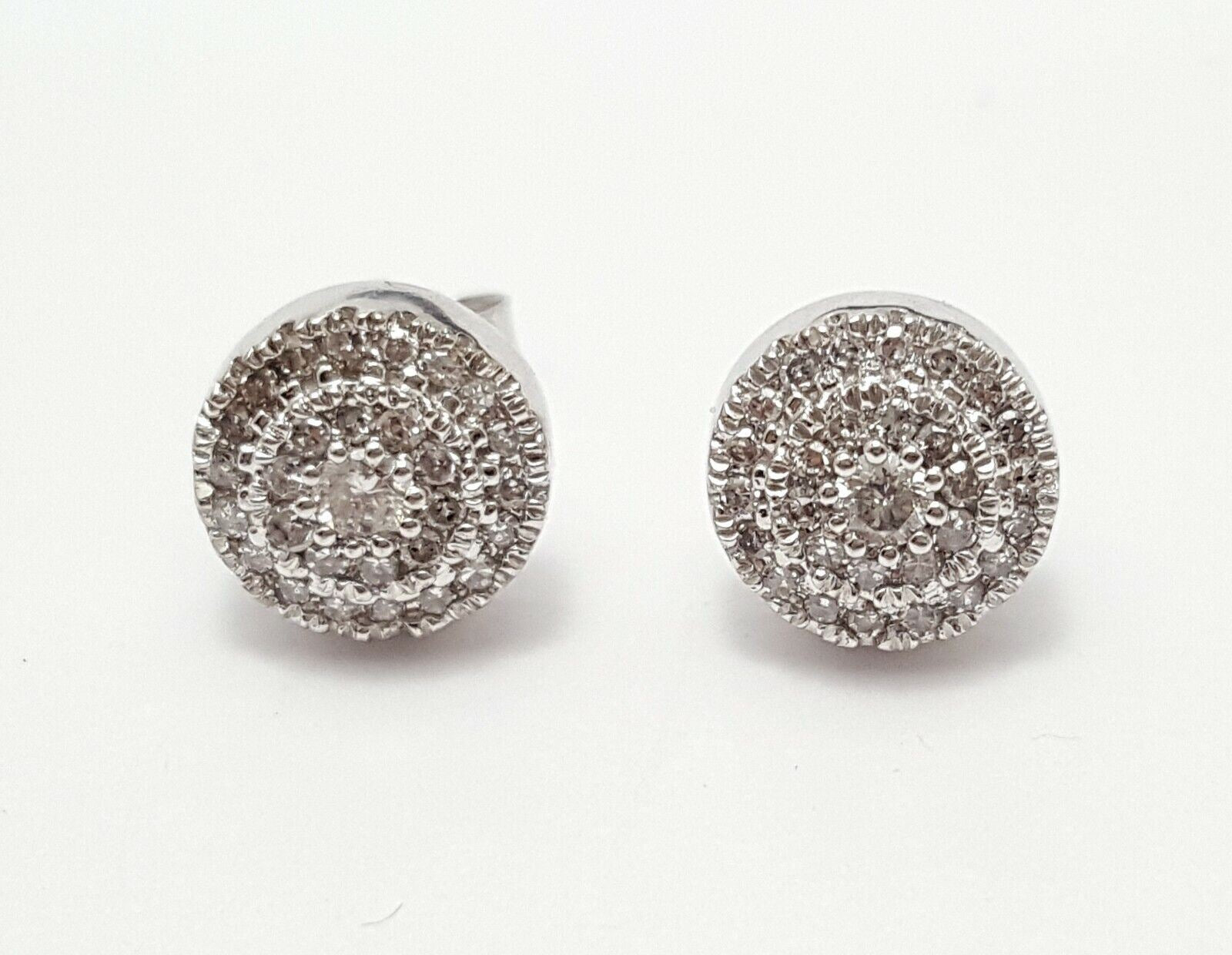 10K White Gold Designer Round Diamond Stud Earrings & Backings