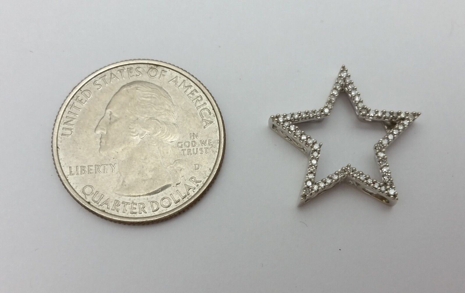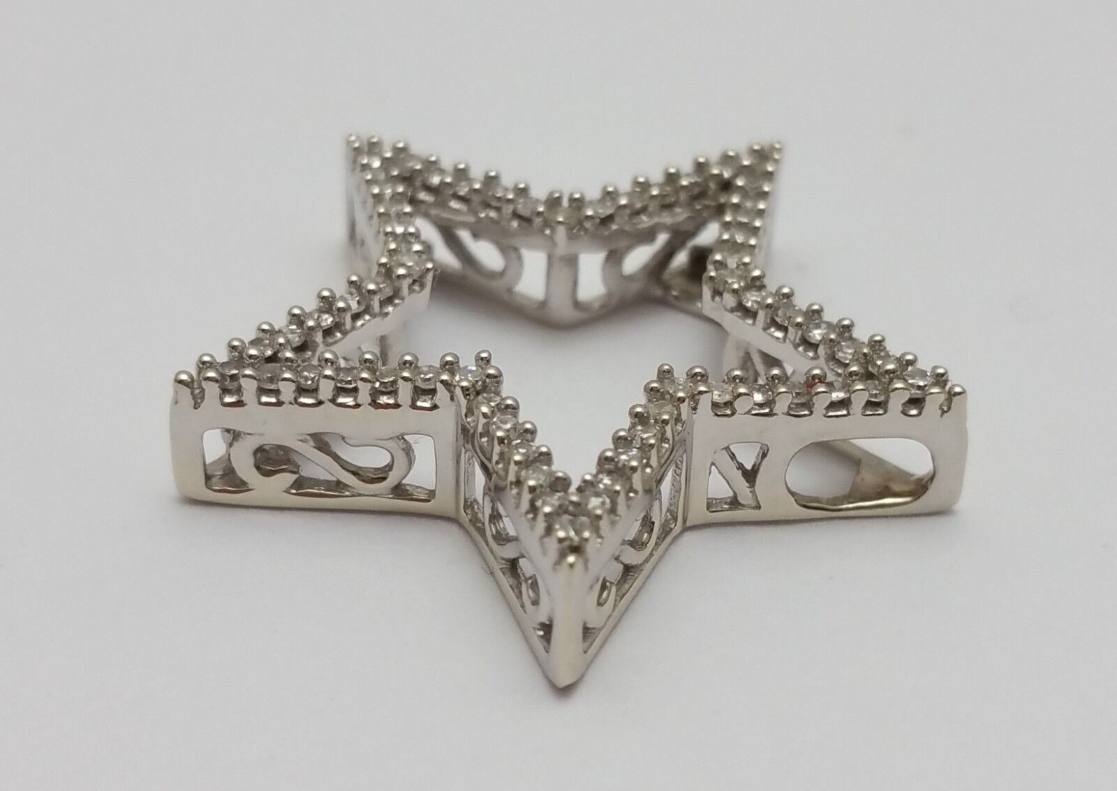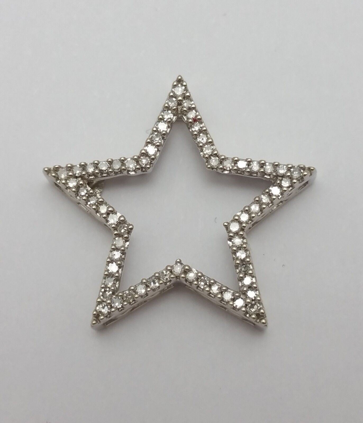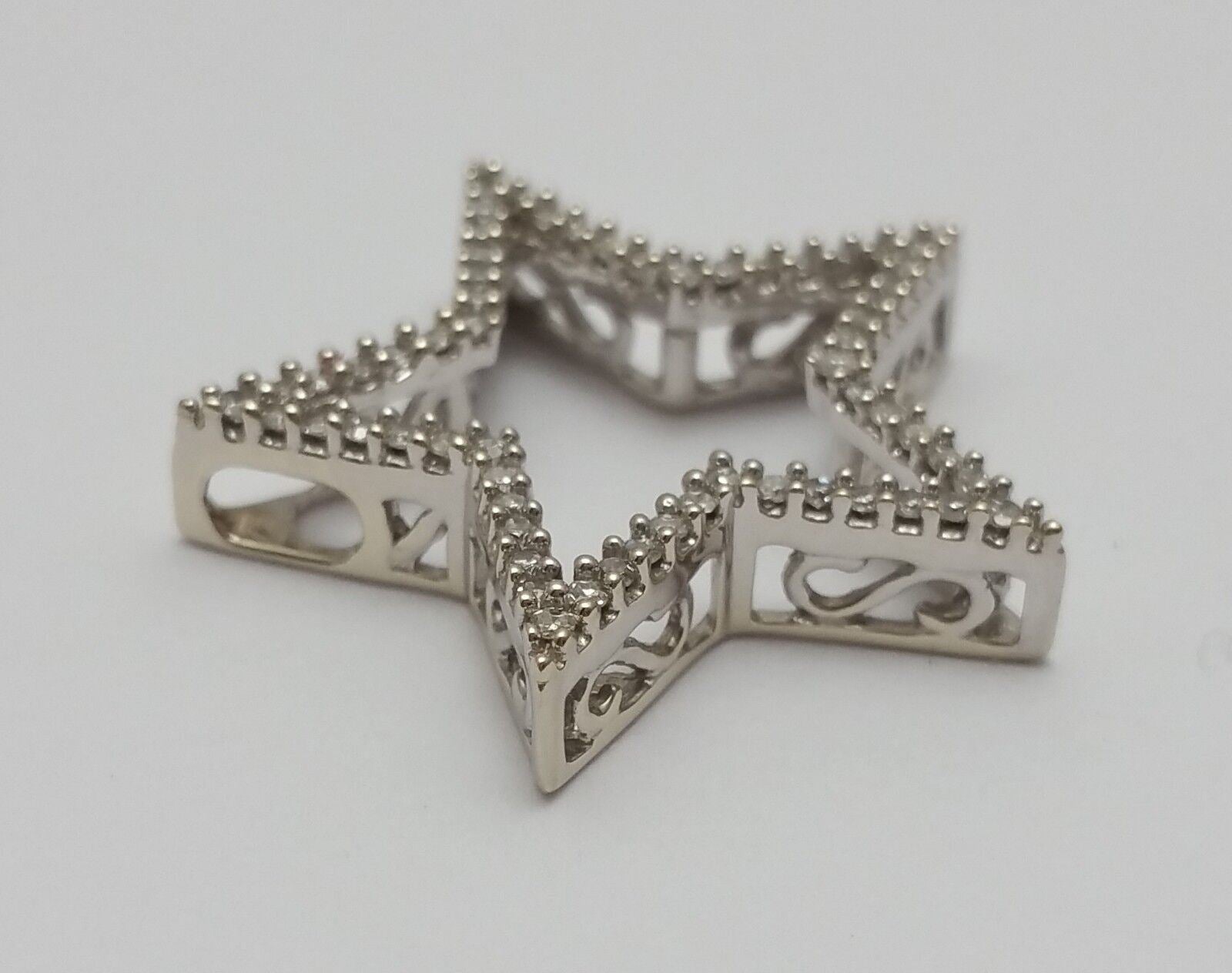 10K Solid White Gold Open Star Shaped Diamond Pendant