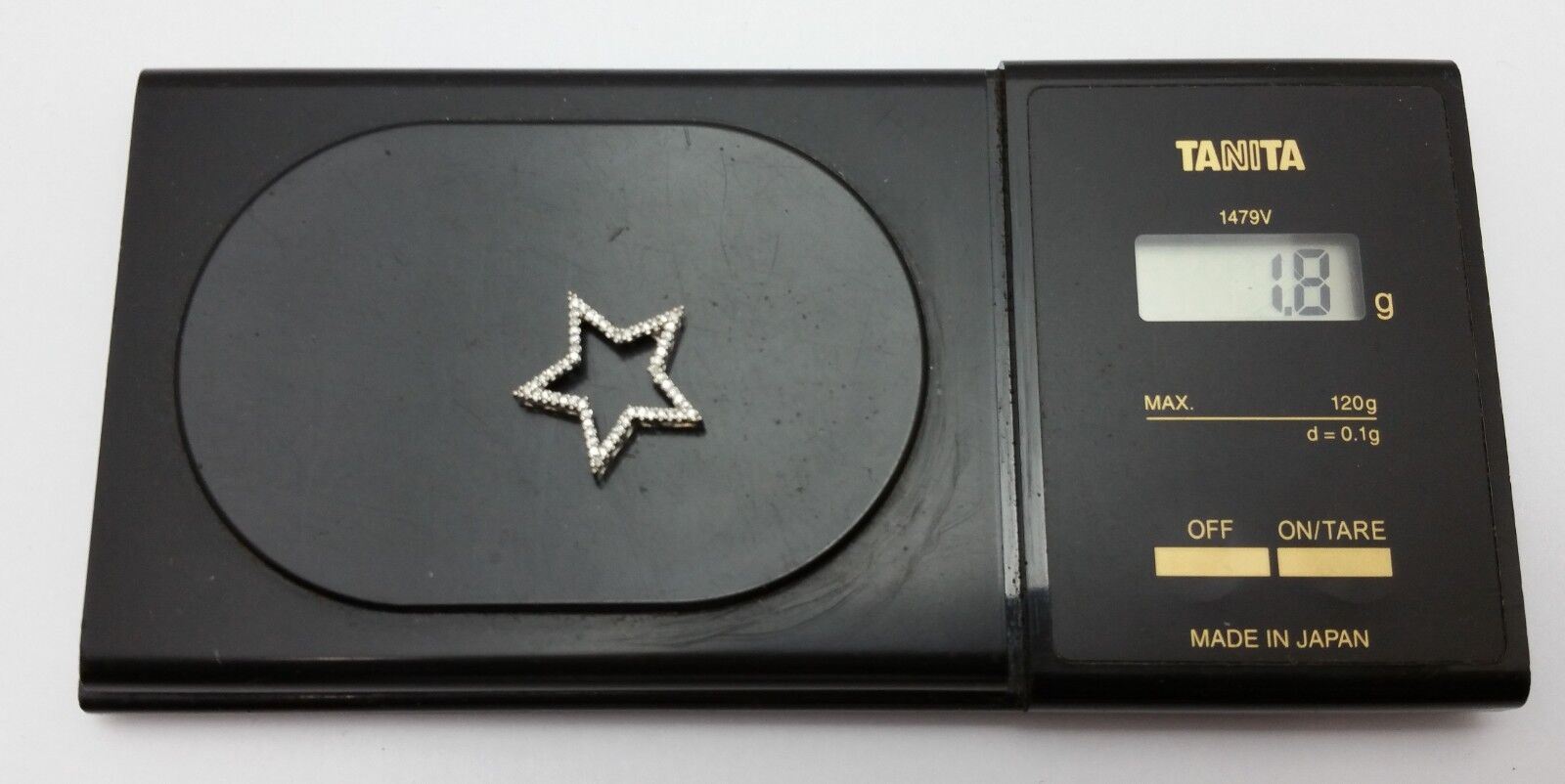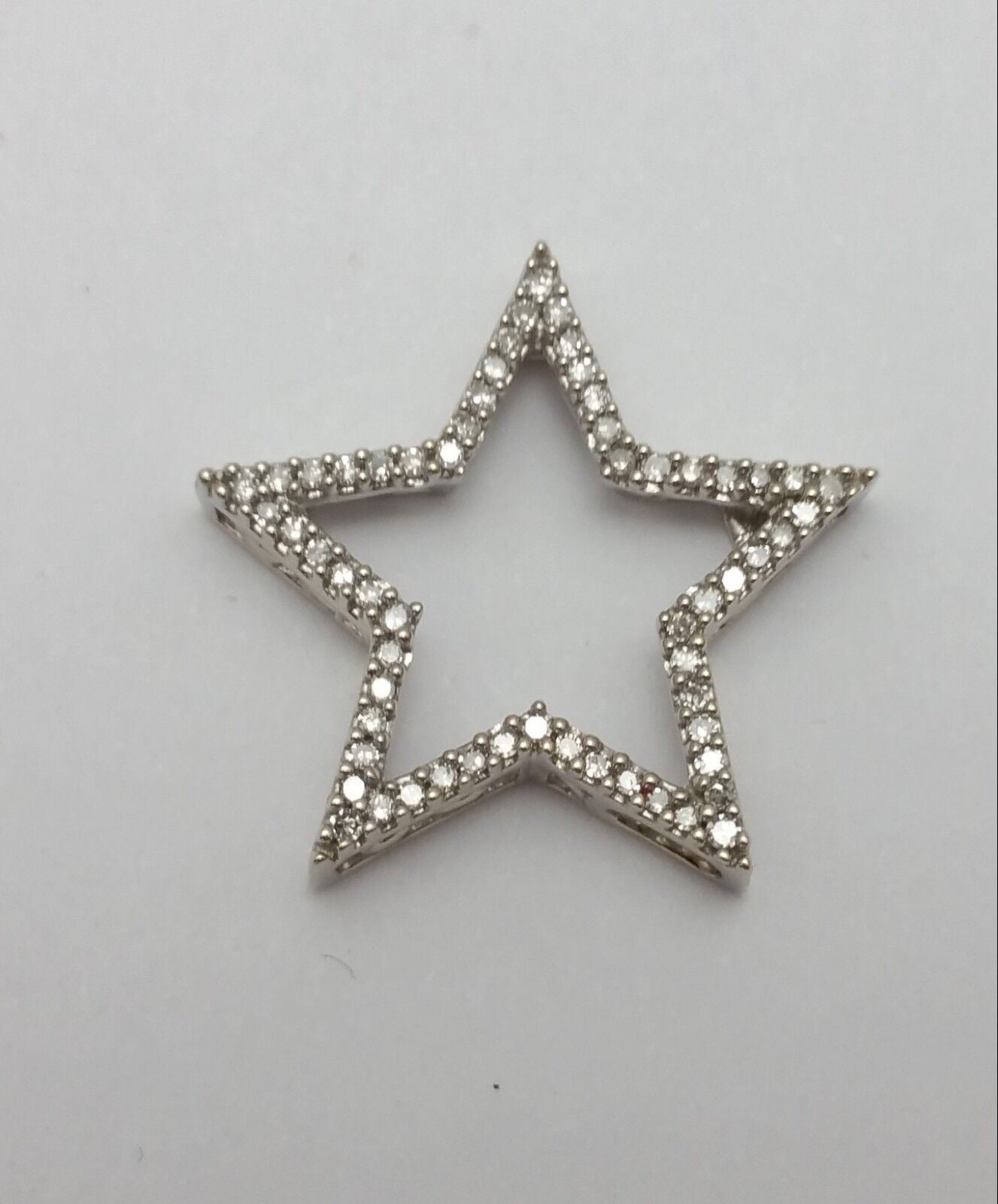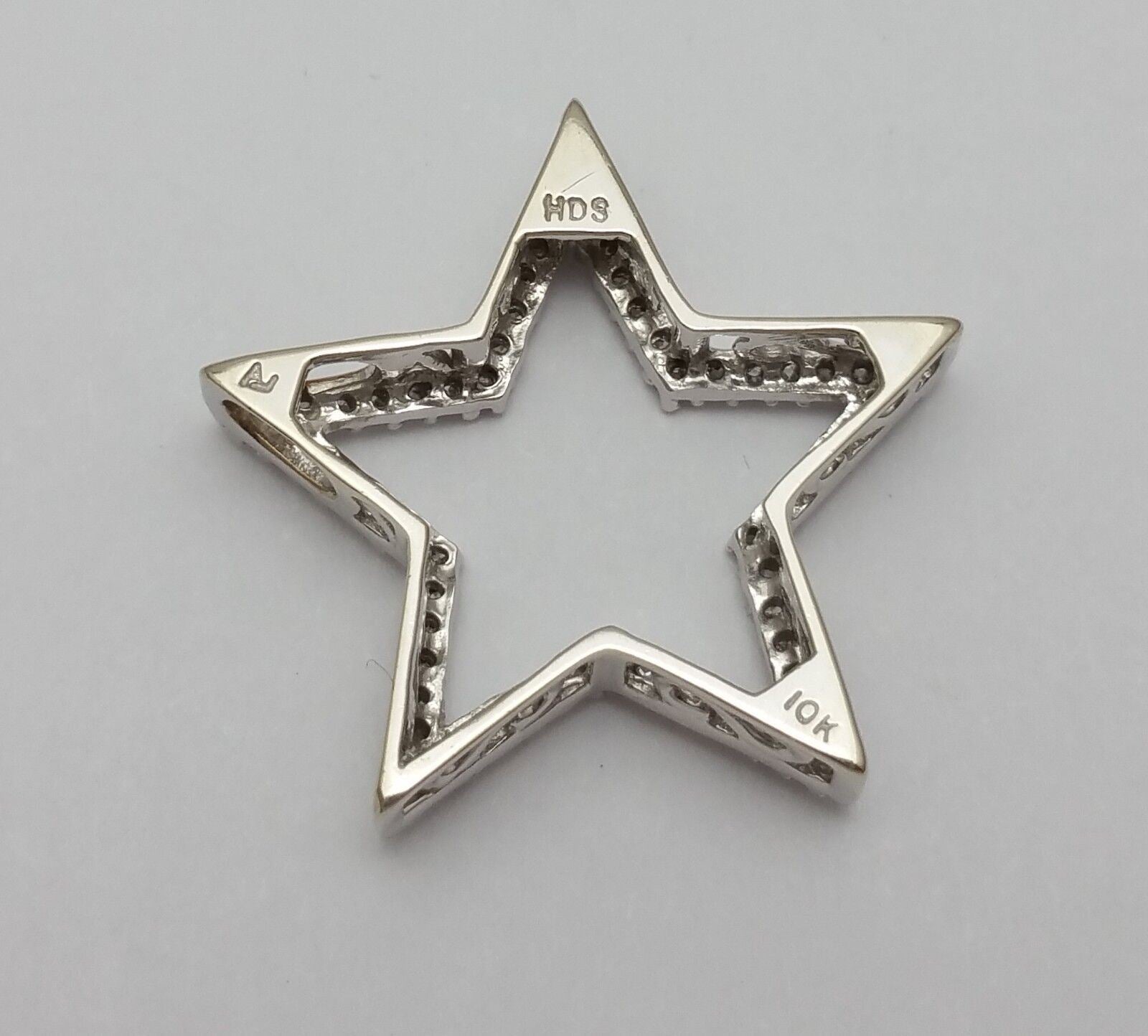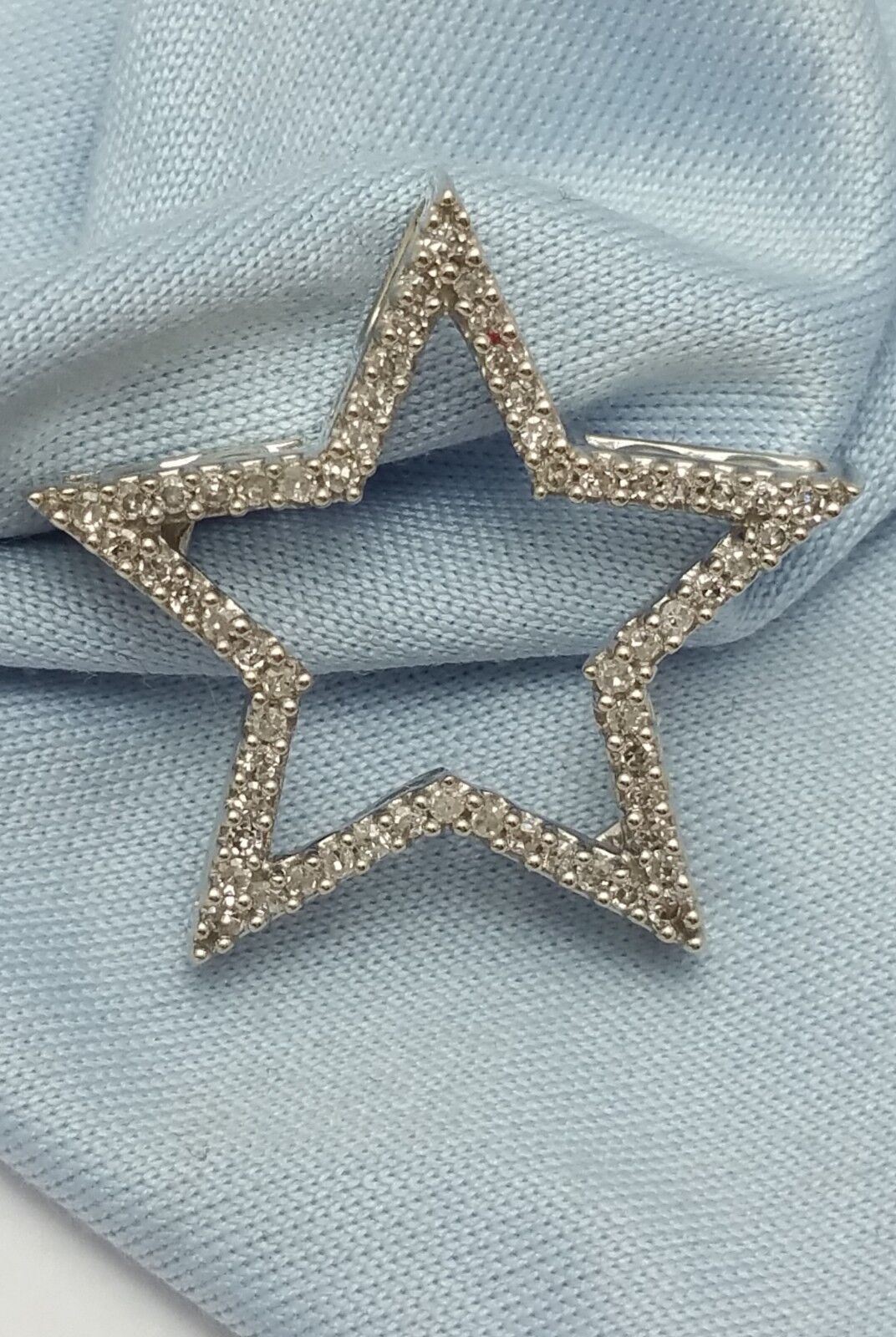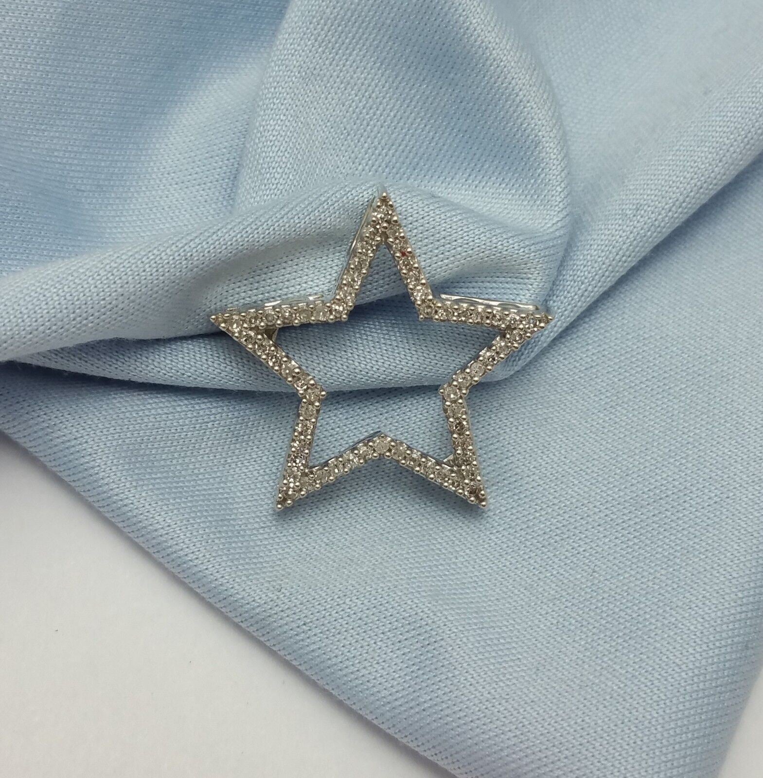 10K Solid White Gold Open Star Shaped Diamond Pendant