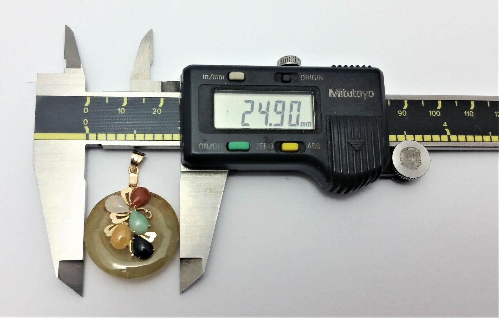 14K Solid Yellow Gold Round Multi Colored Jade Charm Pendant