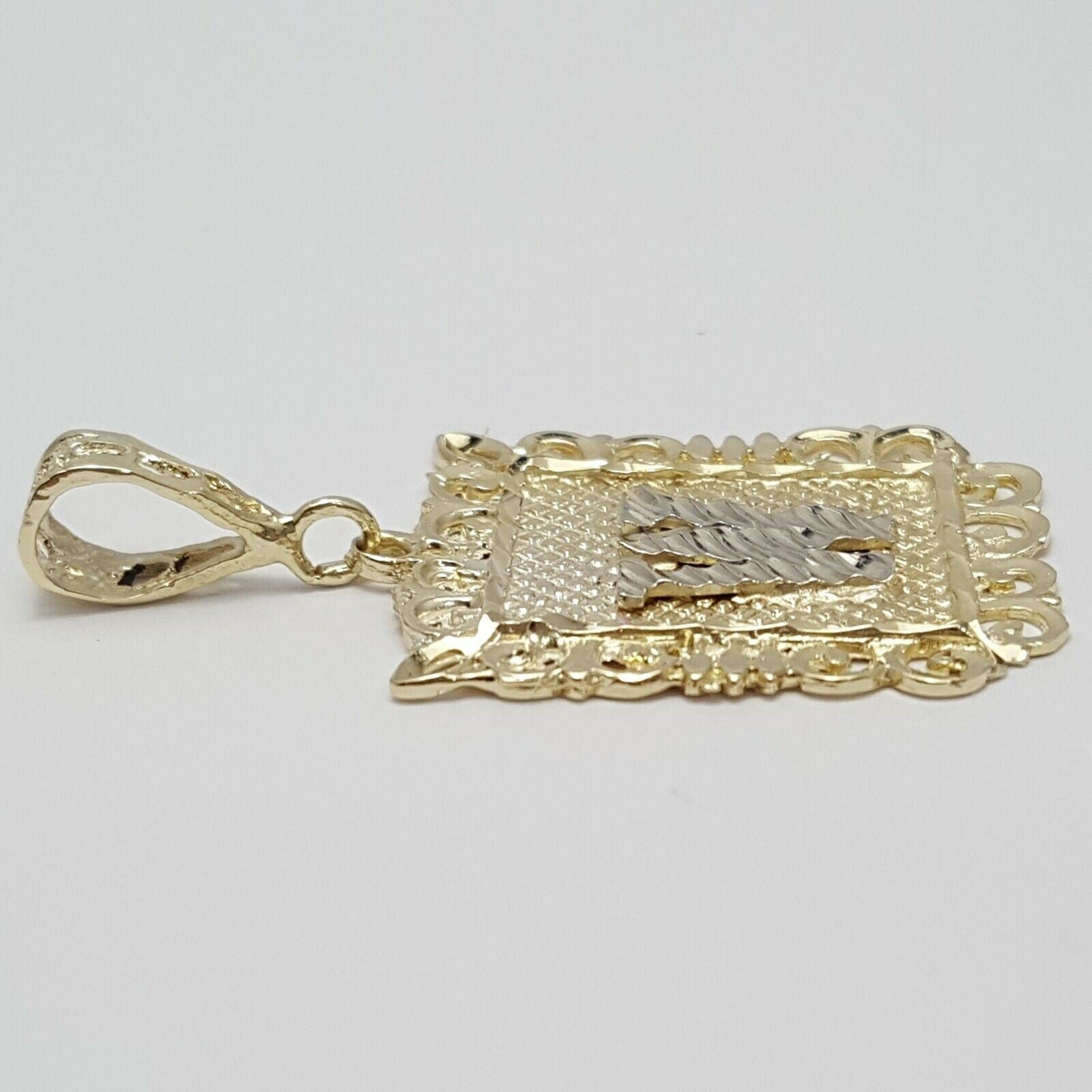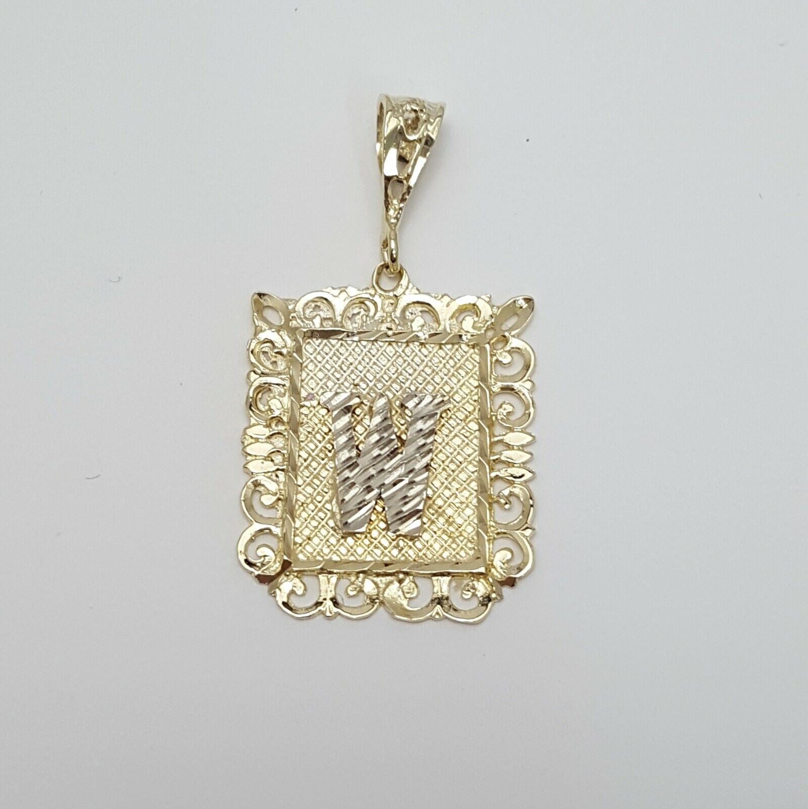 14K Solid Two Tone Initial Letter " W " Charm Pendant