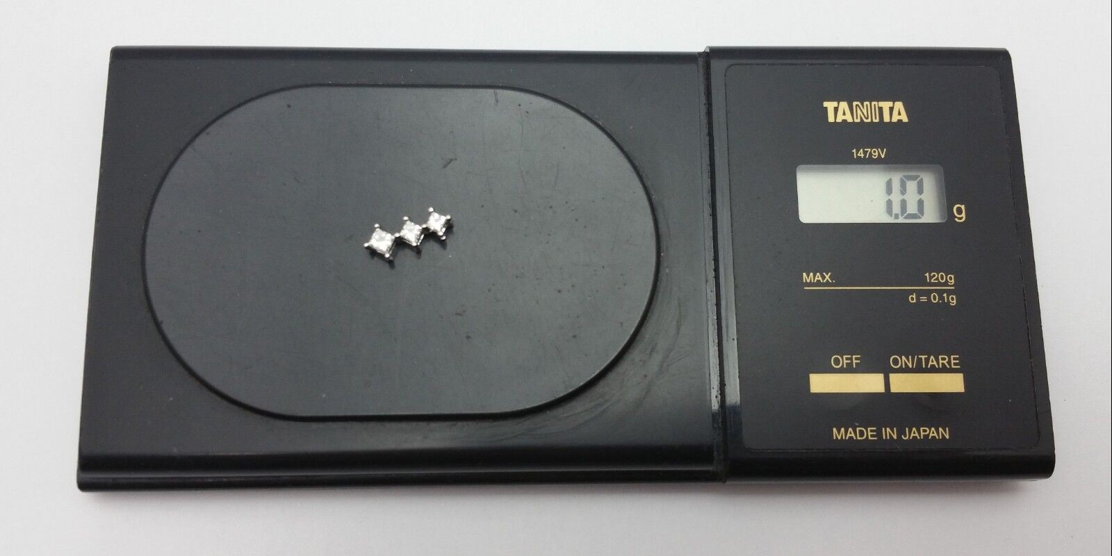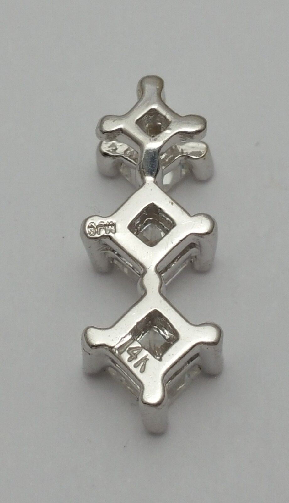 14K Solid White Gold Diamond 3 Stone Drop Charm Pendant