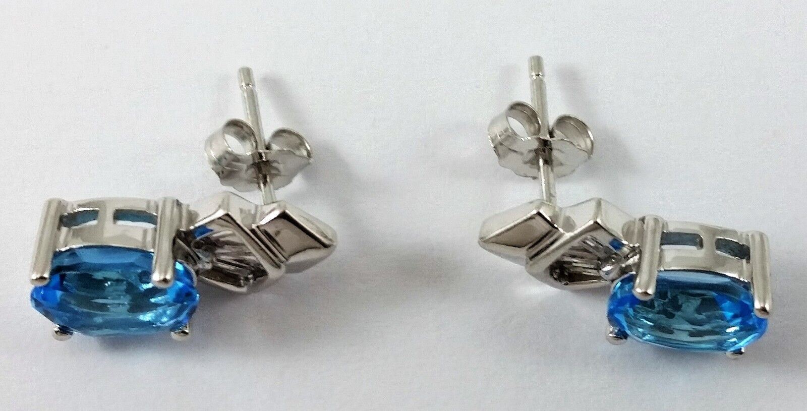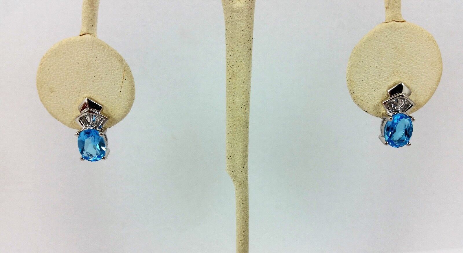 14K White Gold Designer Blue Topaz and Diamond Earrings