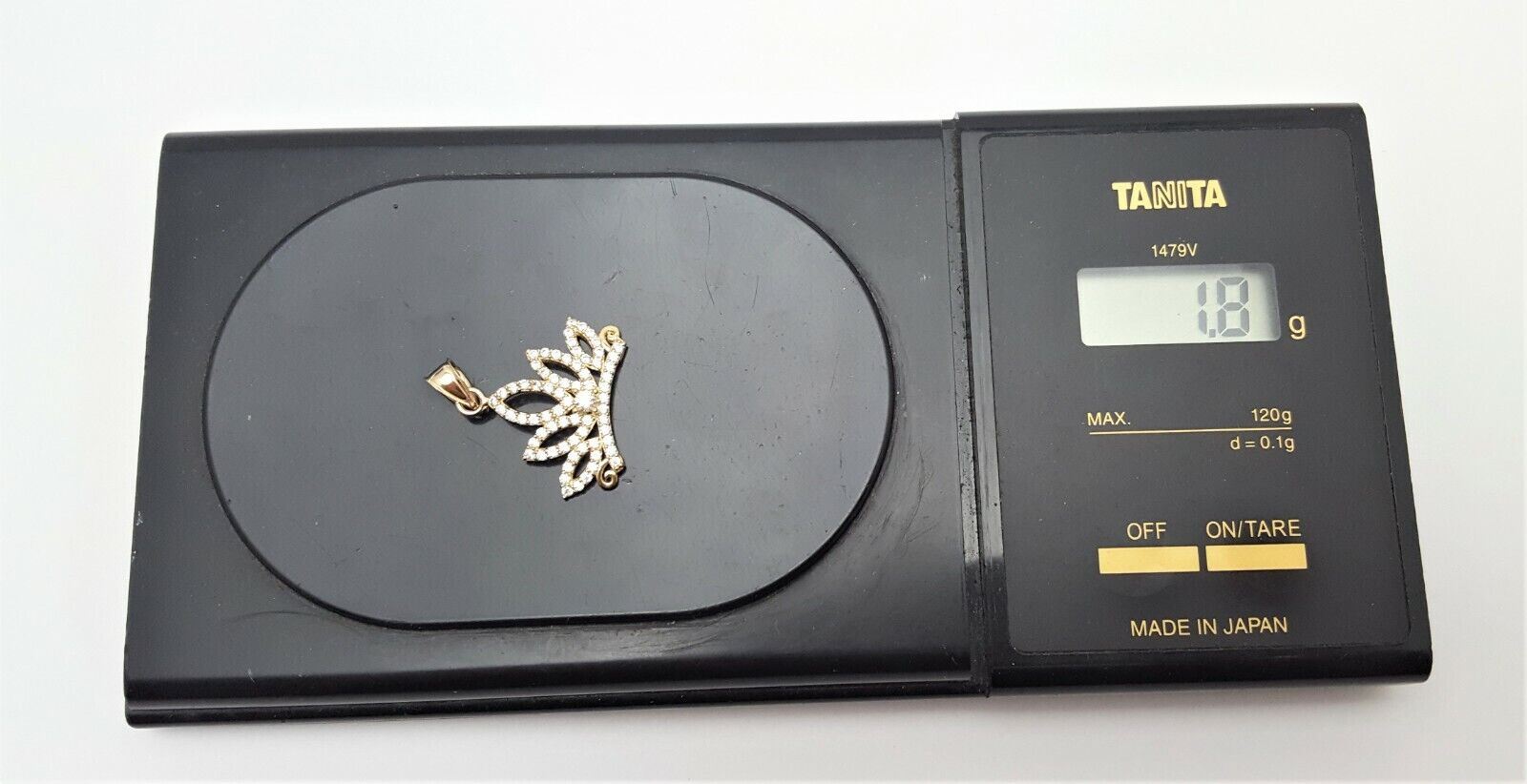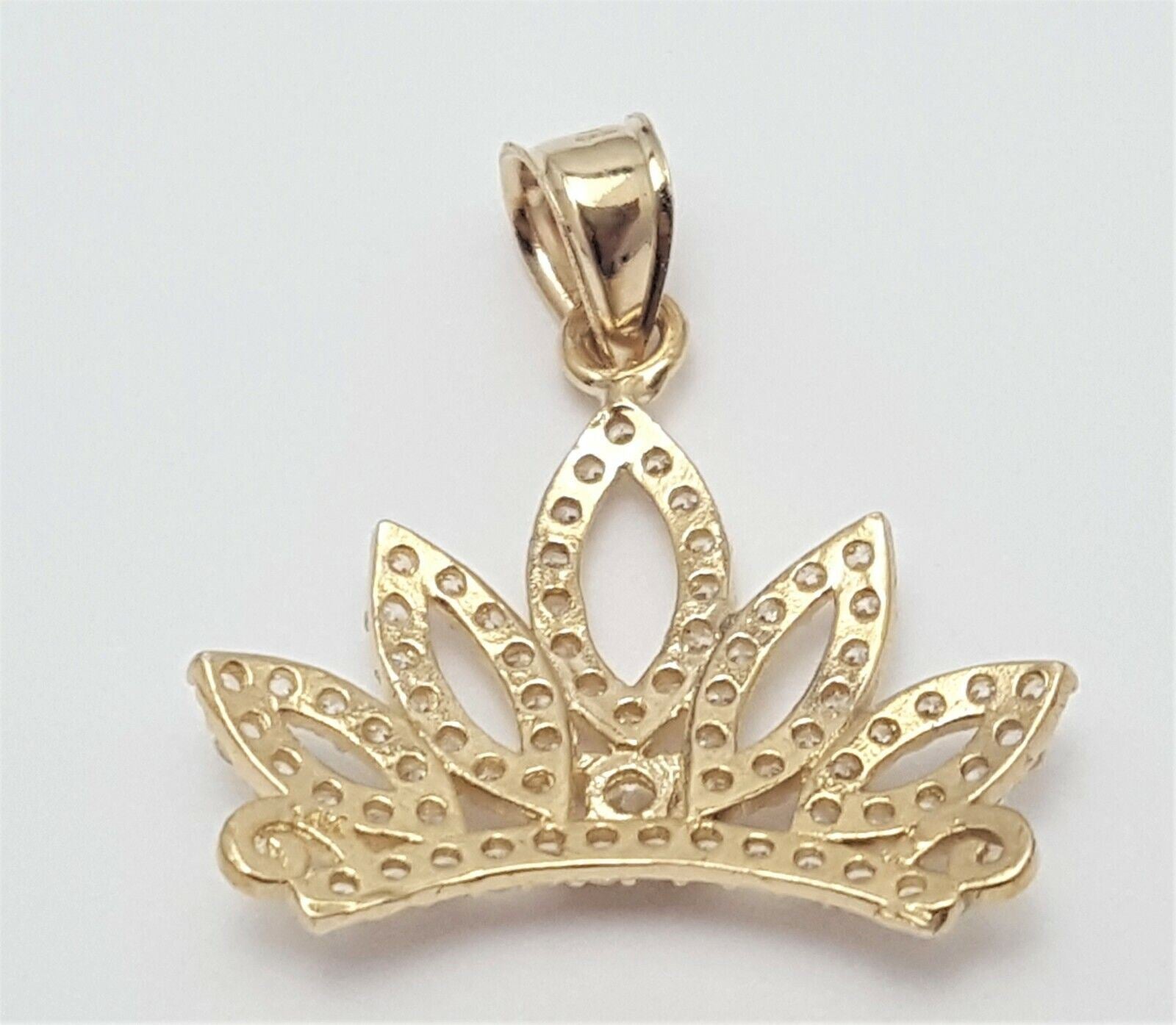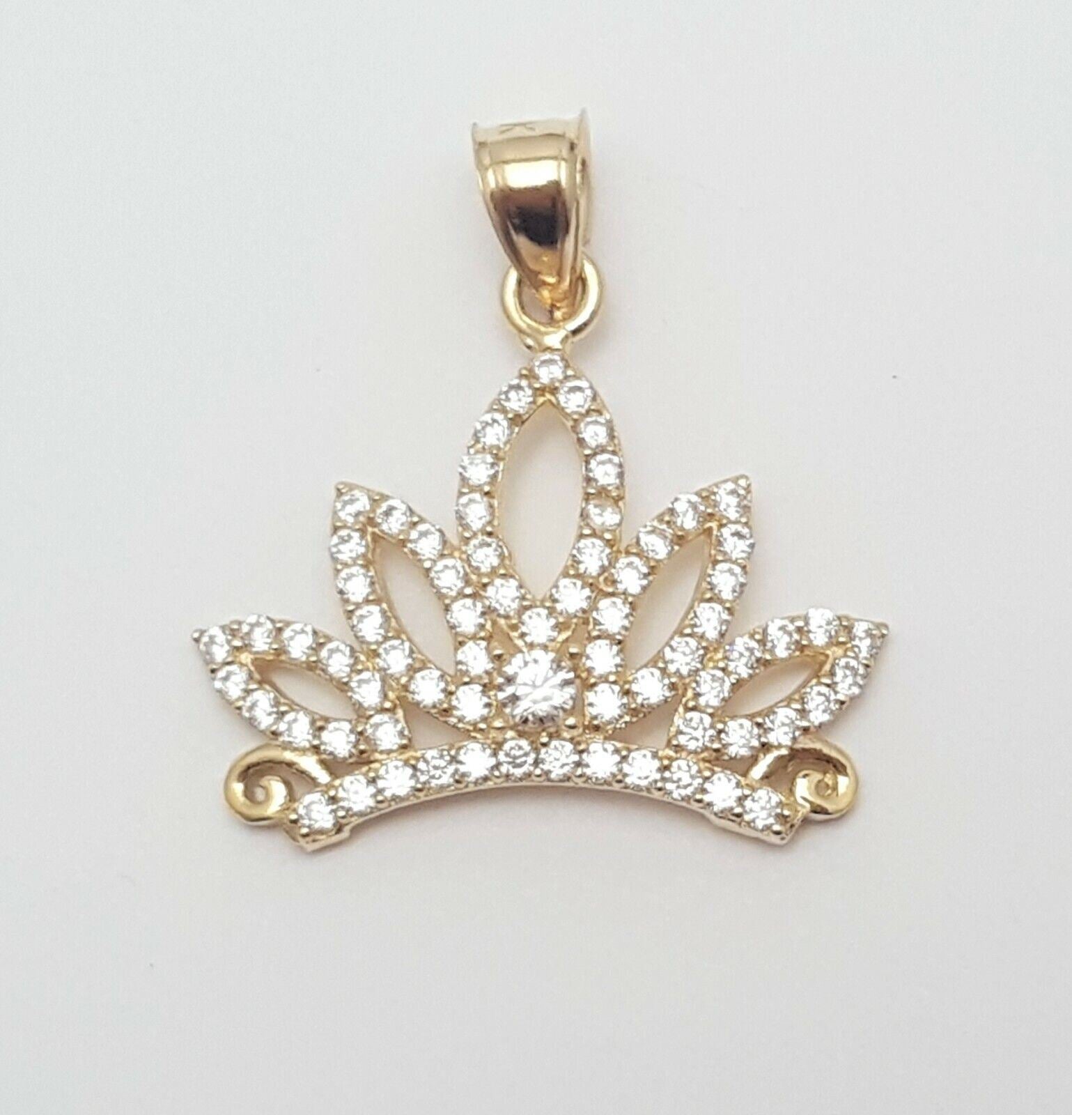 14K Solid Yellow Gold Cubic Zirconia Tiara Crown Charm Pendant