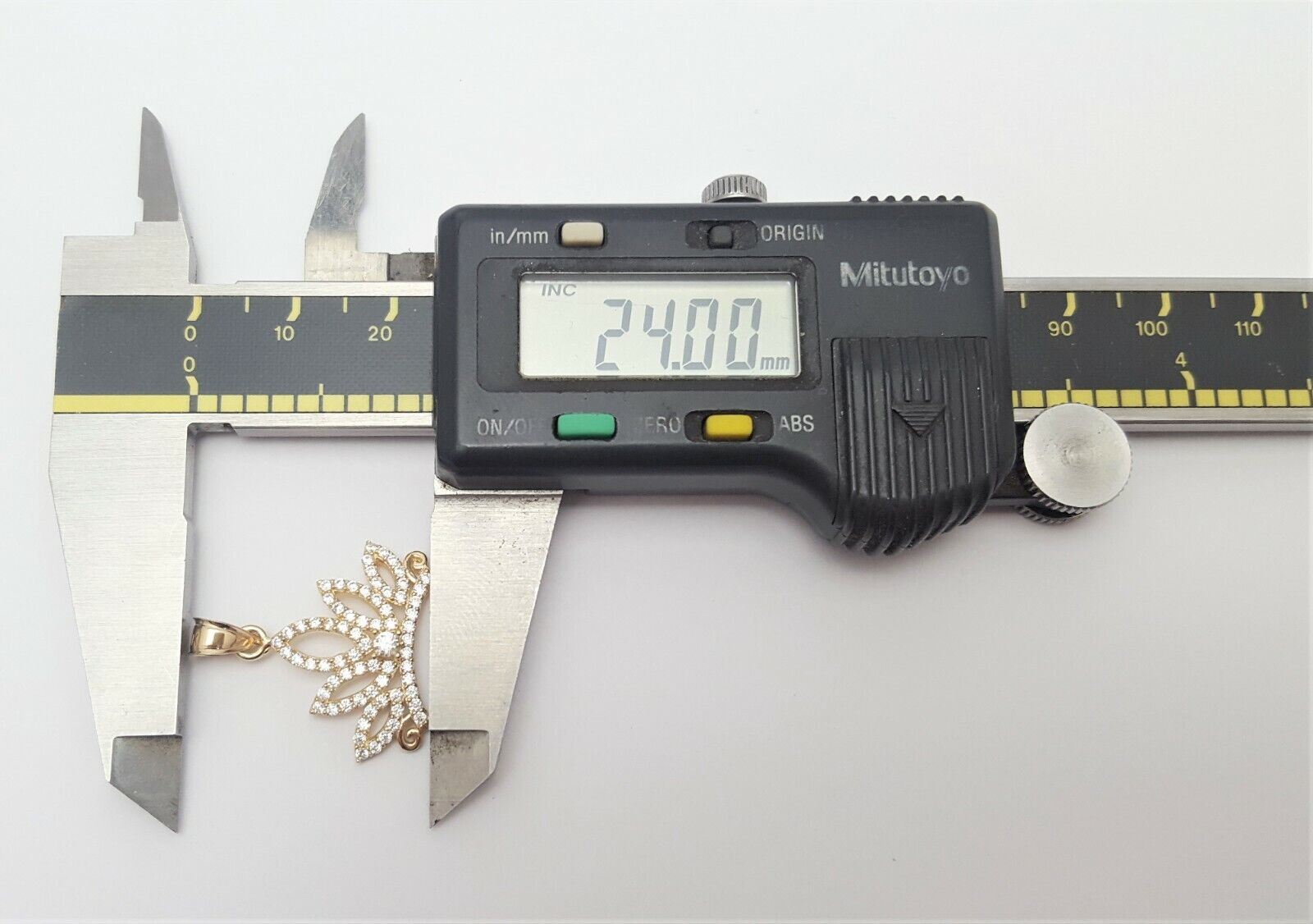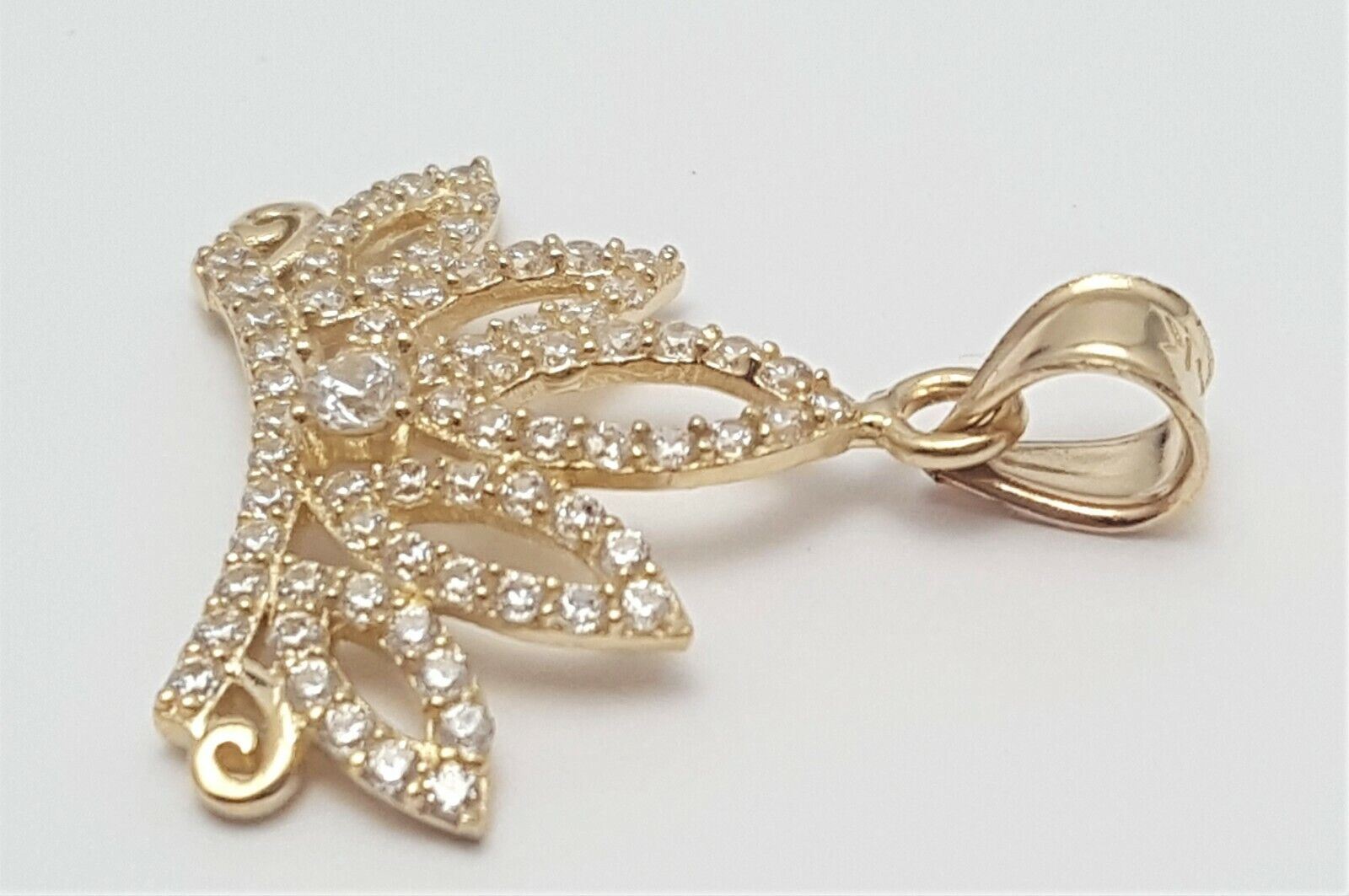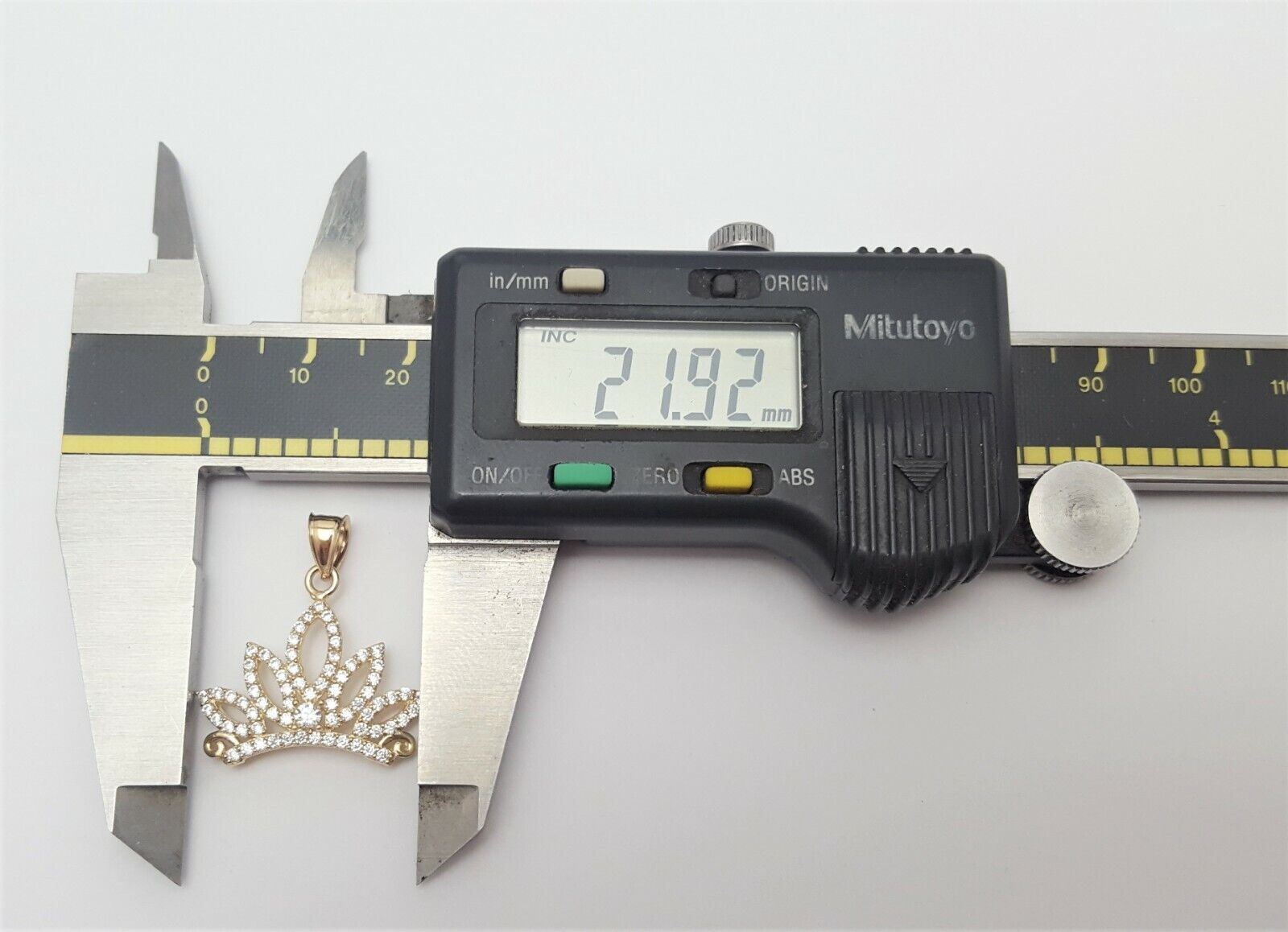 14K Solid Yellow Gold Cubic Zirconia Tiara Crown Charm Pendant