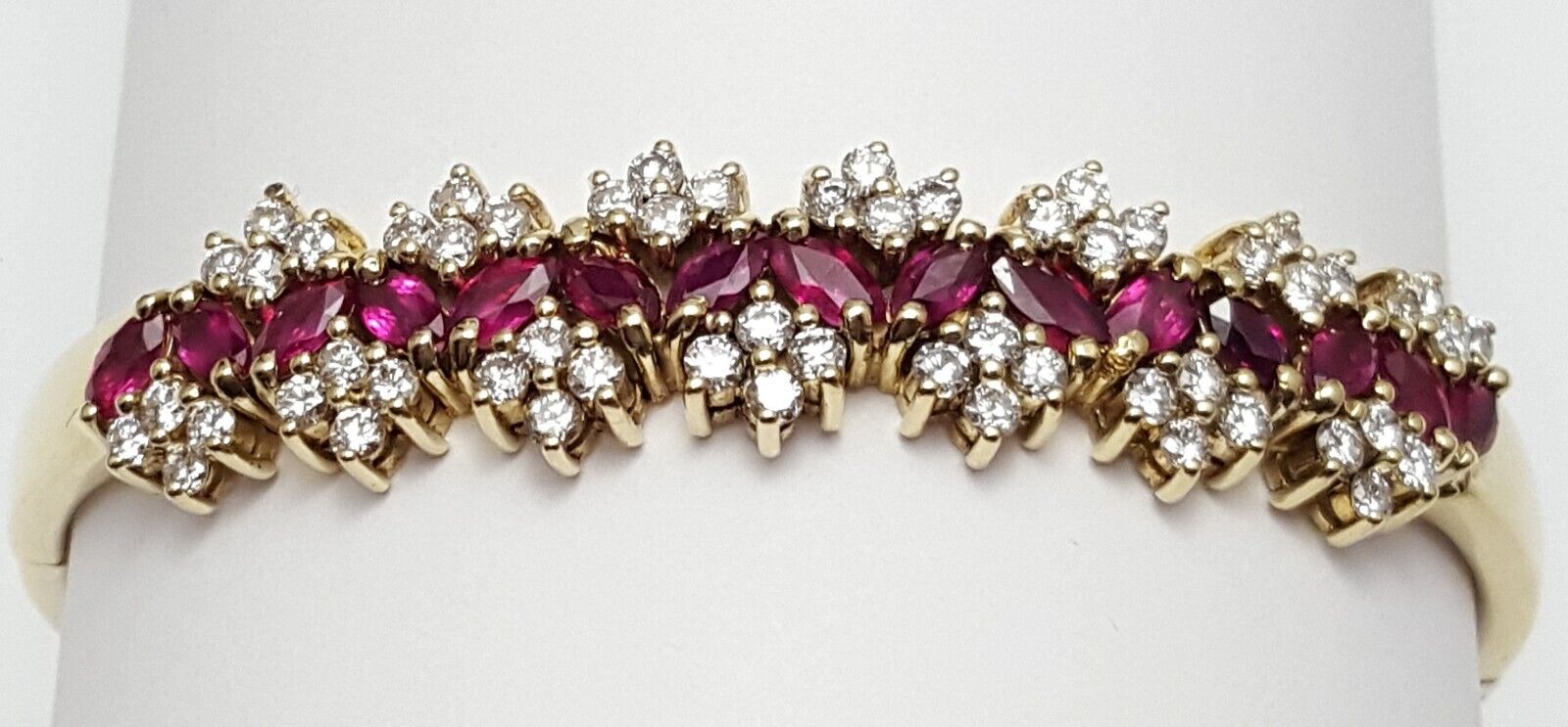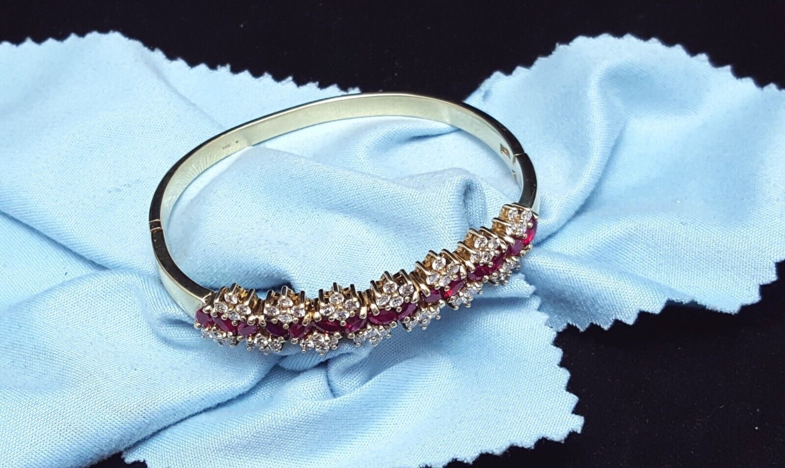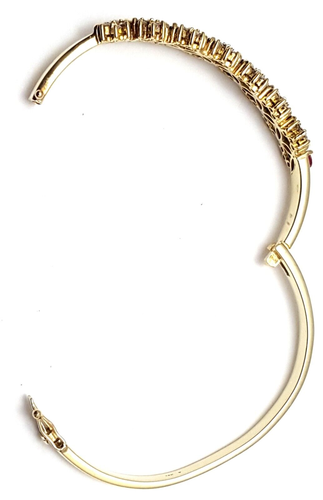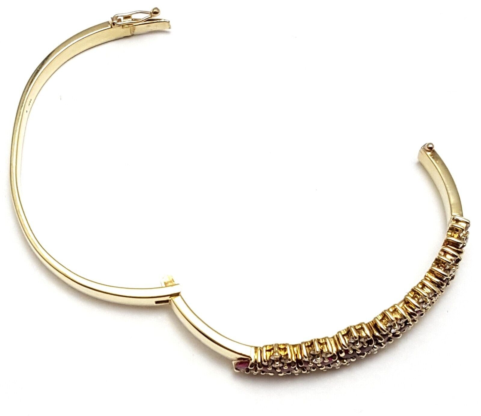 Beautiful 14K Karat Solid Yellow Gold Designer Ruby & Diamond Bangle Bracelet