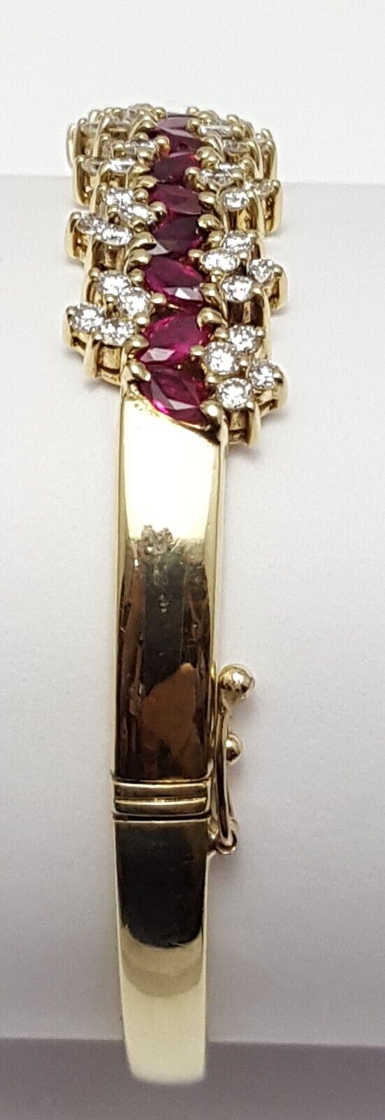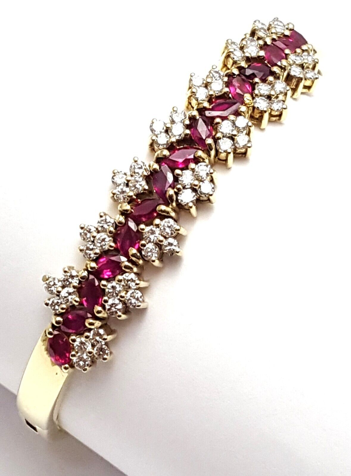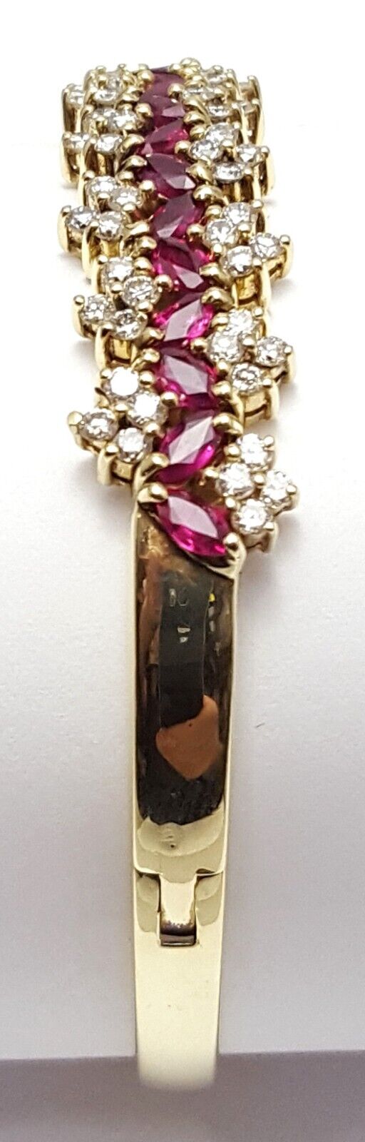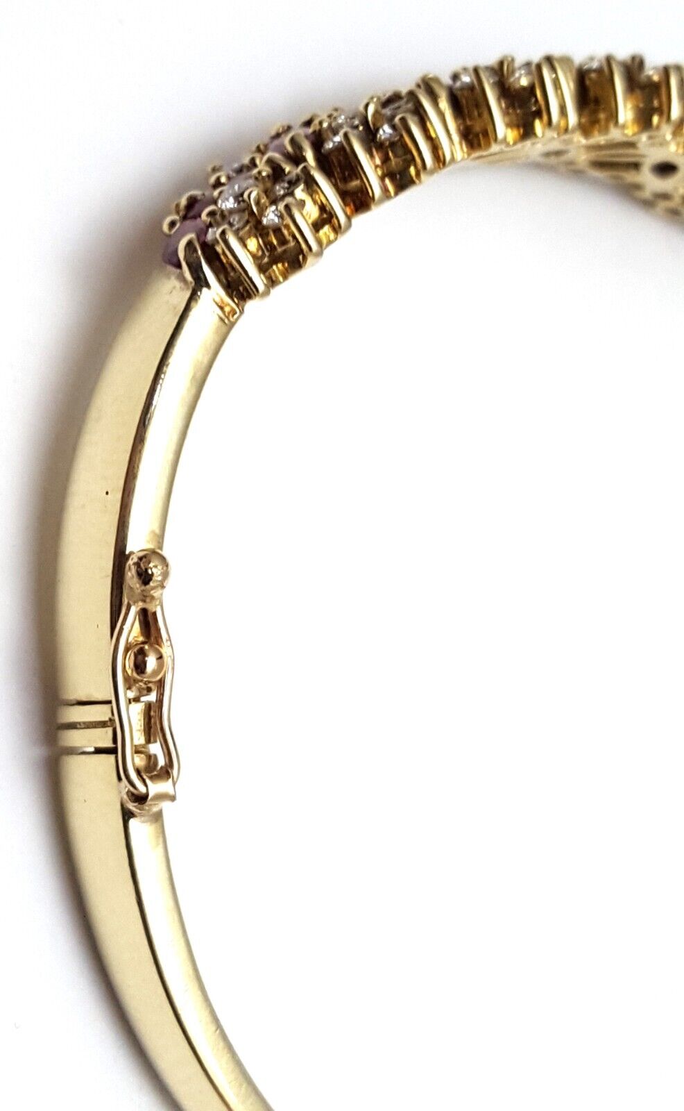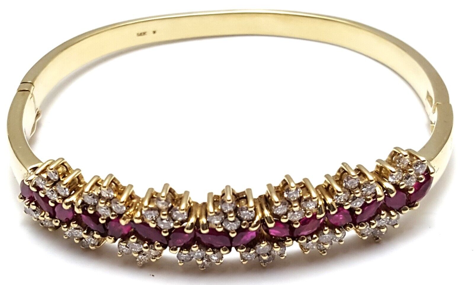 Beautiful 14K Karat Solid Yellow Gold Designer Ruby & Diamond Bangle Bracelet