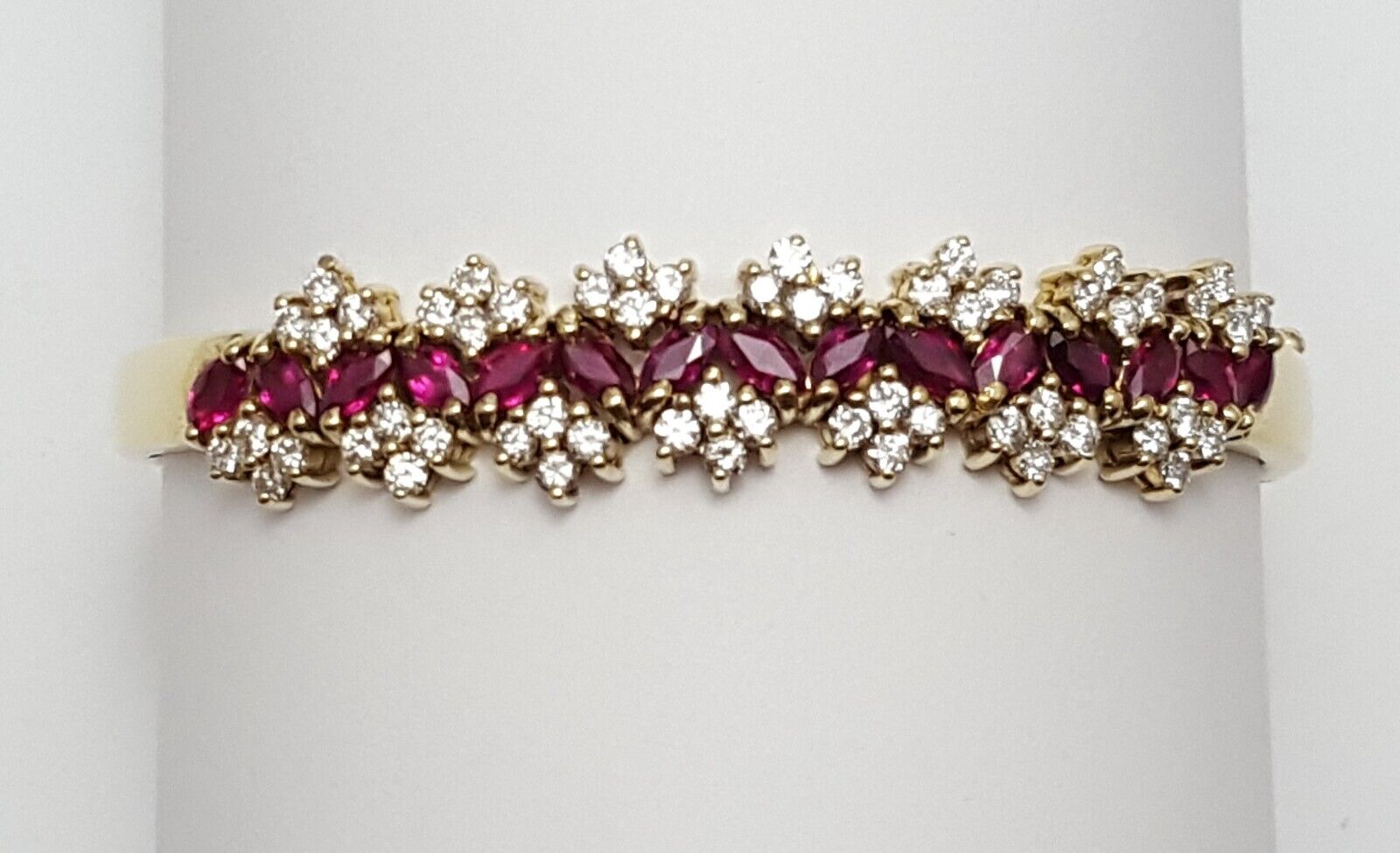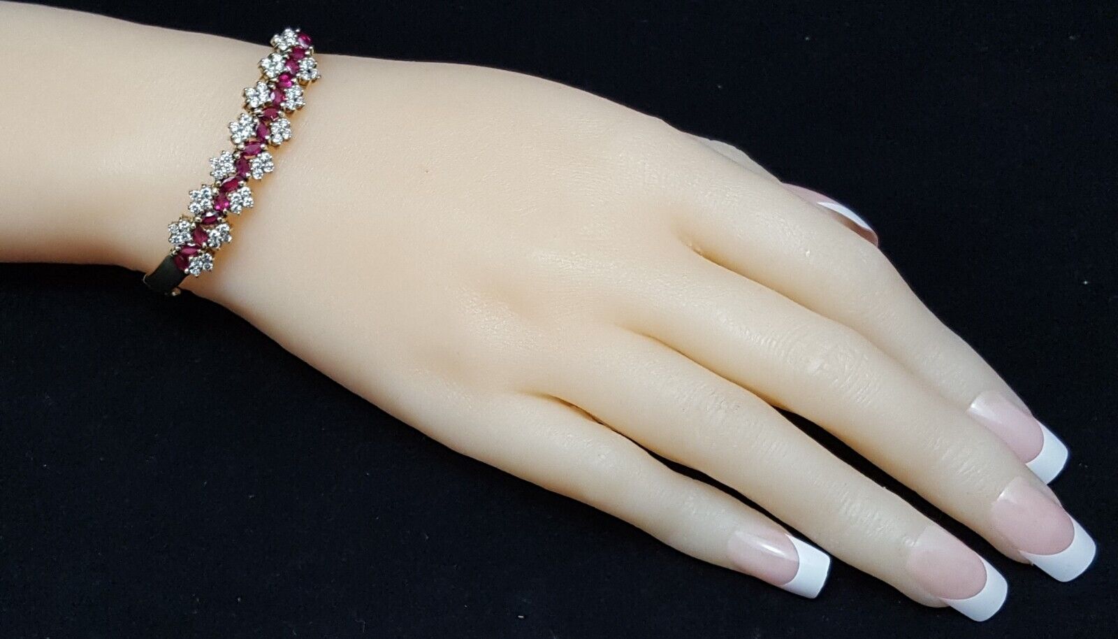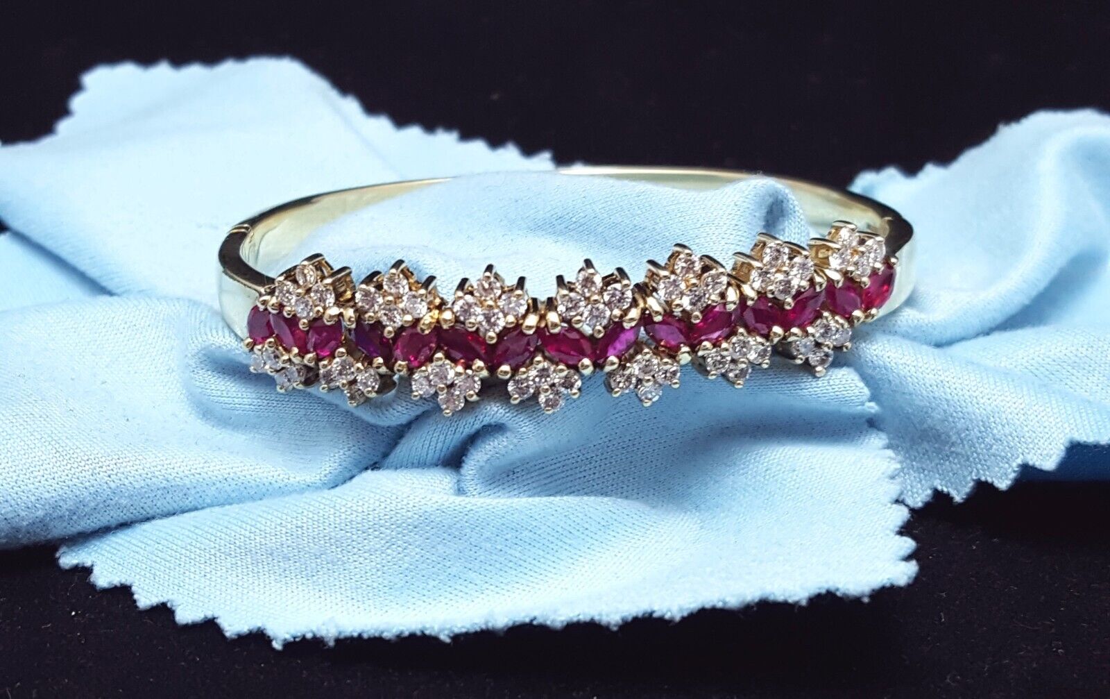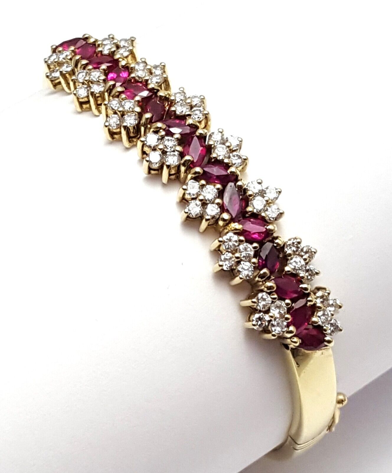 Beautiful 14K Karat Solid Yellow Gold Designer Ruby & Diamond Bangle Bracelet