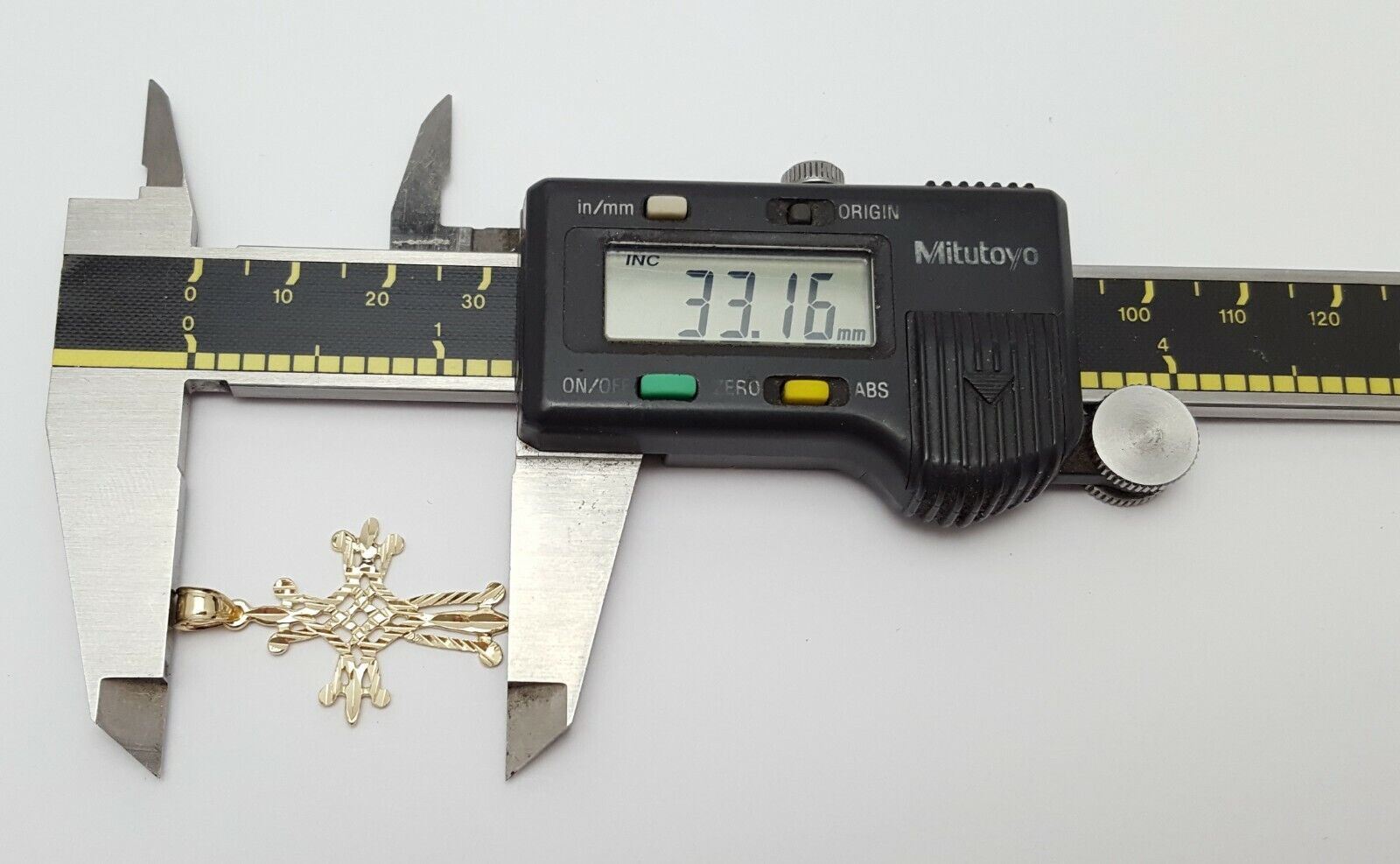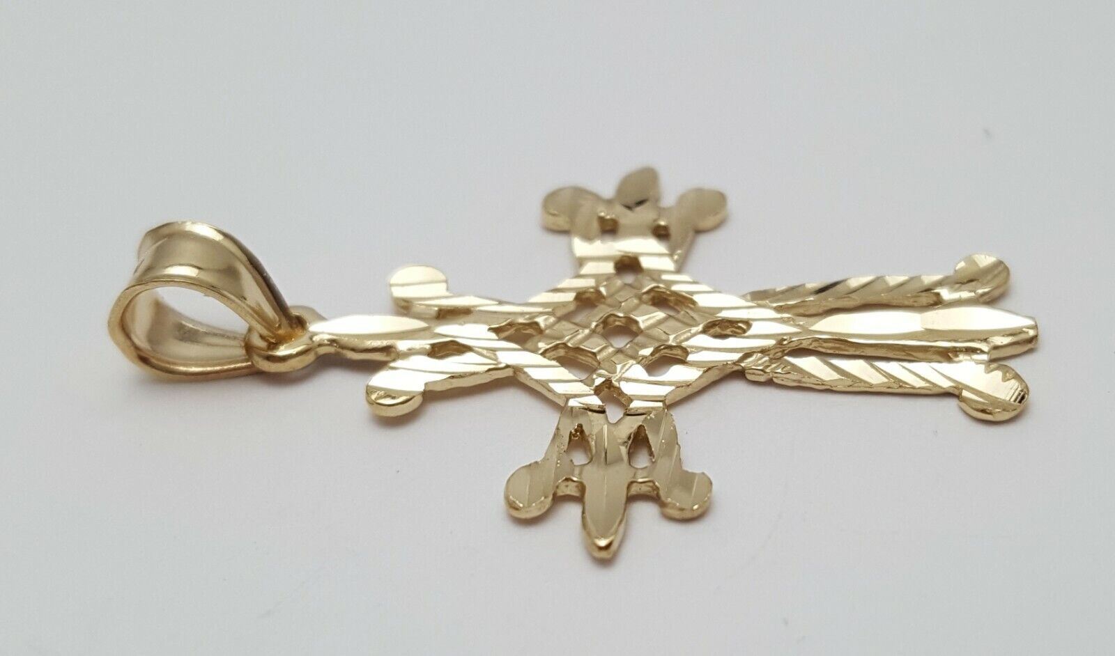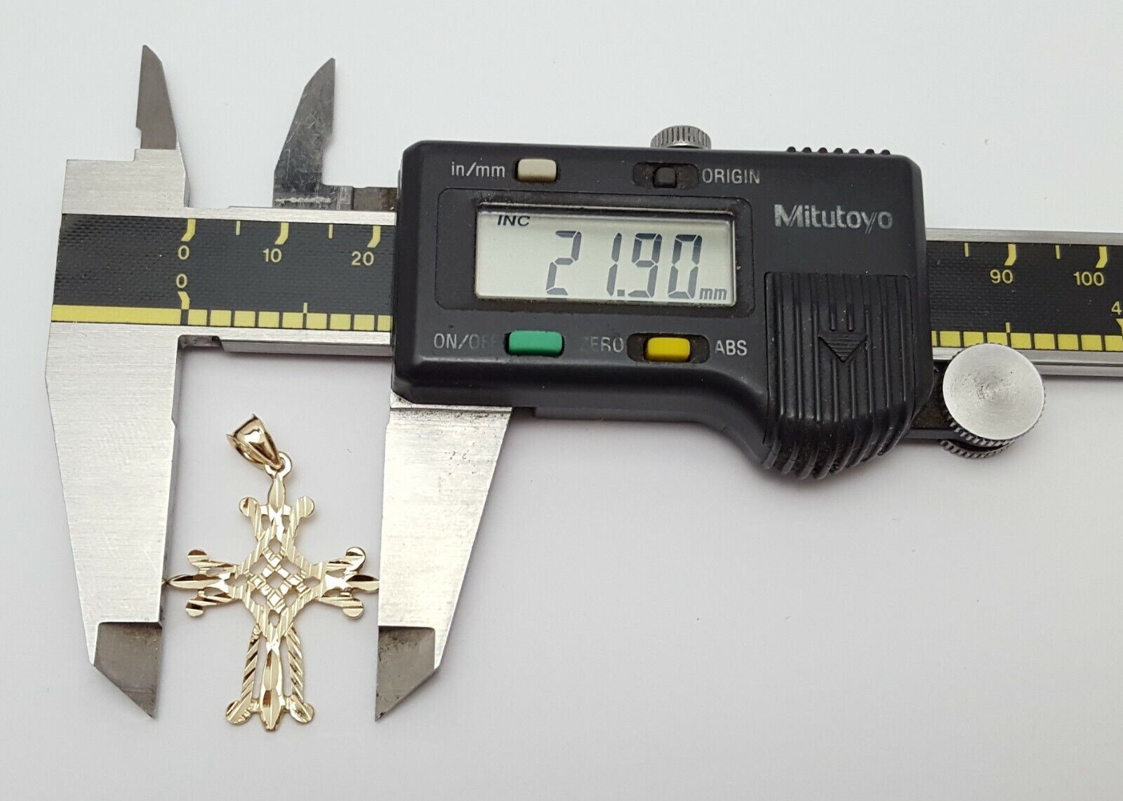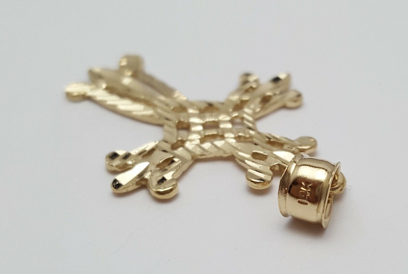 14K Solid Yellow Gold Diamond Cut Religious Cross Charm Pendant