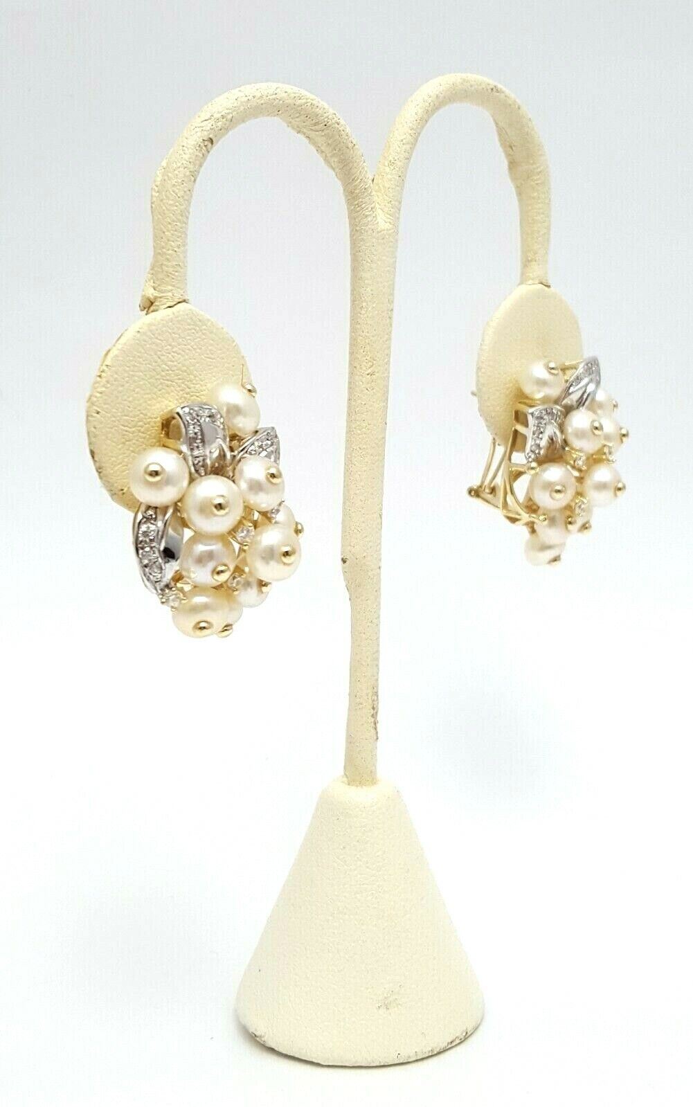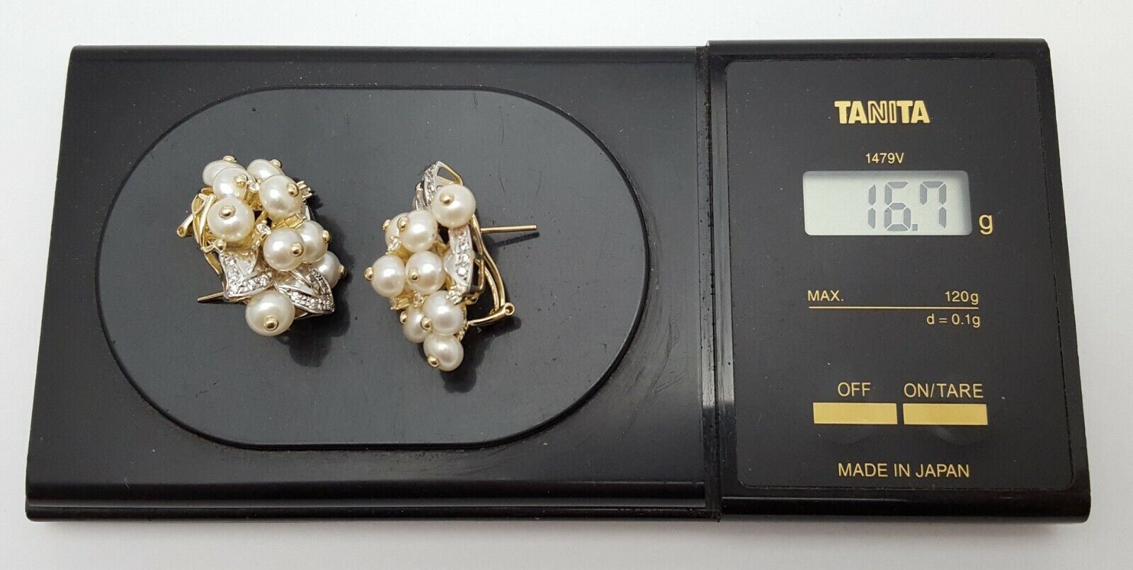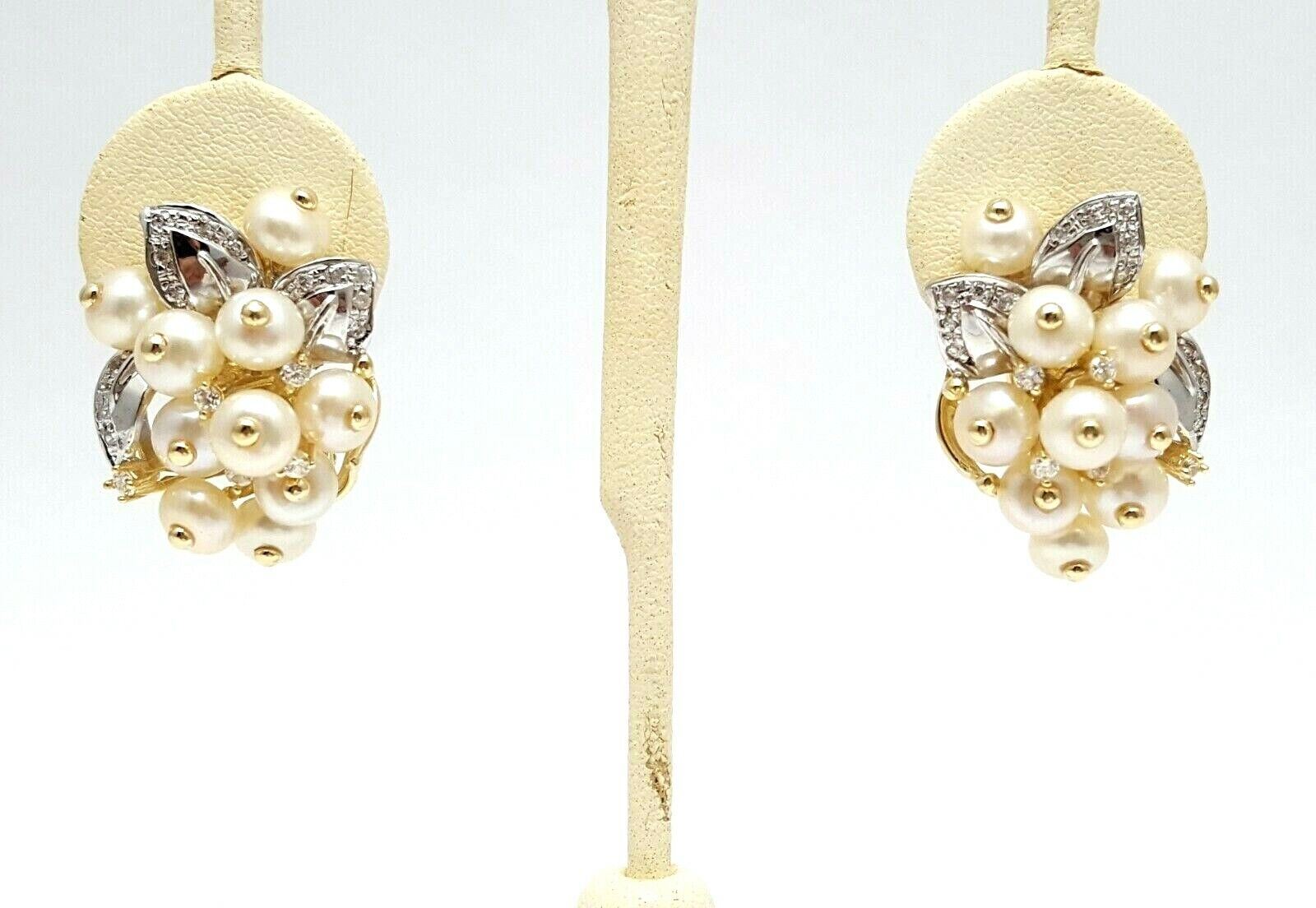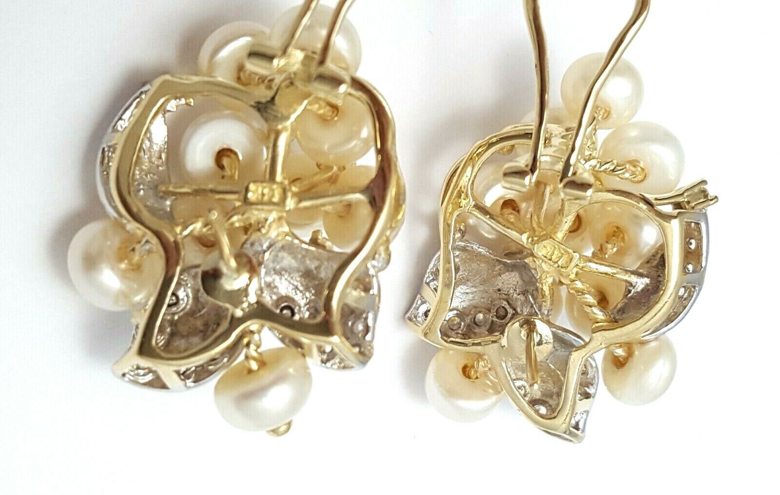14K Two Tone Gold Ladies Cubic Zirconia & Pearls Earrings