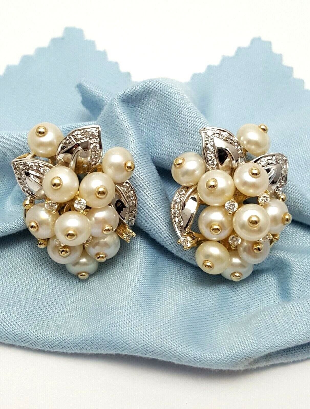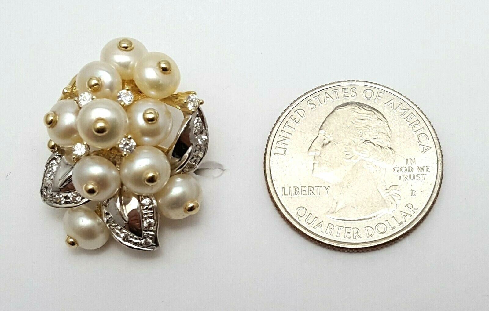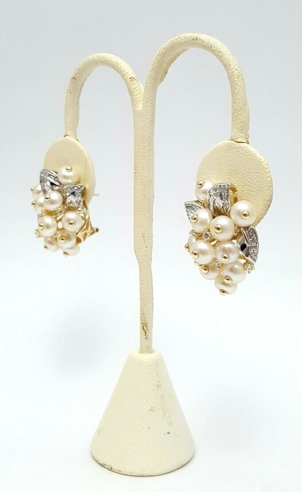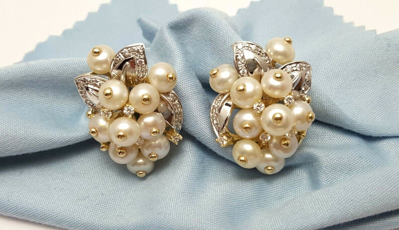 14K Two Tone Gold Ladies Cubic Zirconia & Pearls Earrings