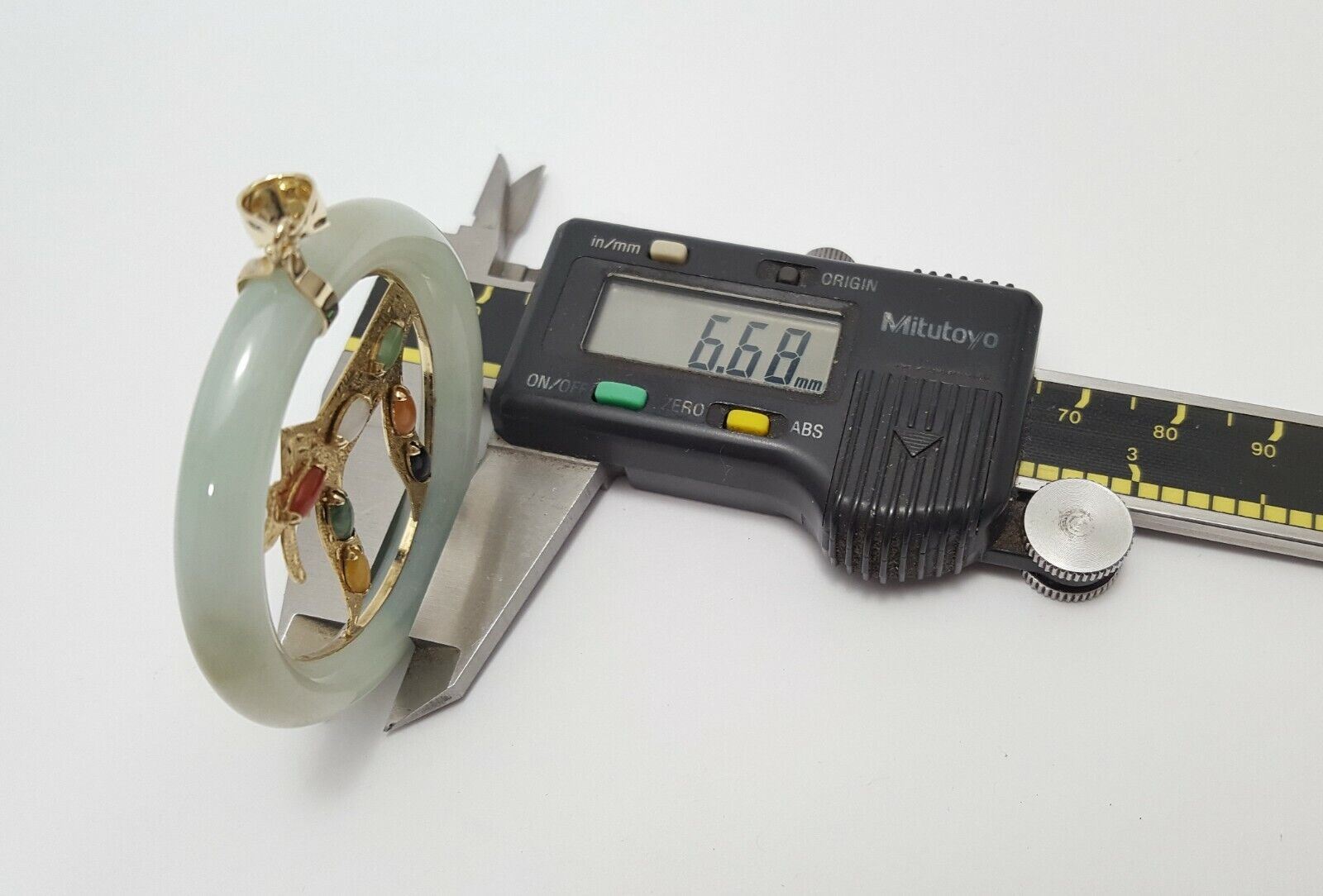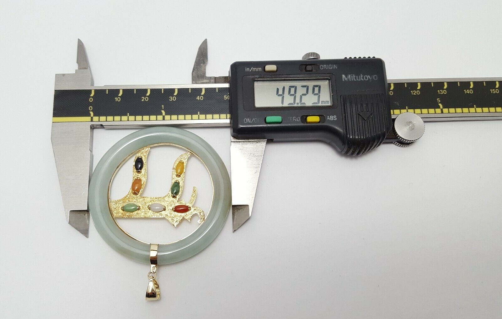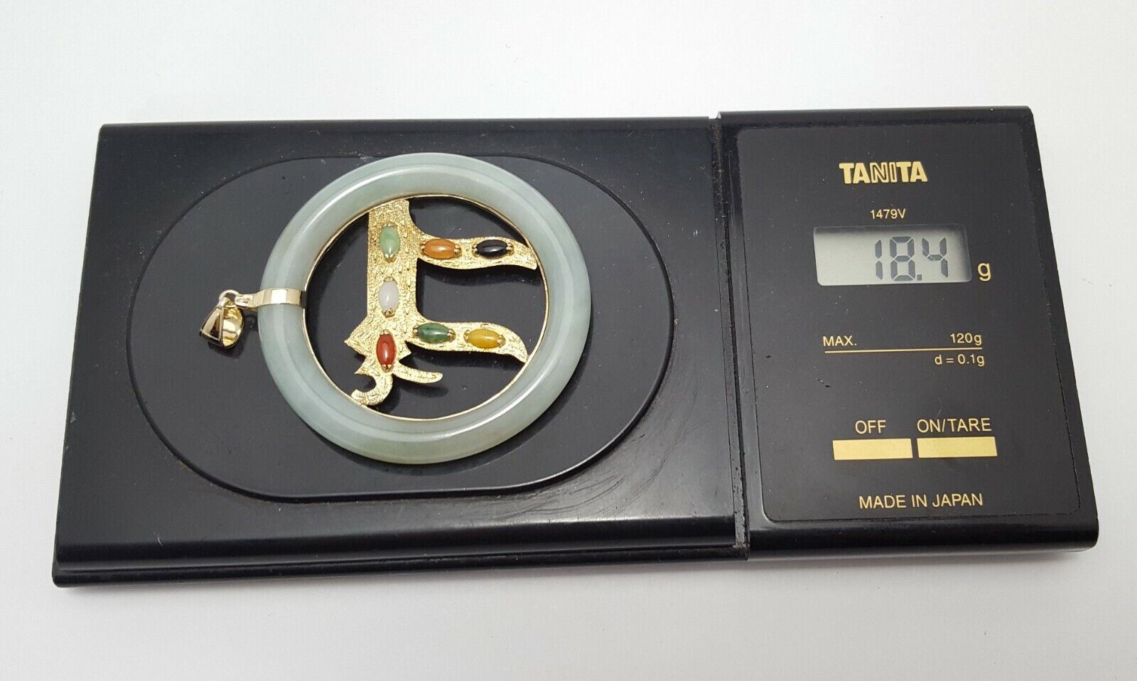 14K Solid Yellow Gold Large Multi Colored Jade Chai Charm Pendant