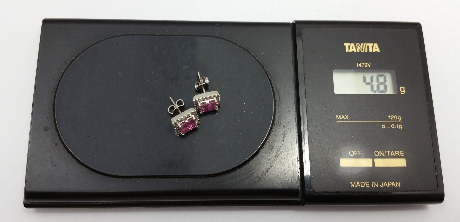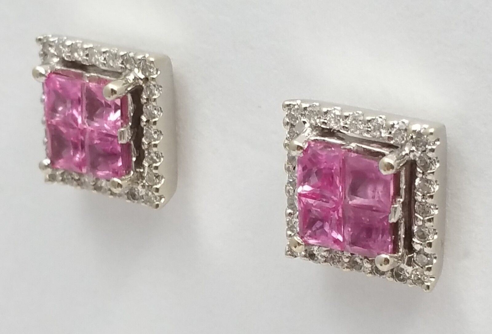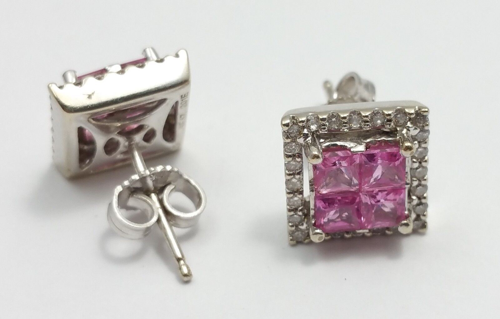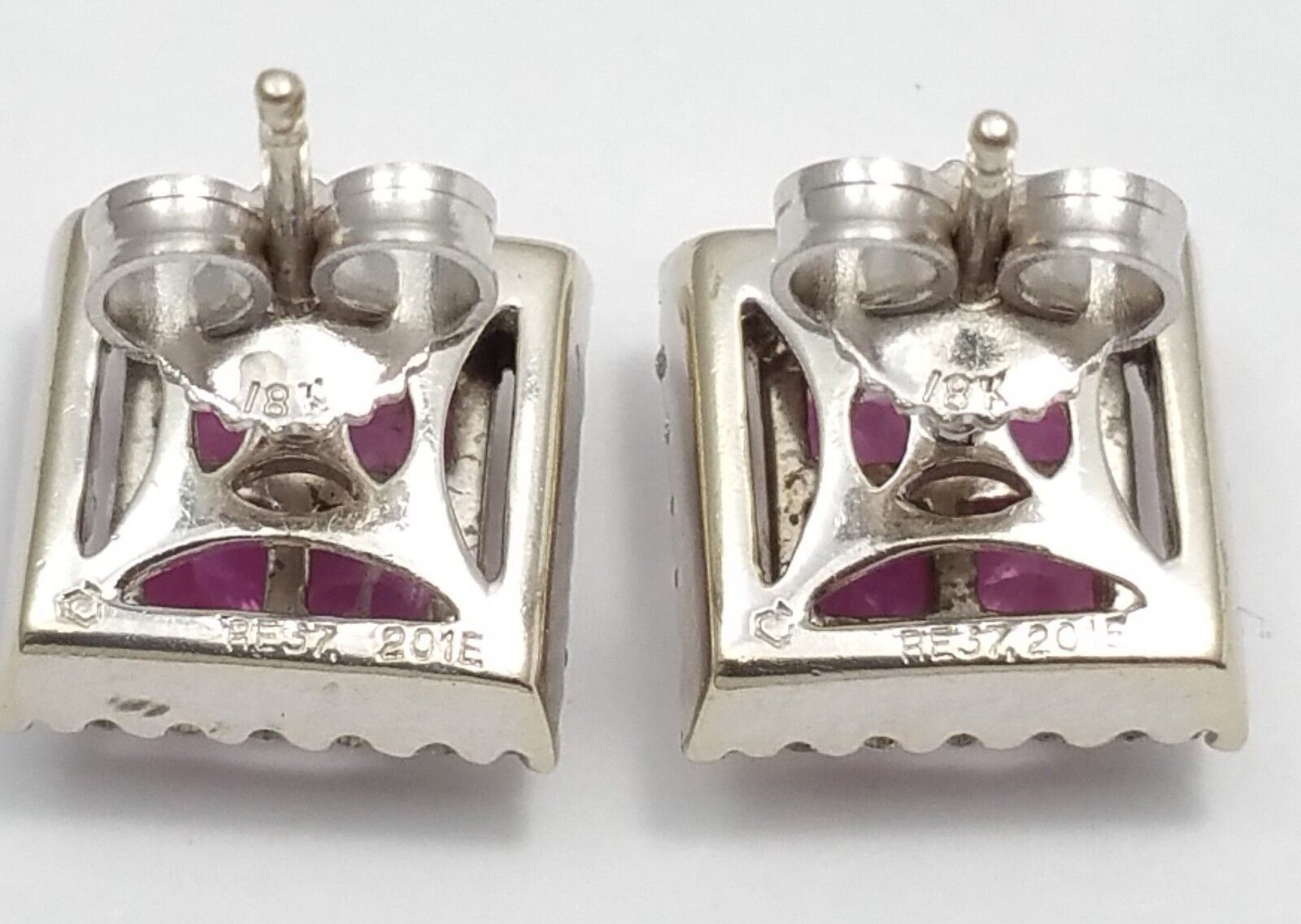 18K White Gold Square Diamond and Tourmaline Stud Earrings